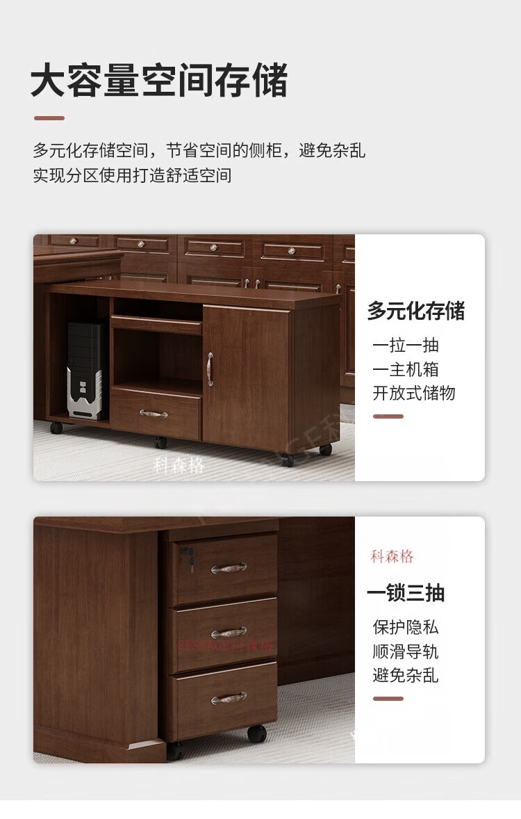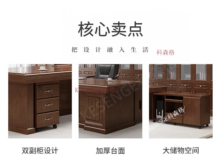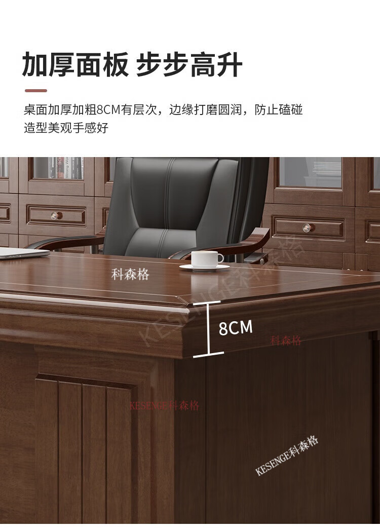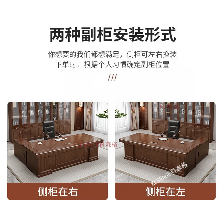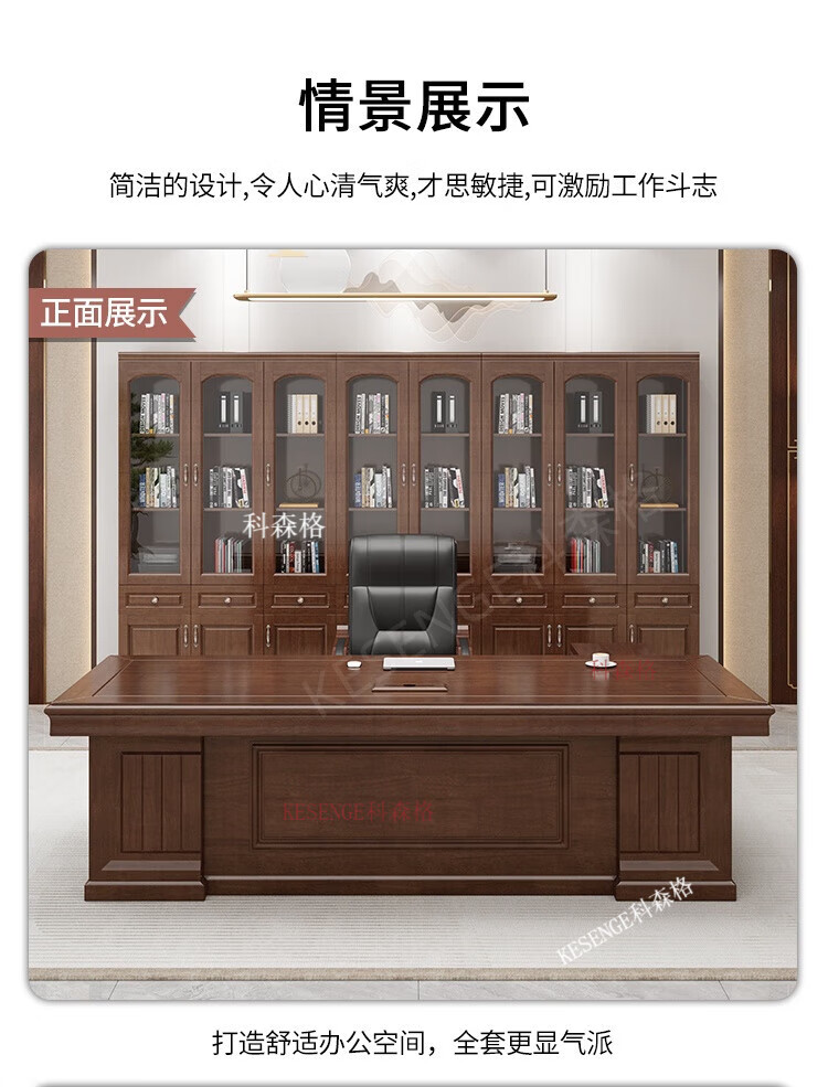 Cosenger all solid wood boss desk office desk Chinese style high-end simple boss desk office chairman president desk and chair combination boss table + double side cabinet + chair all solid wood 1.8 meters