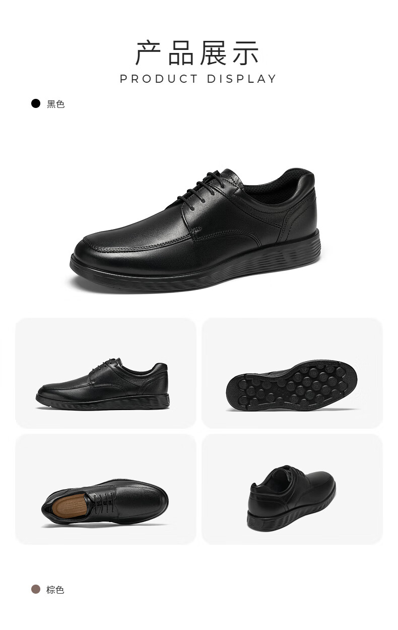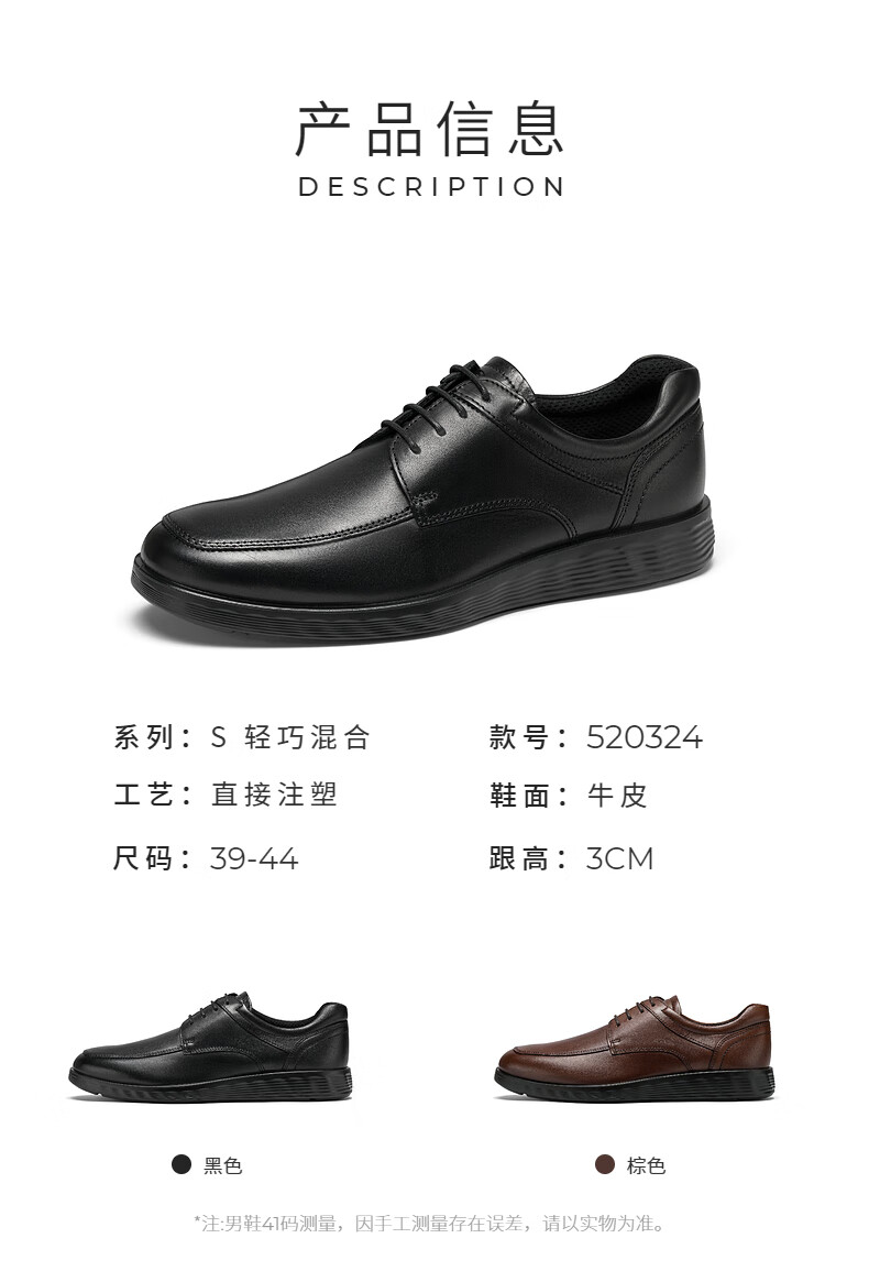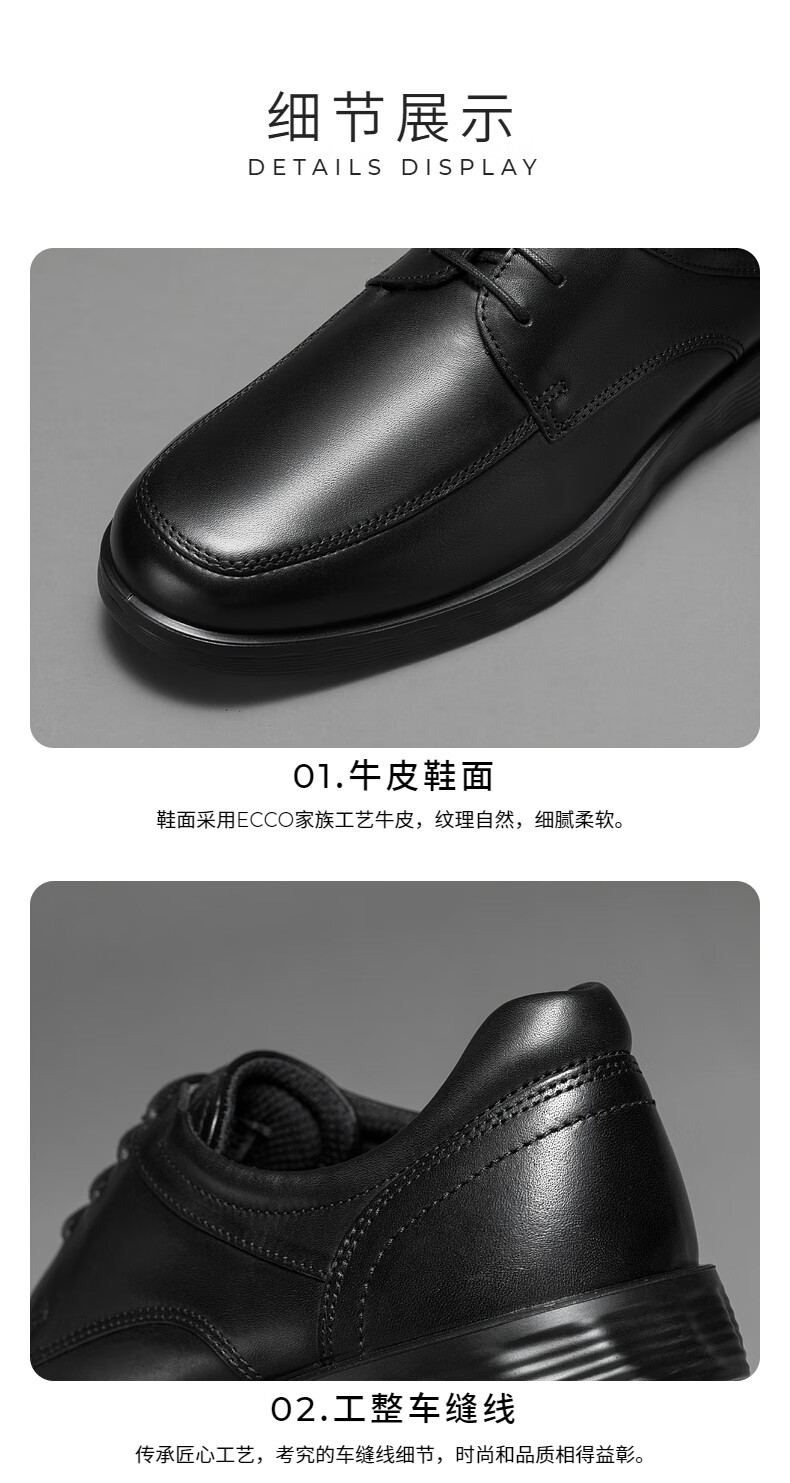 ECCO Men's Business Leather Shoes Comfortable Commuting Derby Shoes 520324 Overseas 520324-01001 43