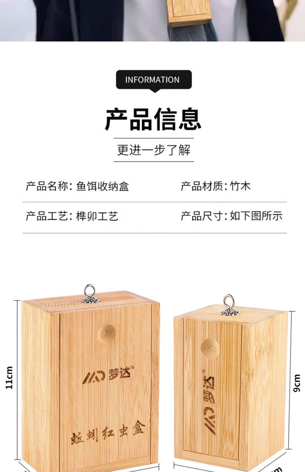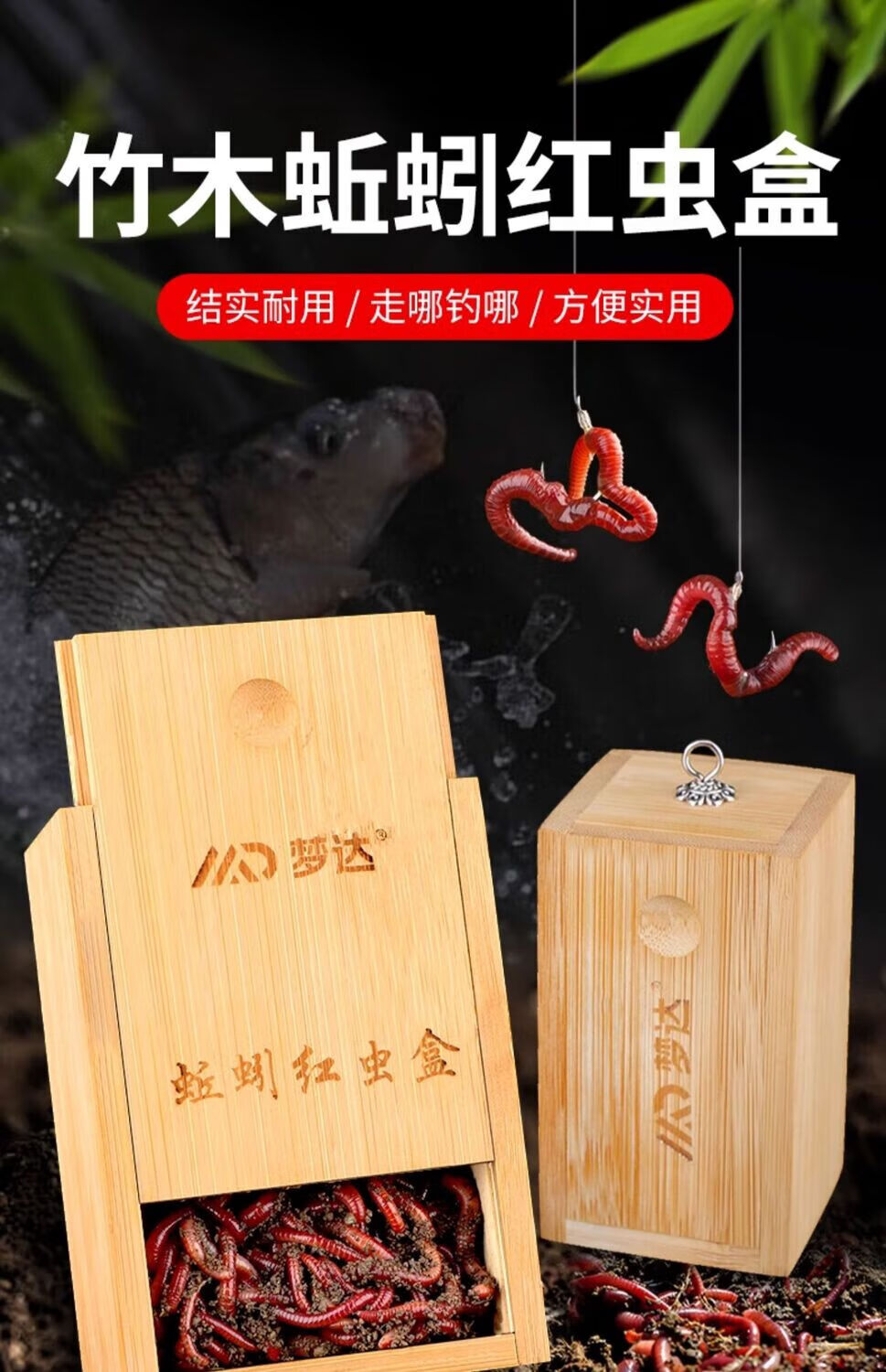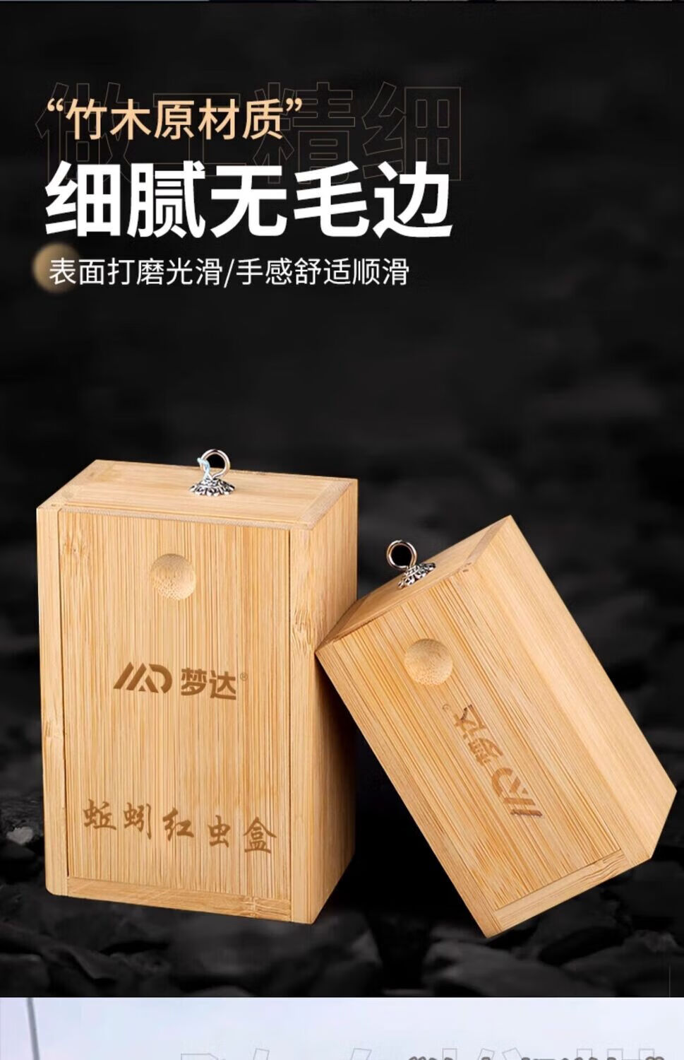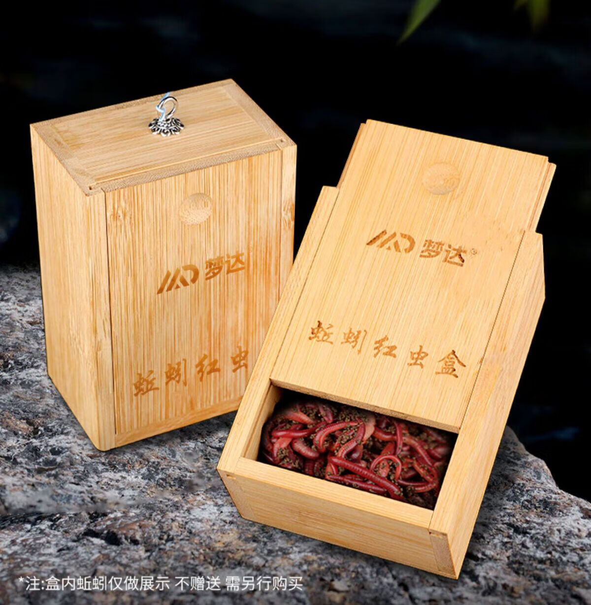 Mengda traditional walking fishing bamboo and wooden earthworm box wild fishing wooden fishing gear pull-out cover lugworm red worm box bait live bait box solid wood lanyard earthworm box large size free towel
