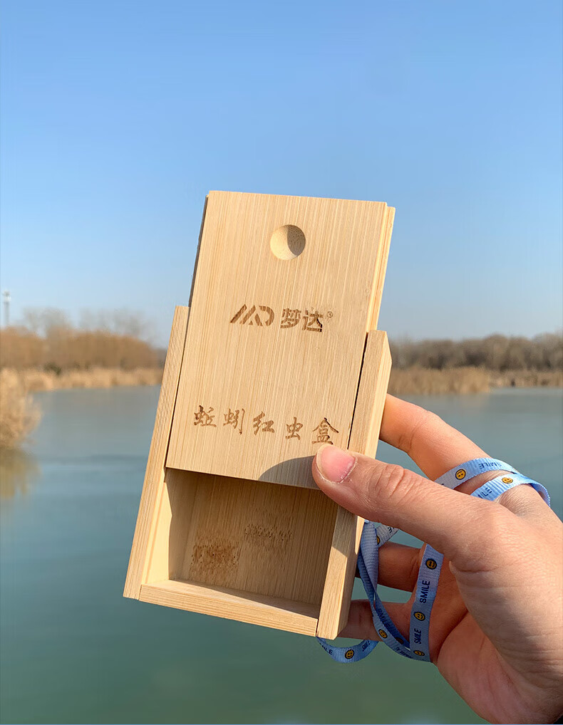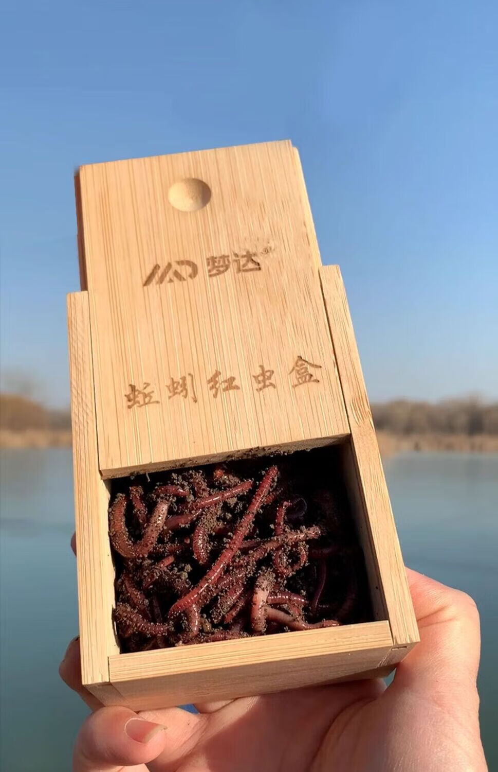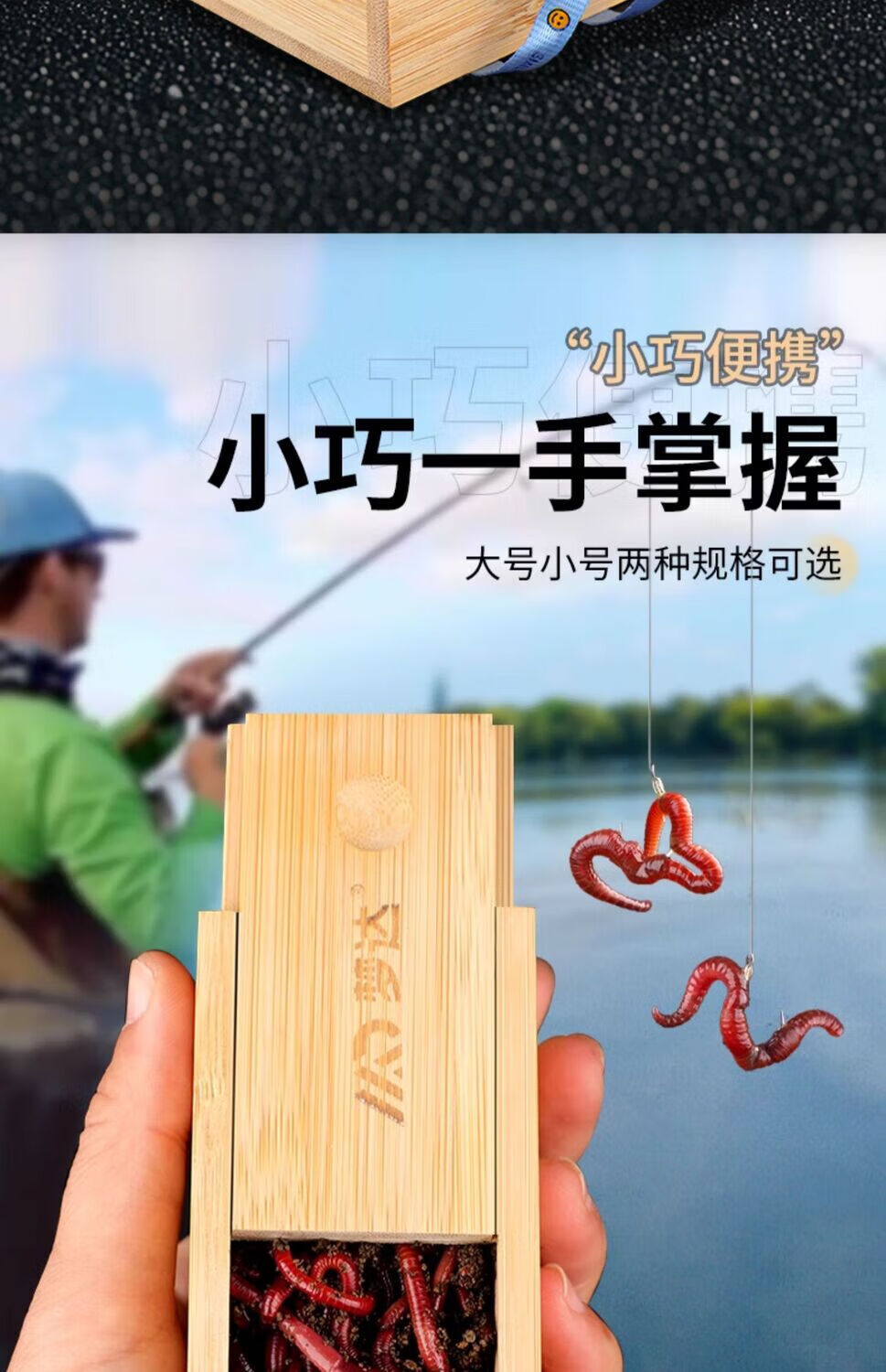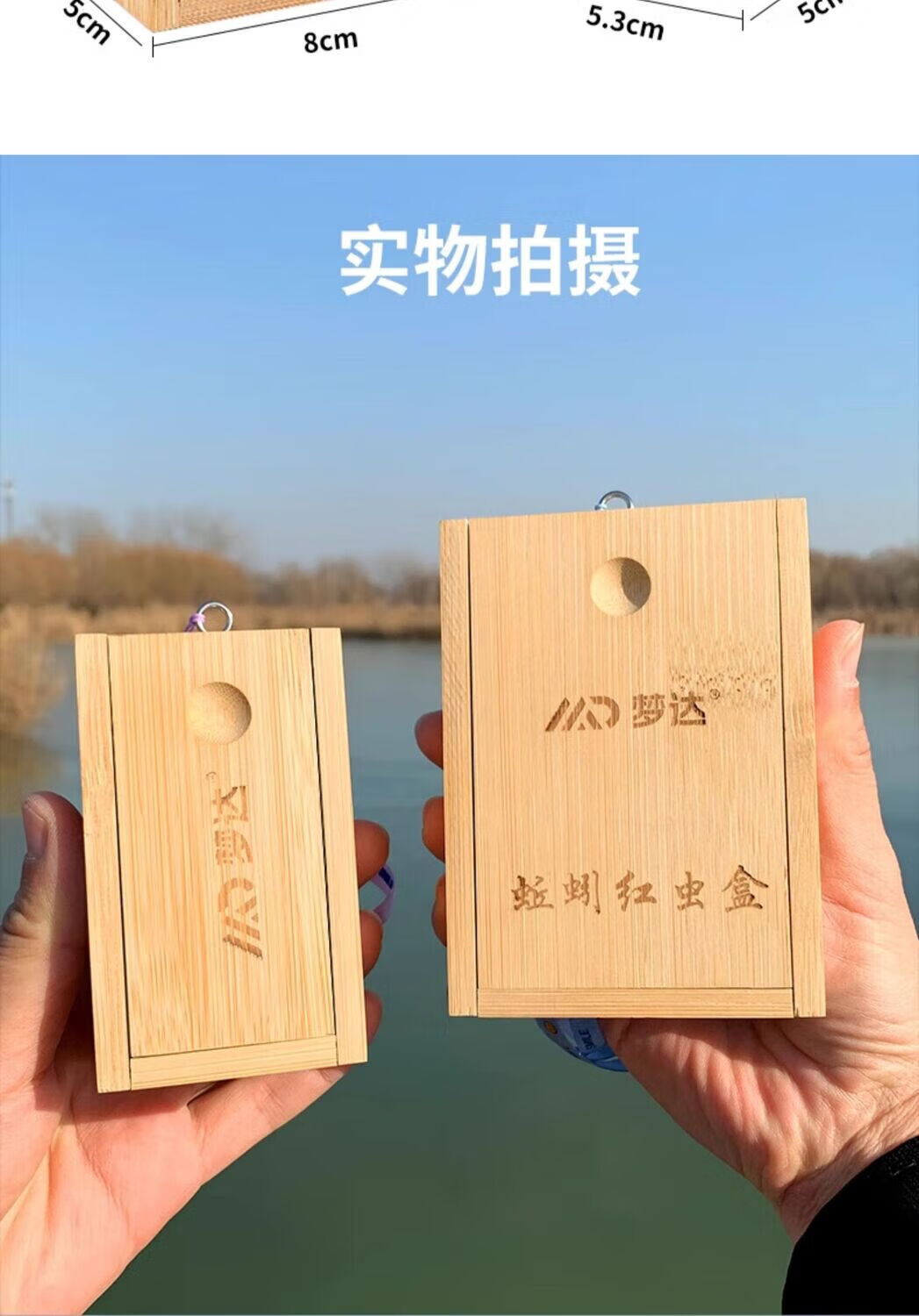 Mengda traditional walking fishing bamboo and wooden earthworm box wild fishing wooden fishing gear pull-out cover lugworm red worm box bait live bait box solid wood lanyard earthworm box large size free towel
