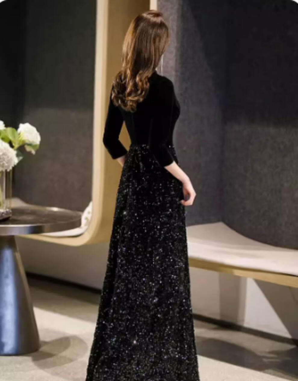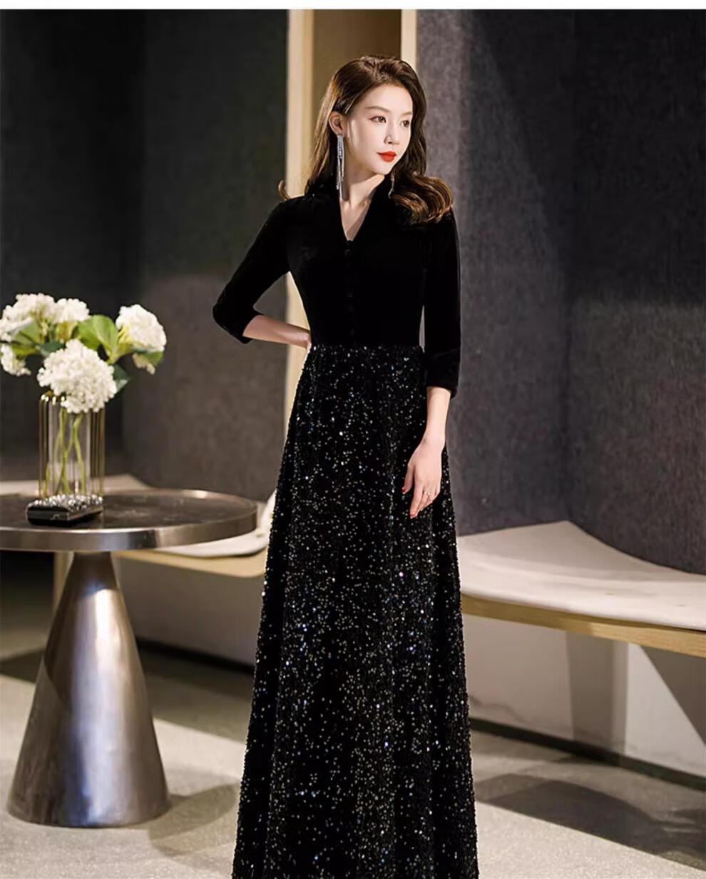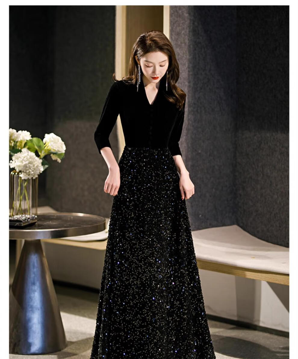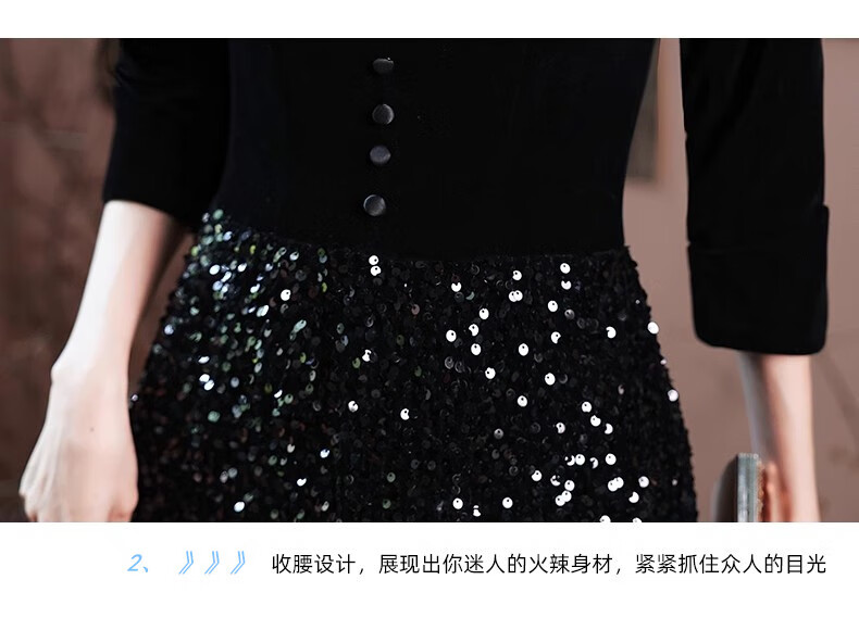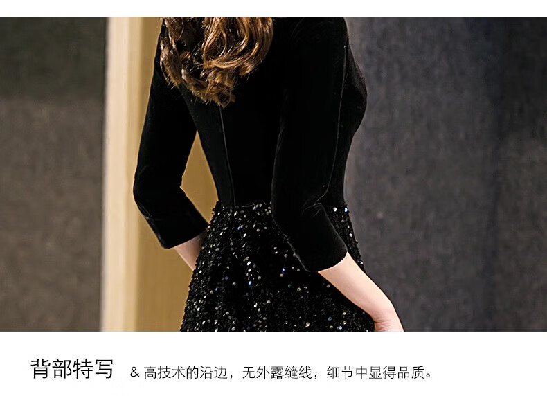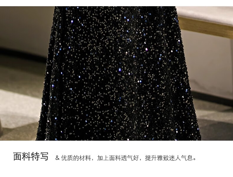 Wutuo black dress female high-end light luxury dinner party temperament niche sequin command dinner host black S