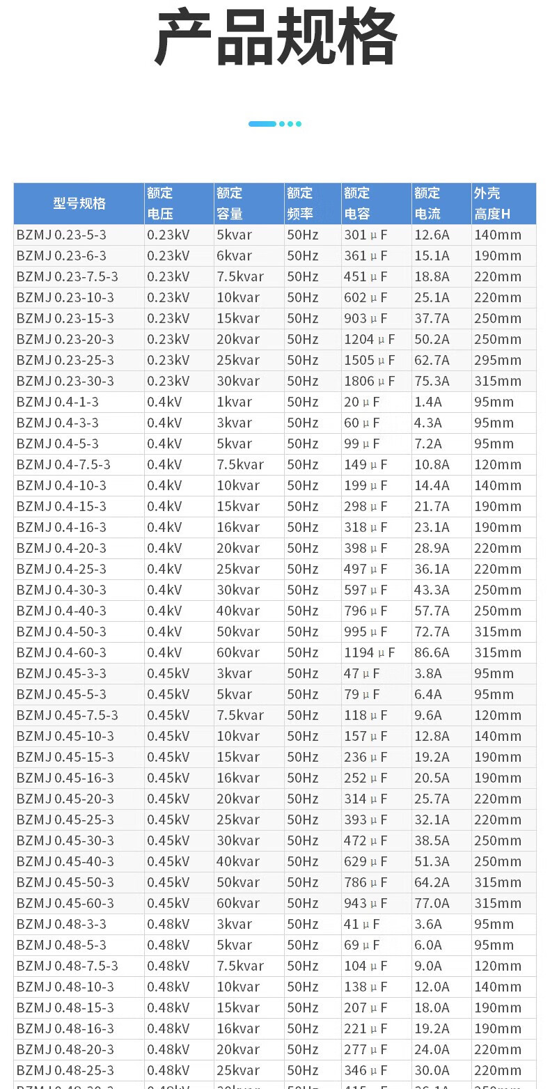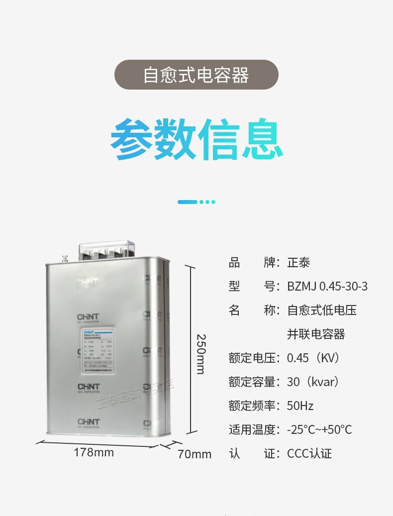 Chint (CHNT) self-healing shunt capacitor power compensation capacitor BZMJ-0.23-10-1 series BZMJ-0.45-30-3