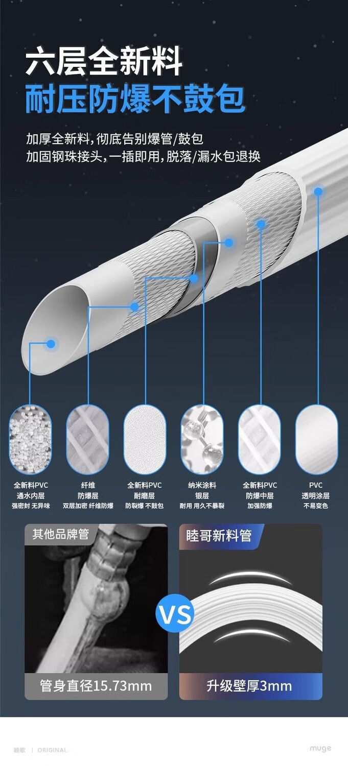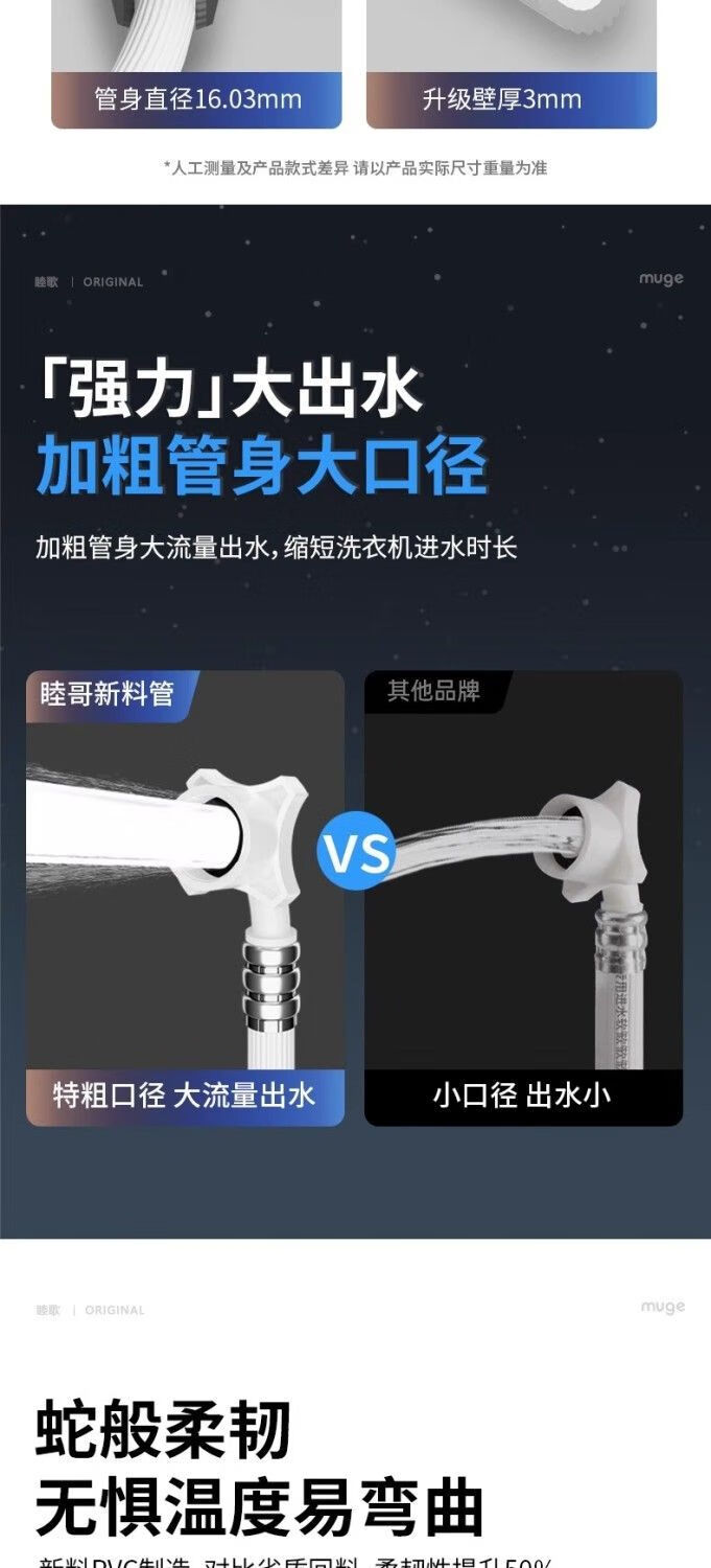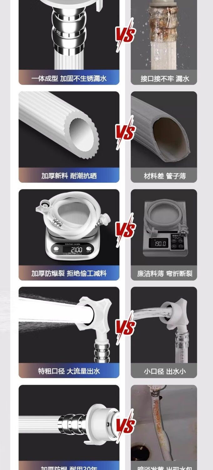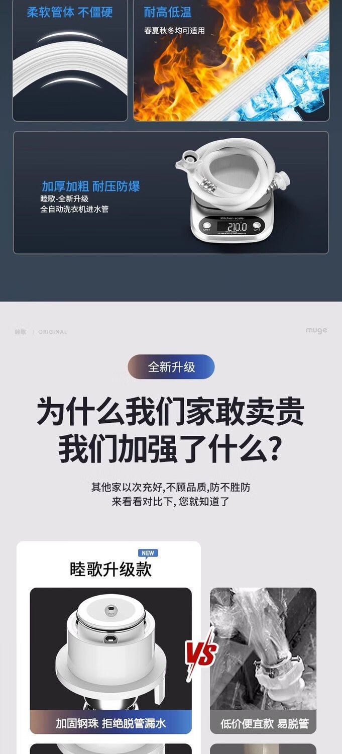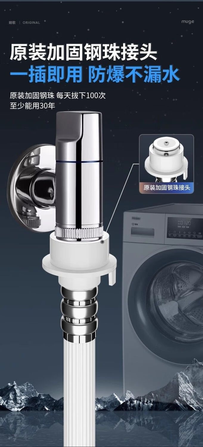 Universally used for fully automatic washing machines to connect the water inlet pipe, drum pulsator extension pipe, hose water injection pipe, thickened four-layer explosion-proof upper water pipe extension pipe interface with steel head accessories, 2-meter thickened four-layer water inlet pipe, free universal adapter + raw material belt