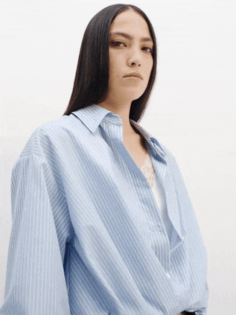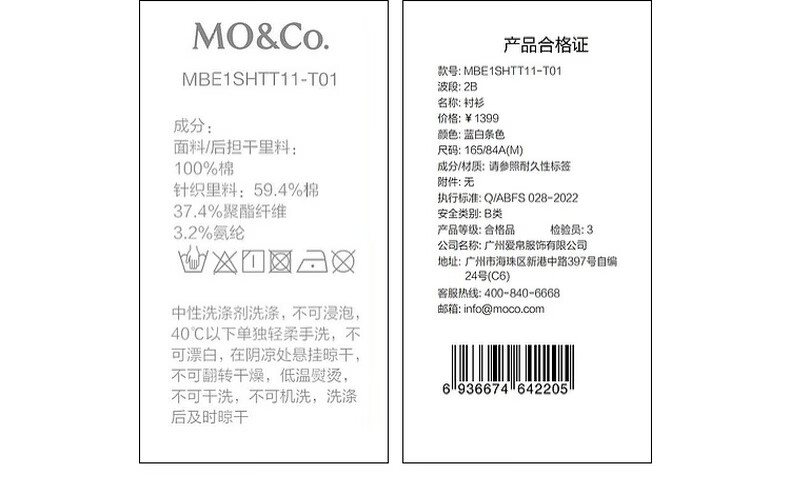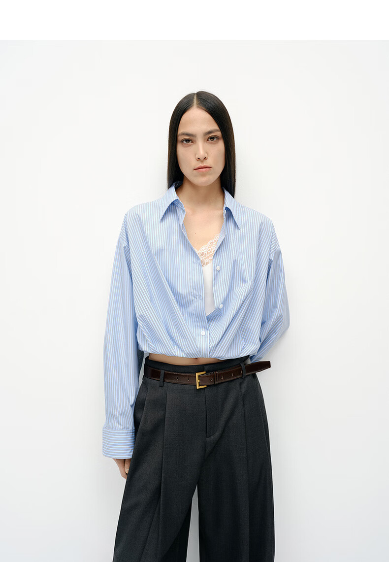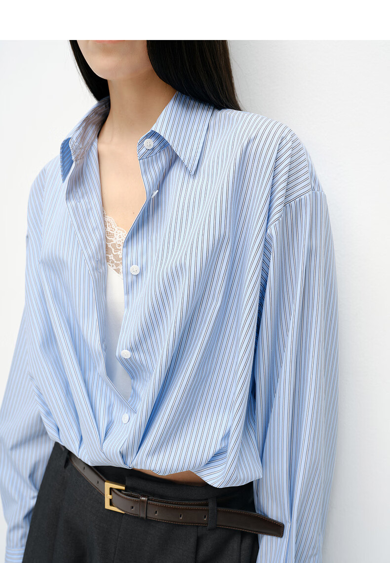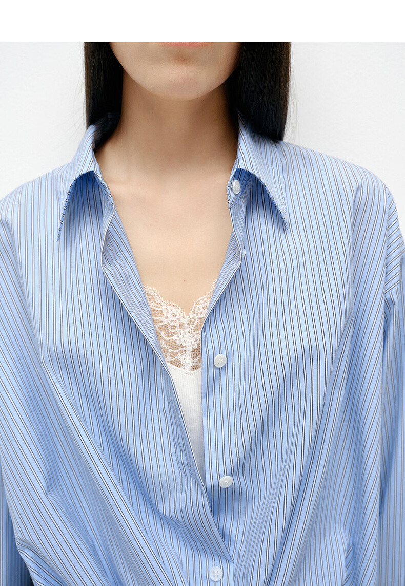 MO&Co. Shirt Spring Break Two-piece Spliced Lace Vest Short Striped Nautical Series MBE1SHTT11 Blue and White Striped Color M 165