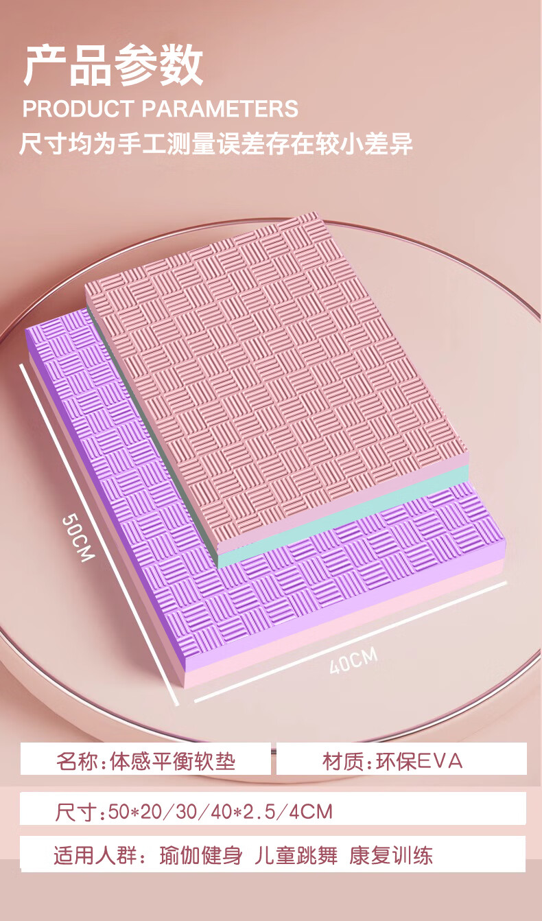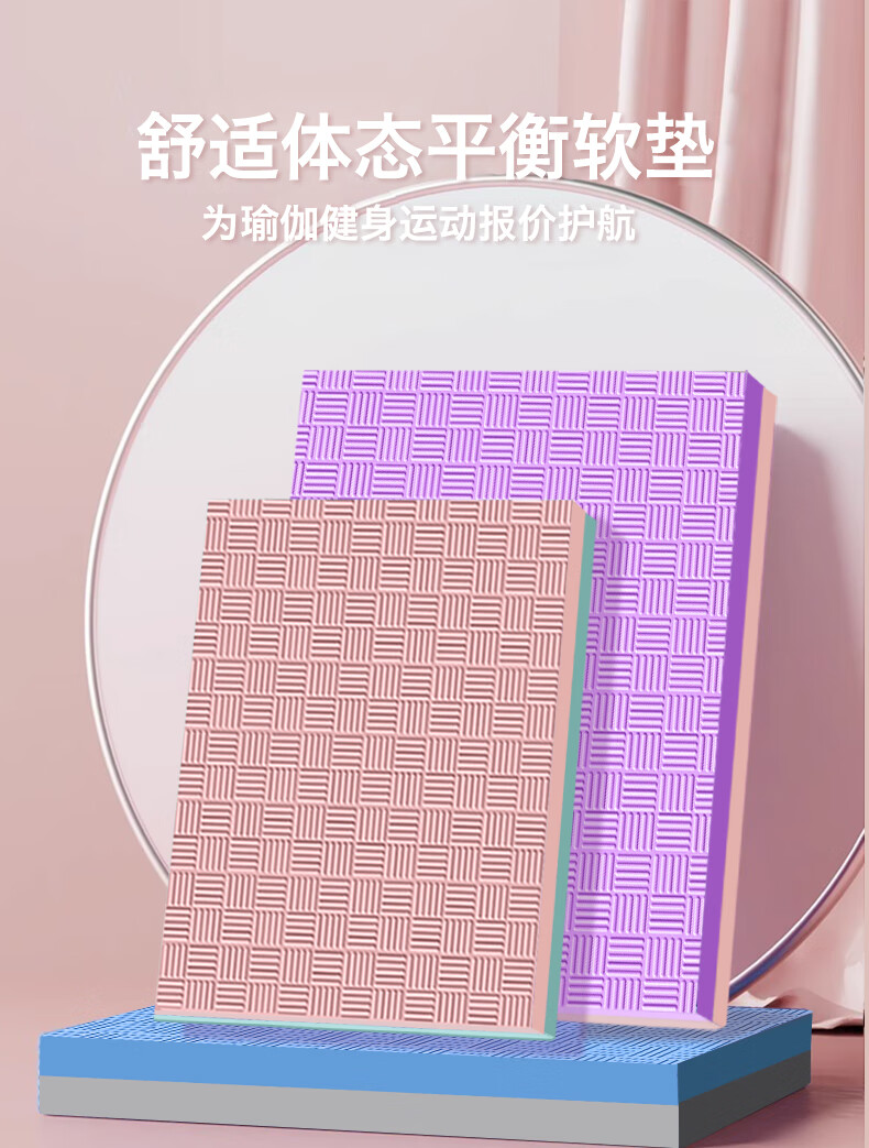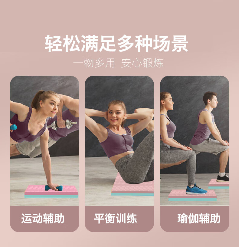平衡瑜伽垫平板支撑垫健腹轮跪垫便携式家用健身核心训练运动垫 灰蓝双色 长宽厚50*40*4cm