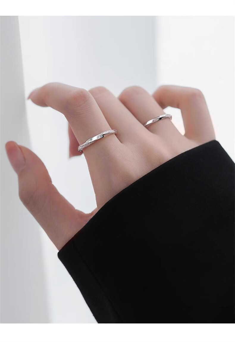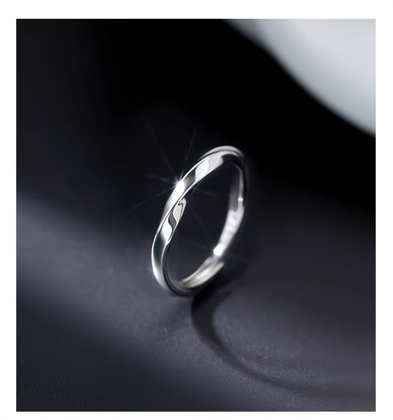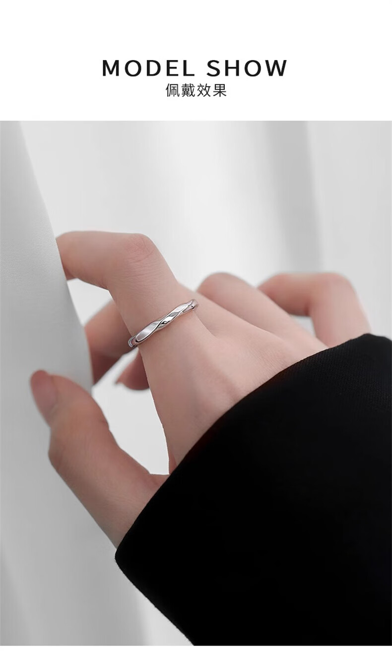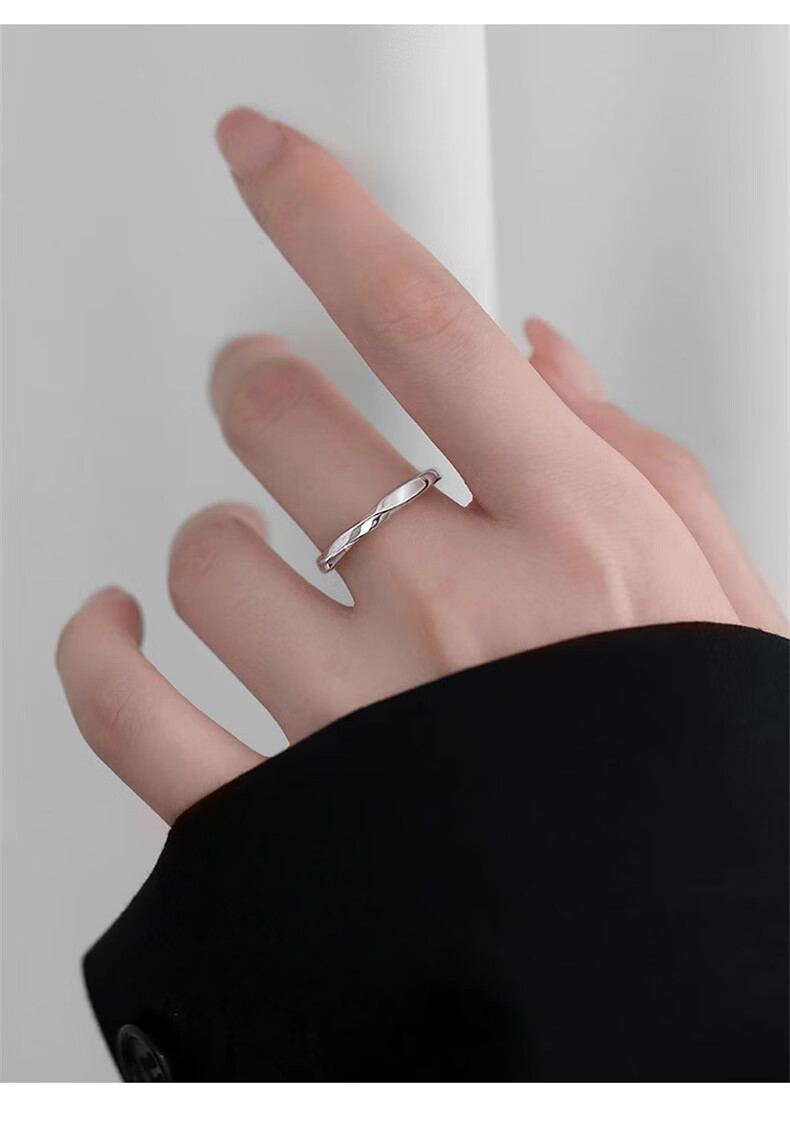 Mondele Fashion Ring Möbius Ring S999 Silver Light Luxury Index Finger Ring Open Ring Niche Design Ring 999 Silver Möbius Ring Nail Sand Style