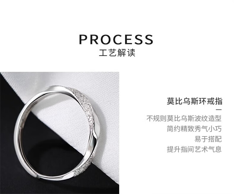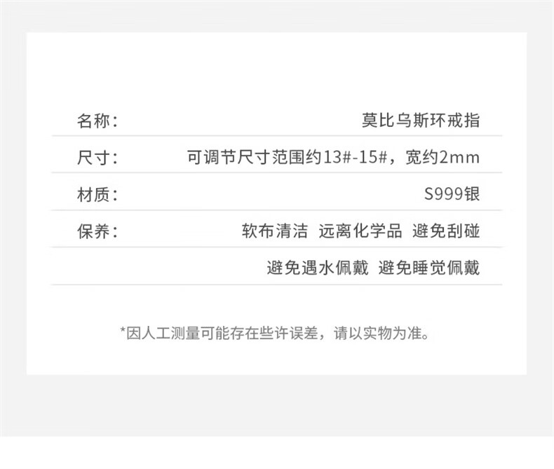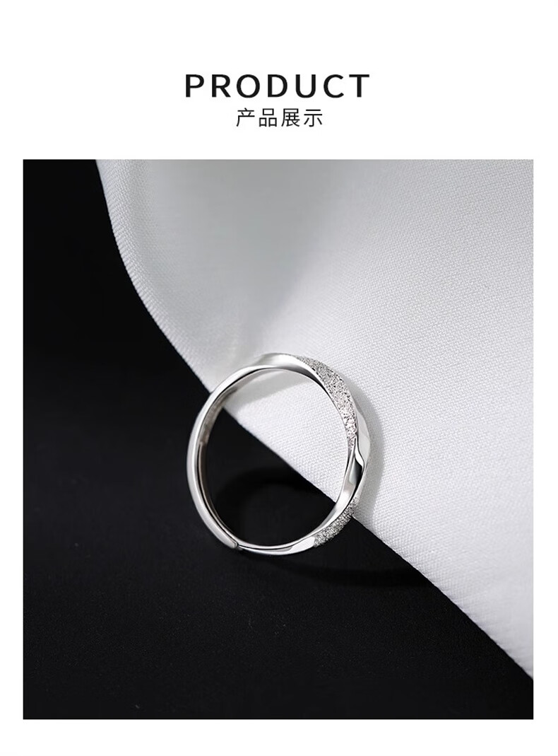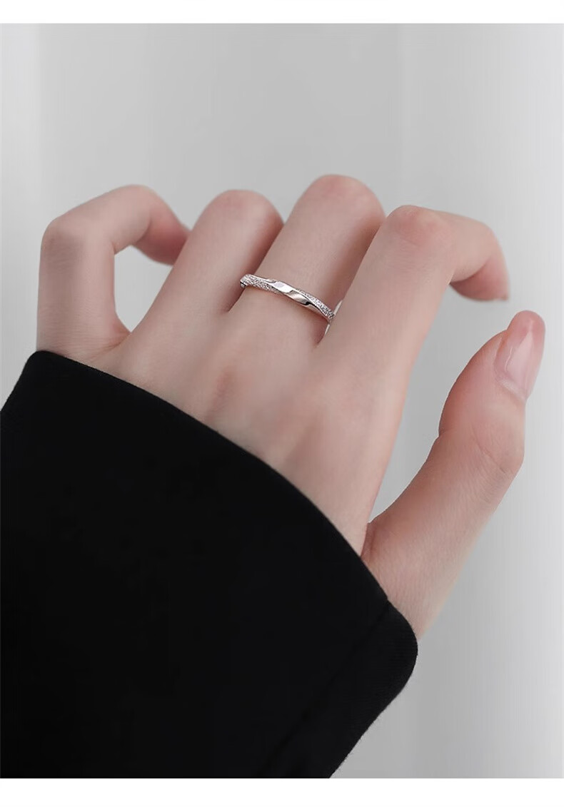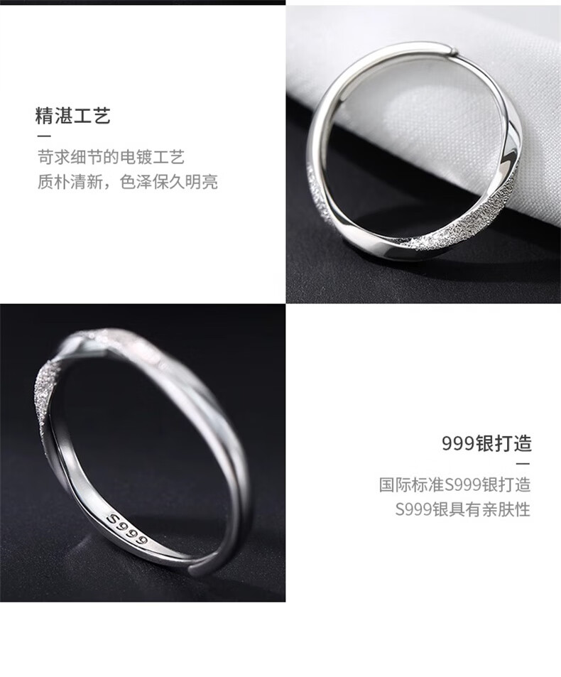 Mondele Fashion Ring Möbius Ring S999 Silver Light Luxury Index Finger Ring Open Ring Niche Design Ring 999 Silver Möbius Ring Nail Sand Style