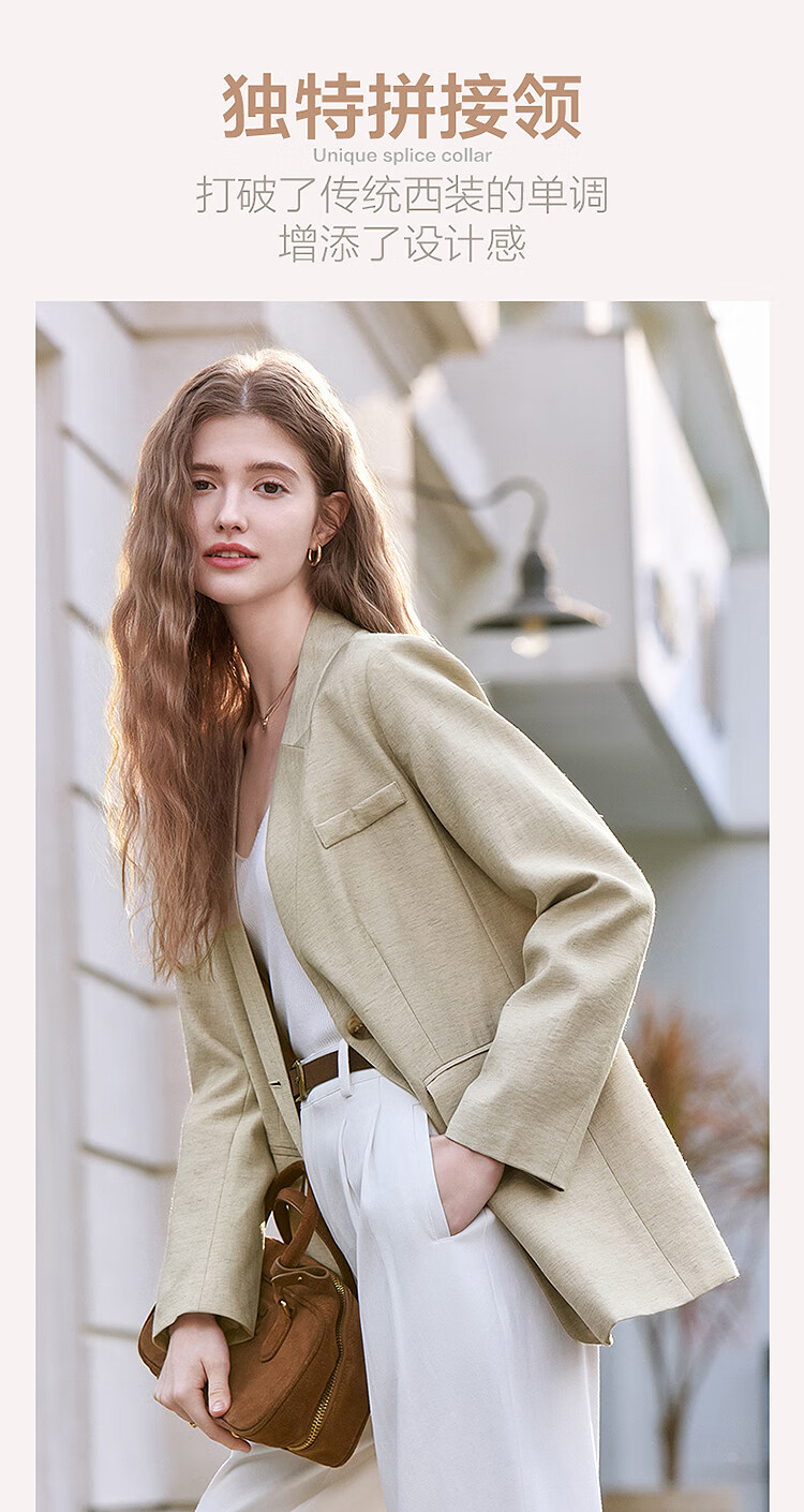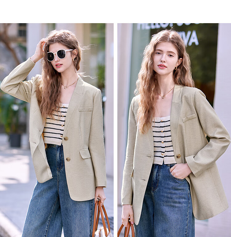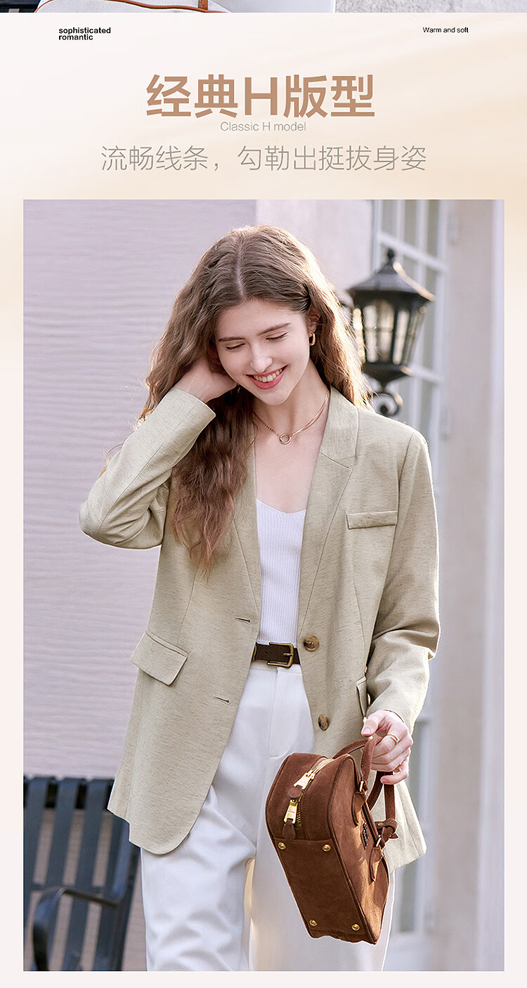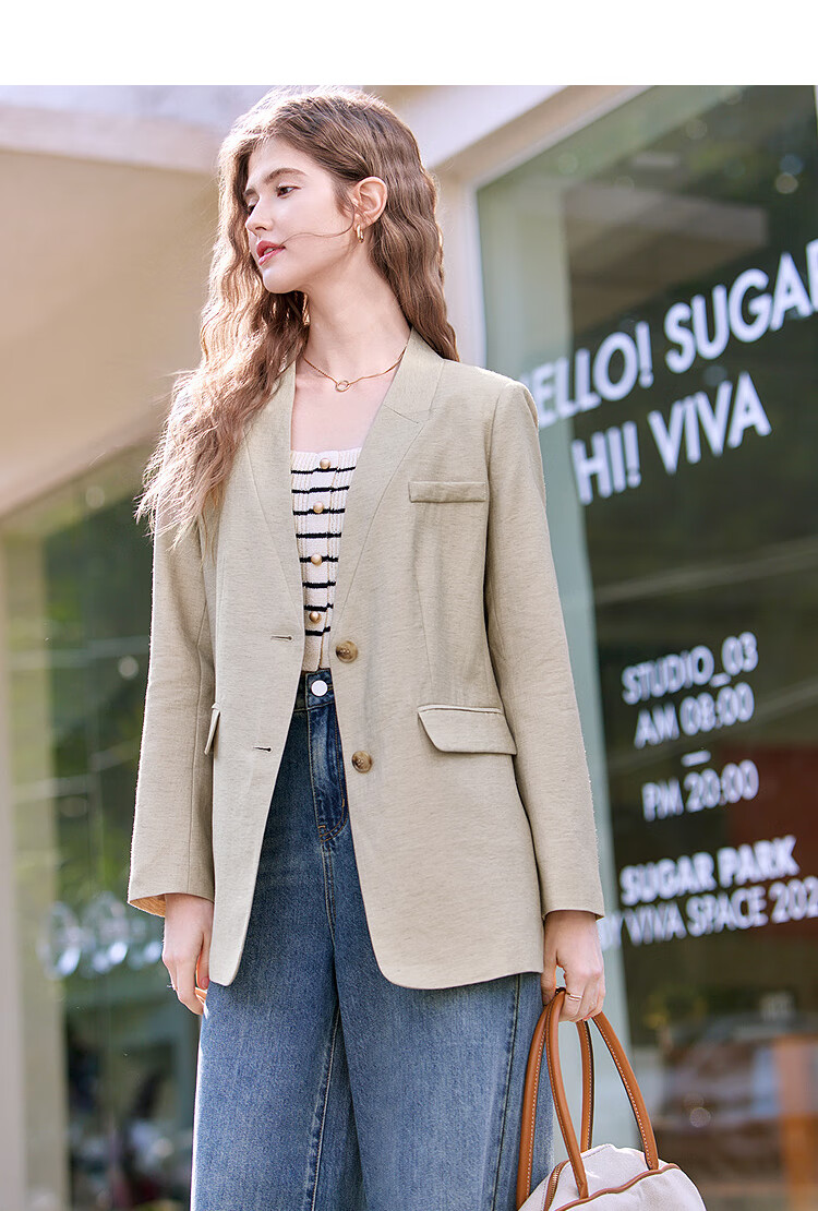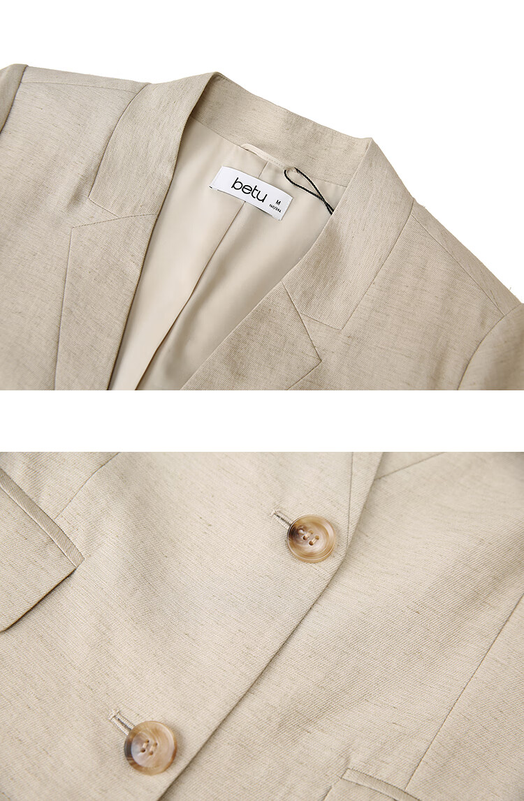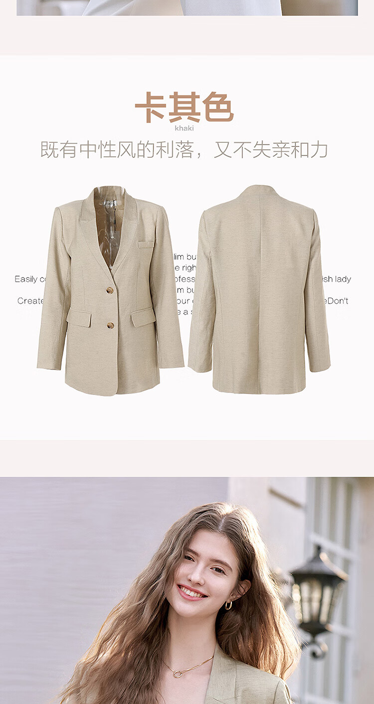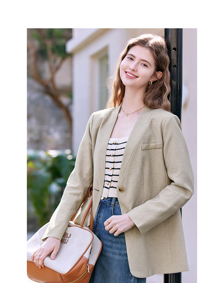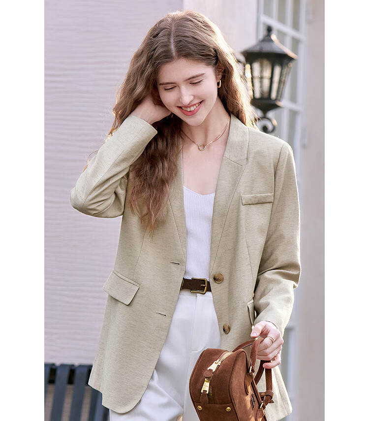 Betu Women's 2025 Spring New Suit V-neck Fashion Temperament Loose Casual Suit Jacket Women 2502T84 Khaki M