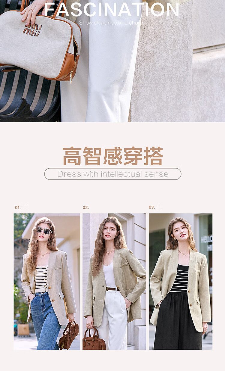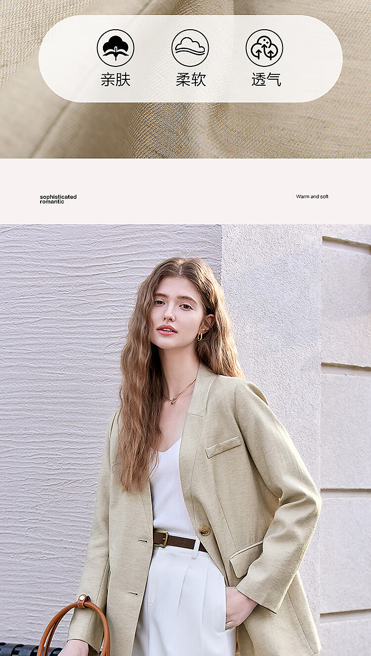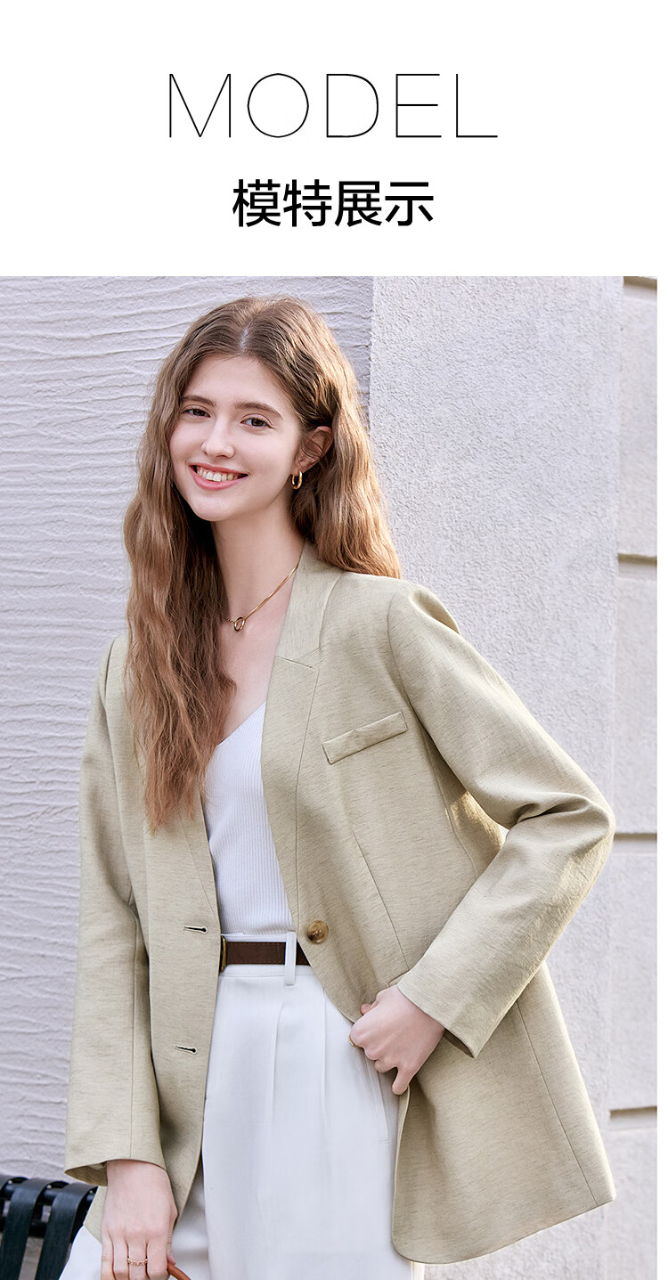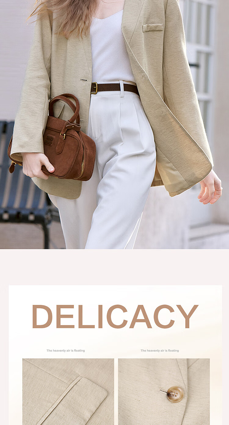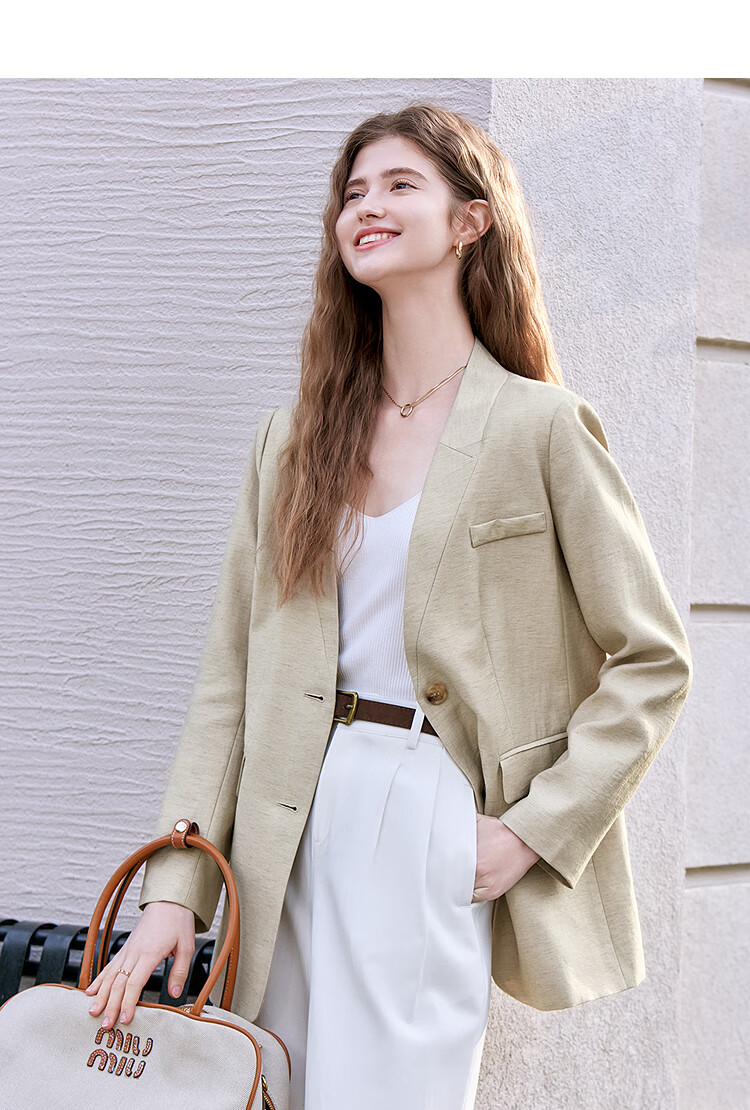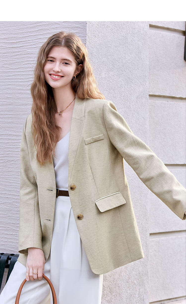 Betu Women's 2025 Spring New Suit V-neck Fashion Temperament Loose Casual Suit Jacket Women 2502T84 Khaki M