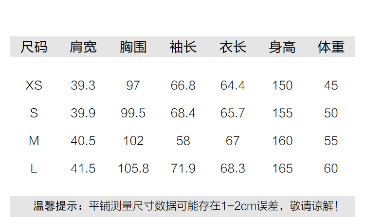 China (cm) 160-165/84-86 165-170 / 88-90 167-172 / 92-96 168-173 / 98-102 170-176 / 106-110