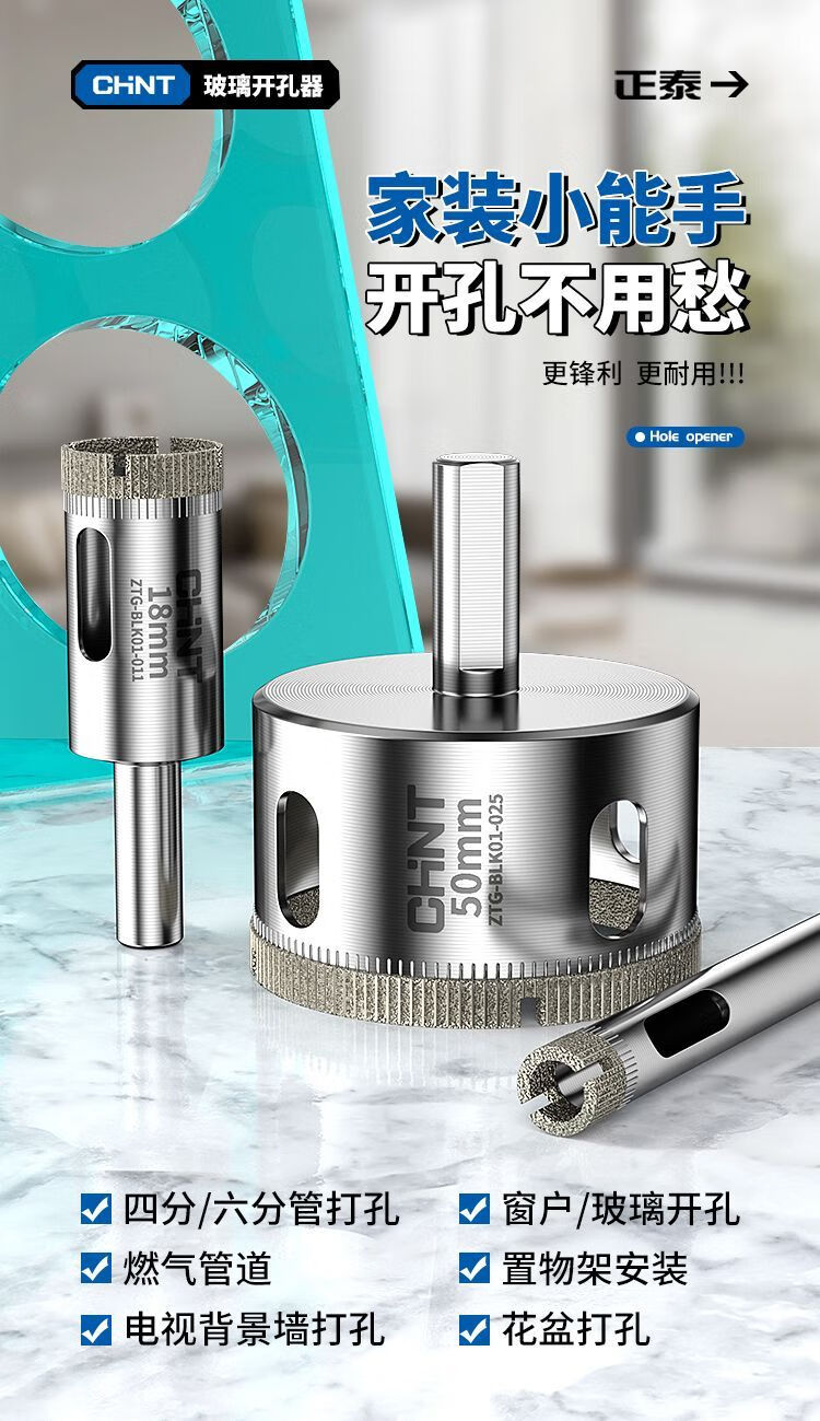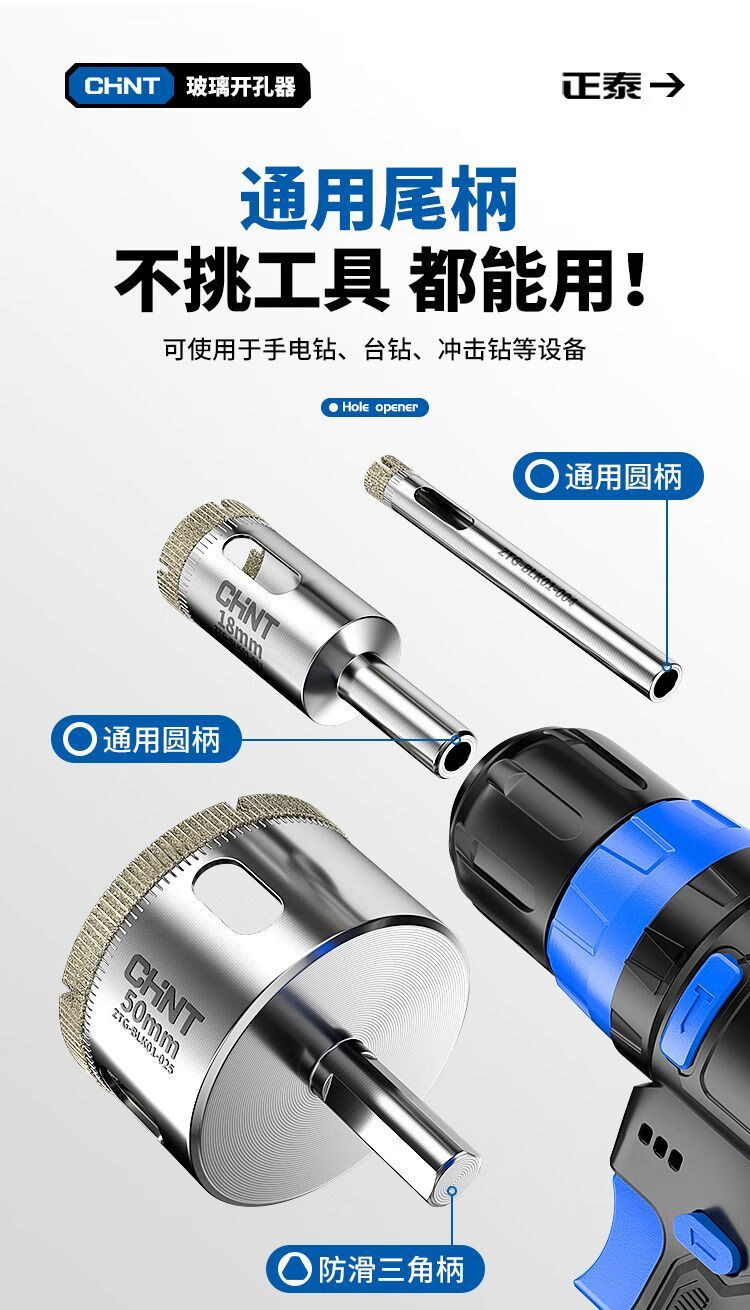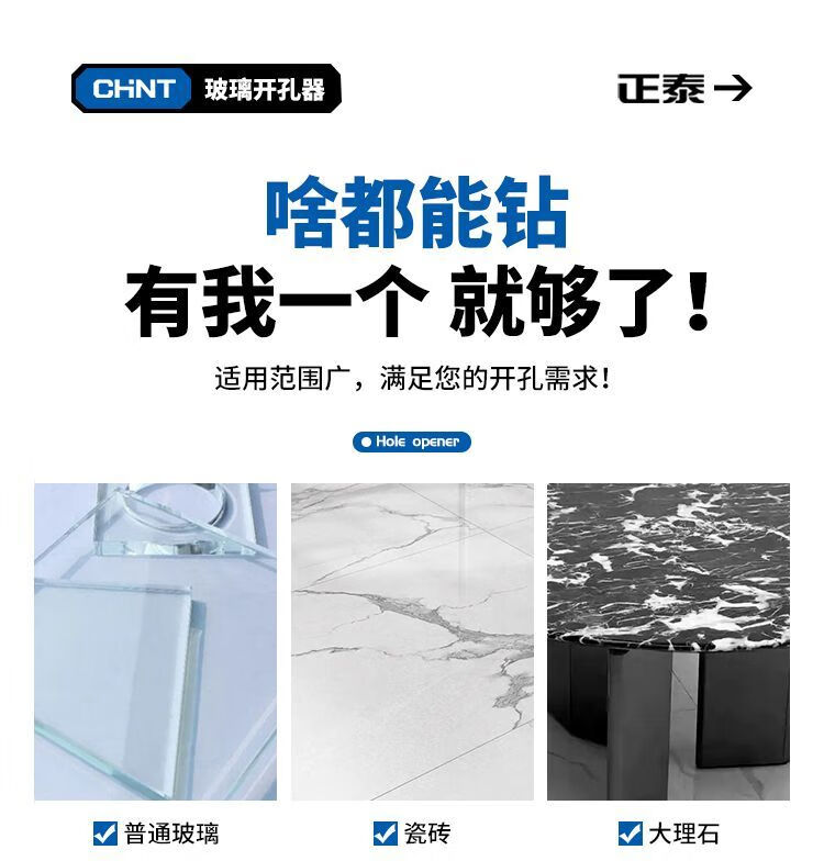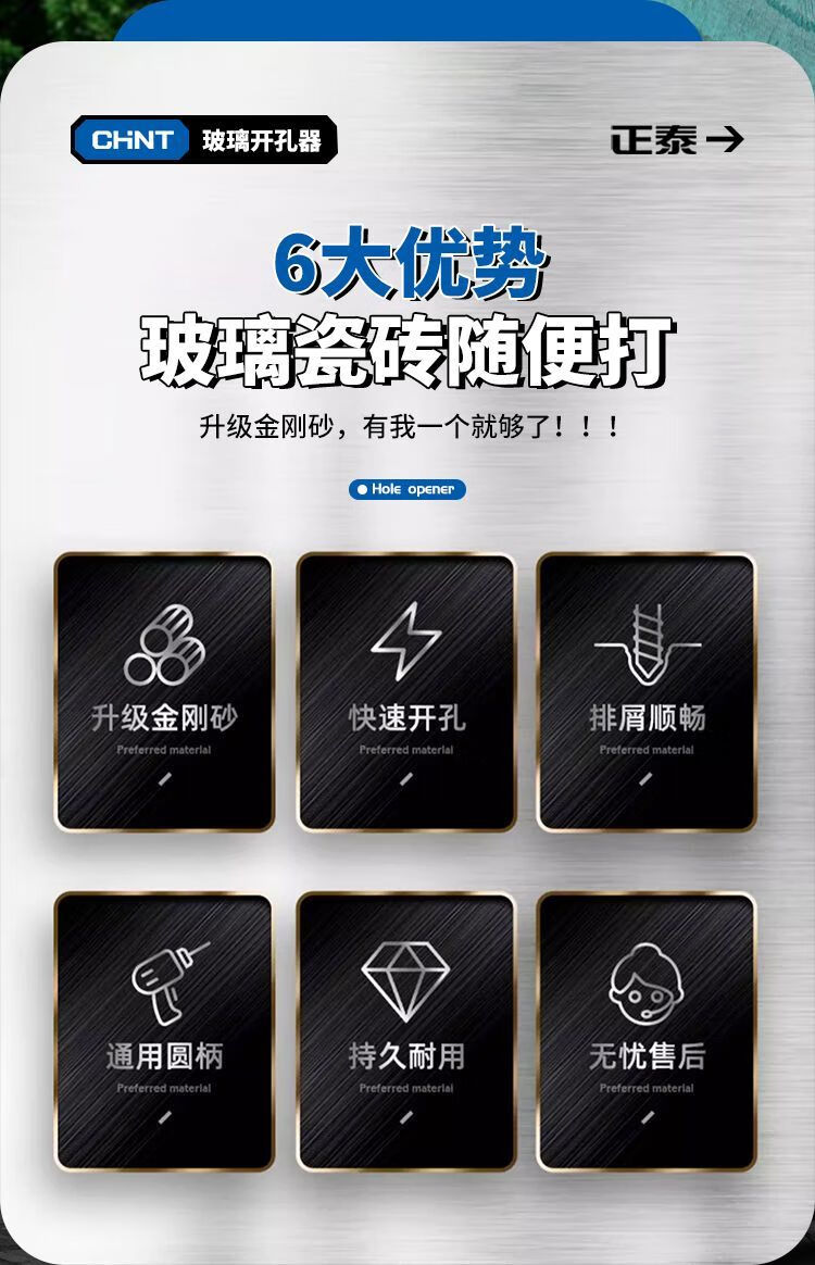 Chint glass hole opener ceramic tile drilling drill bit artifact special marble magnetic 6mm diamond hand electric drill to turn 100 commonly used set 6+8+10+12