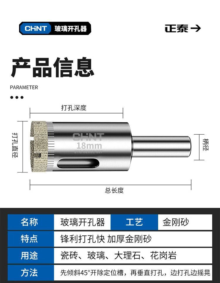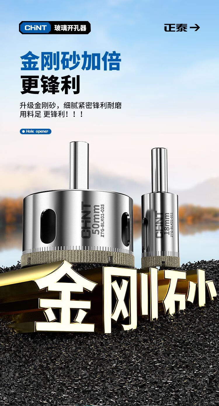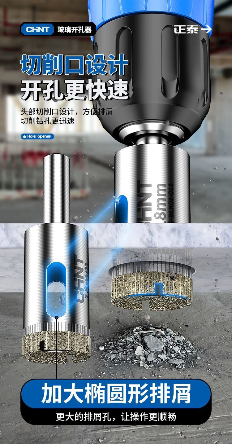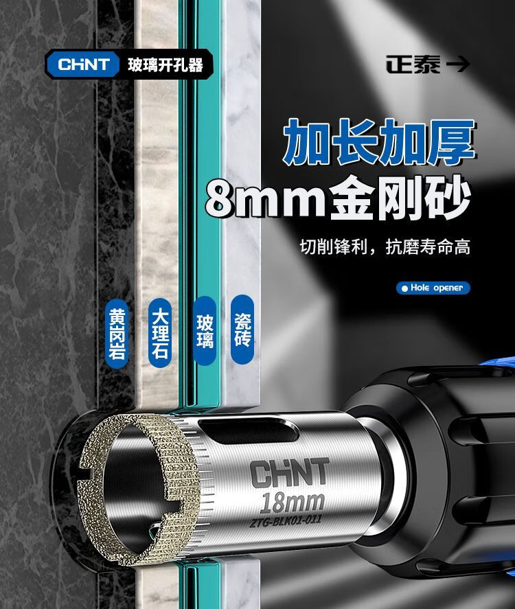 Chint glass hole opener ceramic tile drilling drill bit artifact special marble magnetic 6mm diamond hand electric drill to turn 100 commonly used set 6+8+10+12