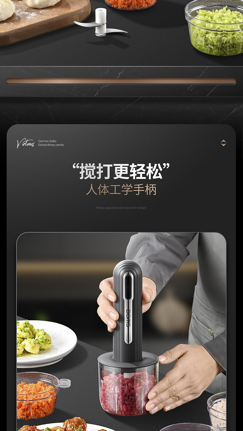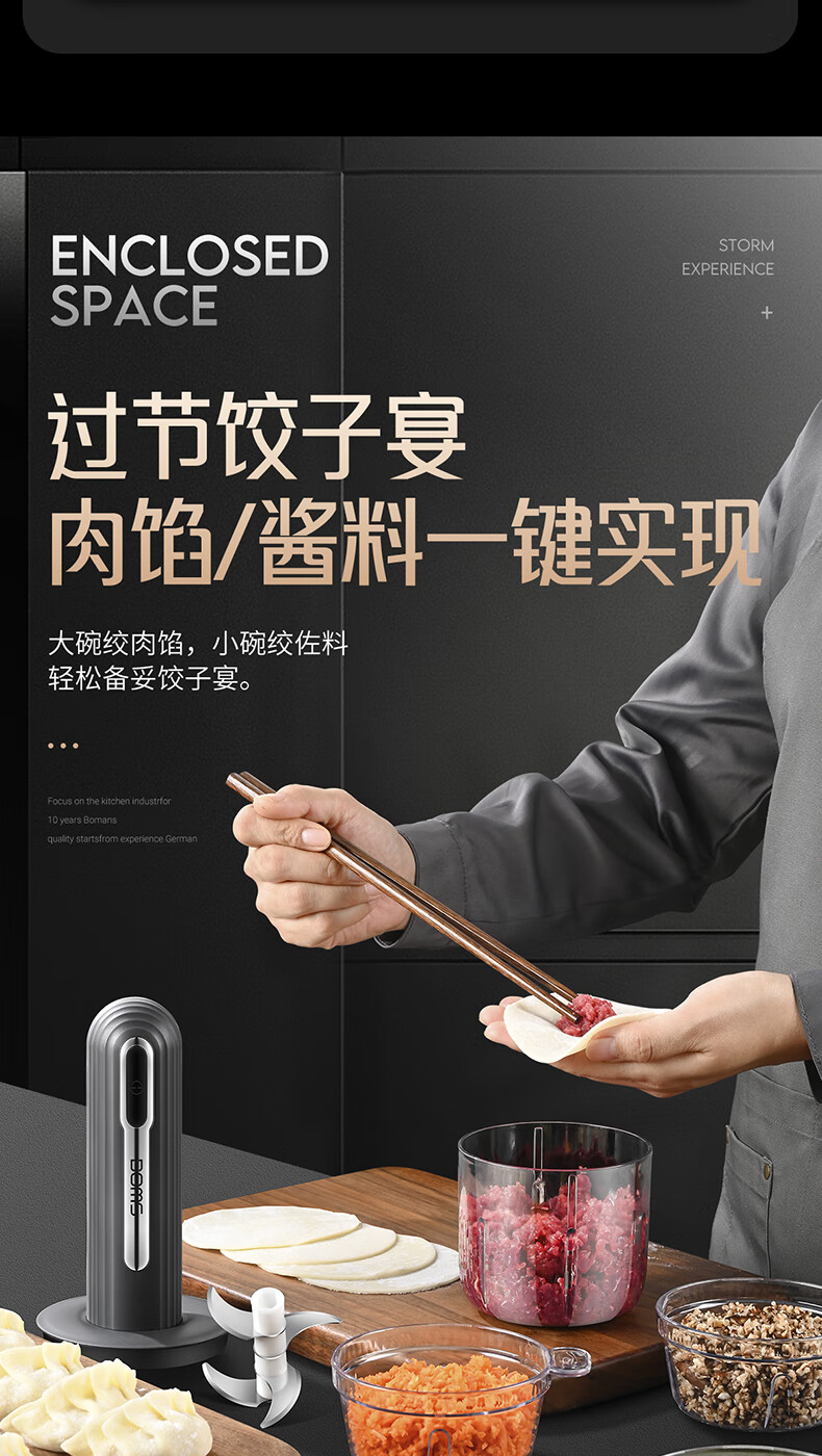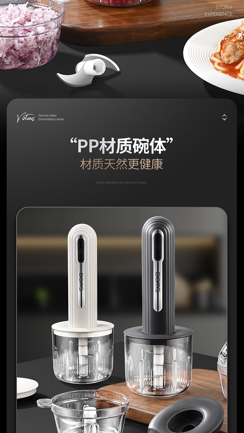 Bomans small condiment machine household multi-functional meat grinder mixer electric chopped vegetable stuffing supplement meal preparation cooking machine multi-functional condiment machine white 2 blades + 4 small bowls