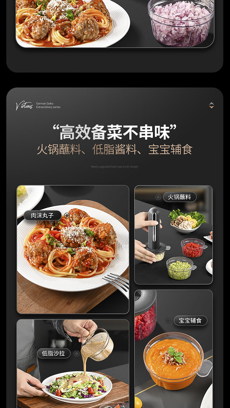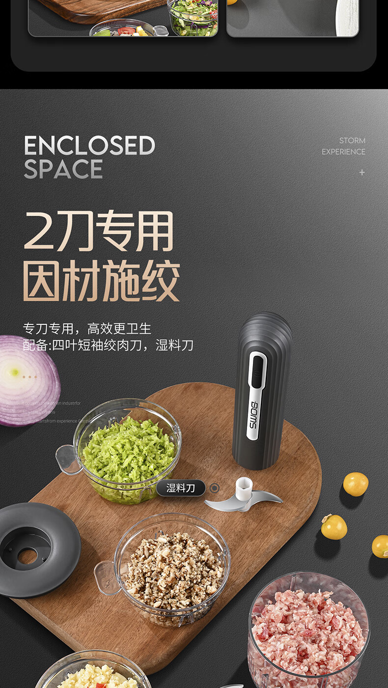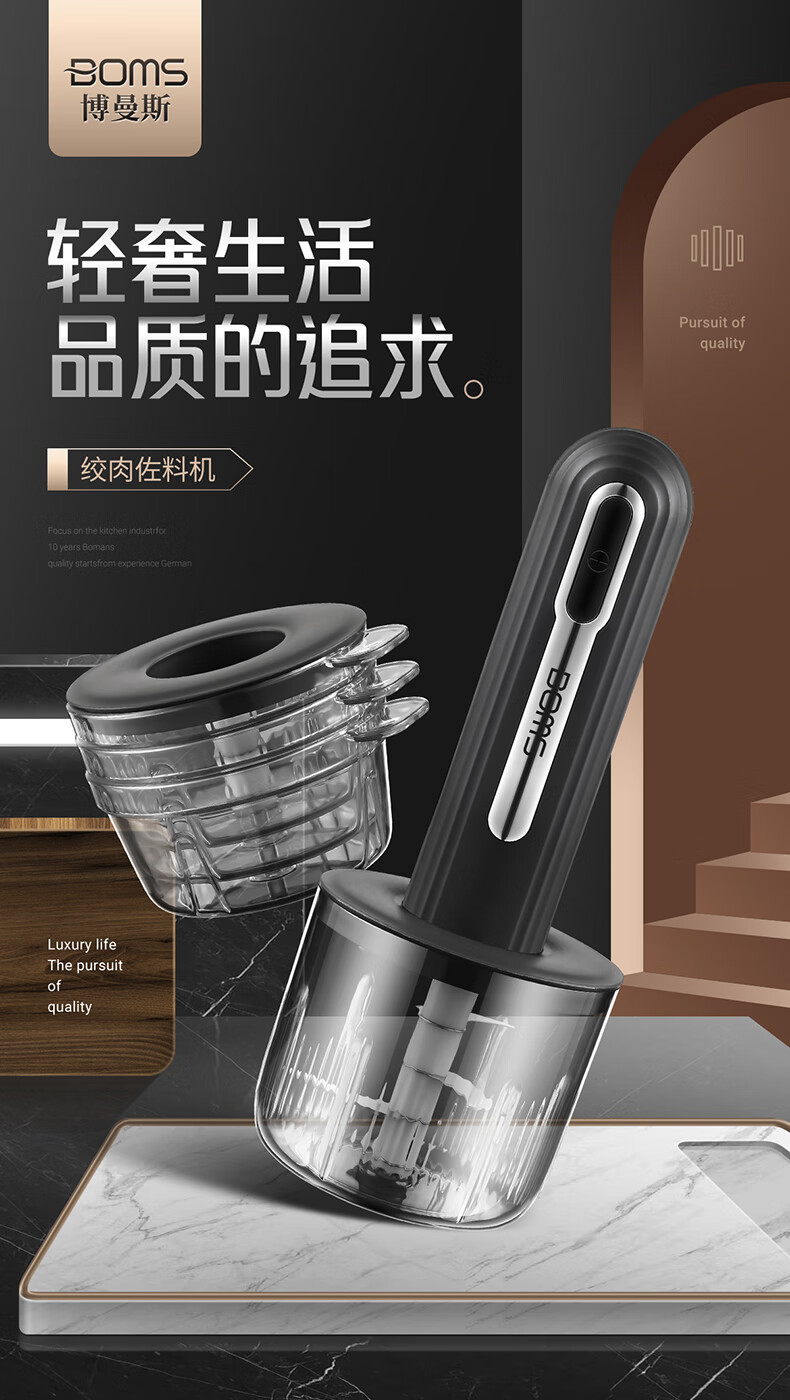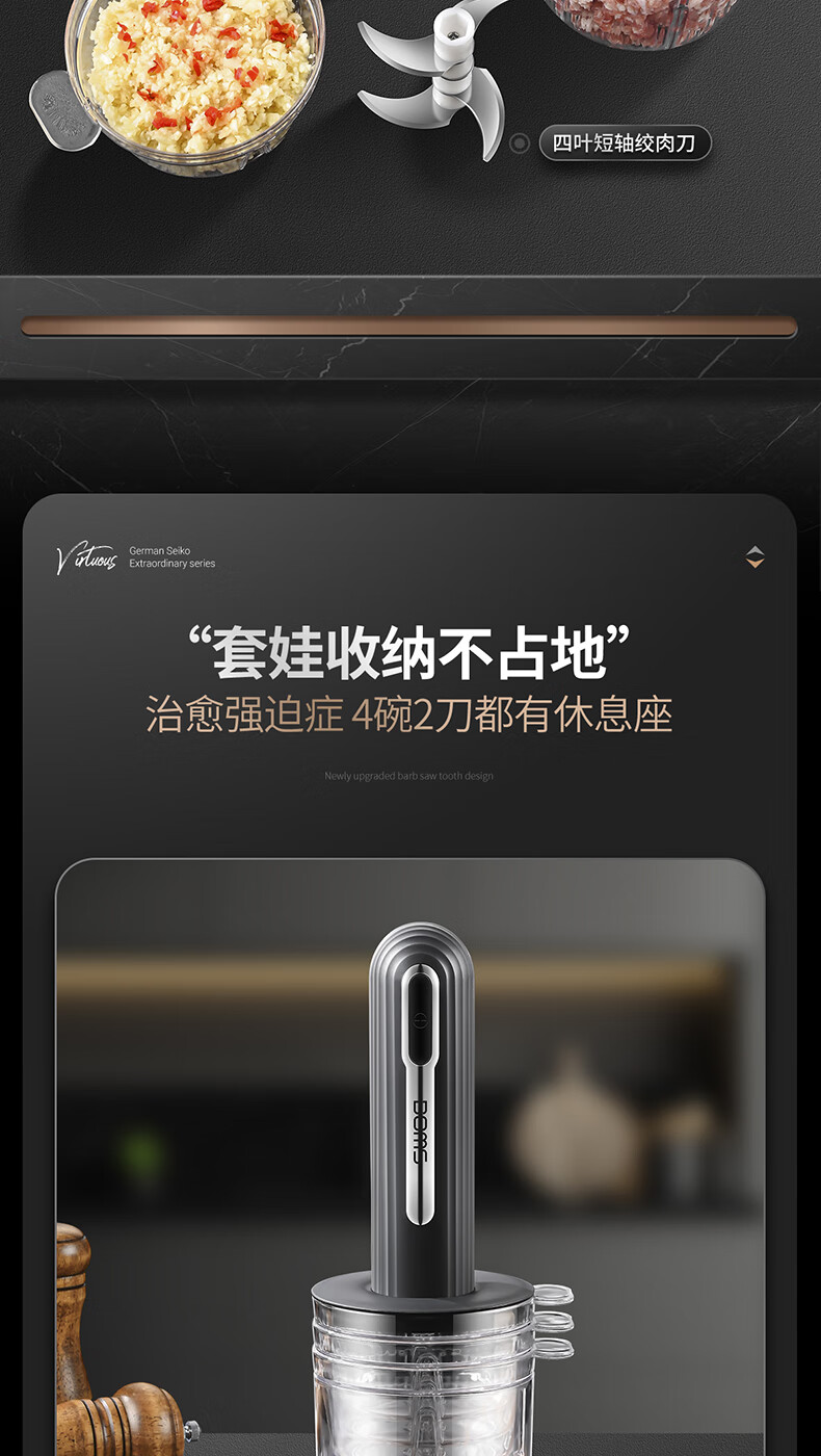 Bomans small condiment machine household multi-functional meat grinder mixer electric chopped vegetable stuffing supplement meal preparation cooking machine multi-functional condiment machine white 2 blades + 4 small bowls