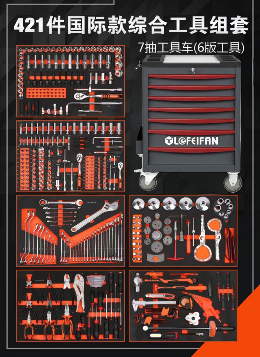 Wen Yijia multifunctional 424-piece 398-piece tool cart set industrial-grade auto repair tools heavy-duty seven-layer drawer type tool 421-piece + Zhiguan upgraded seven-layer tool cart