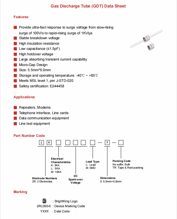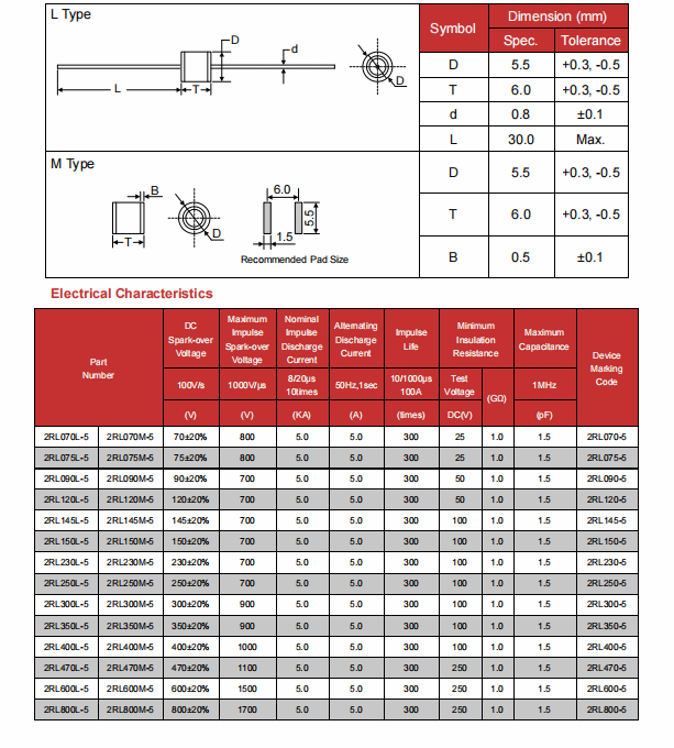 Insert ceramic gas discharge tube GDT B5G600 B560R 2R600-5 600V 5.5X6MM 120V