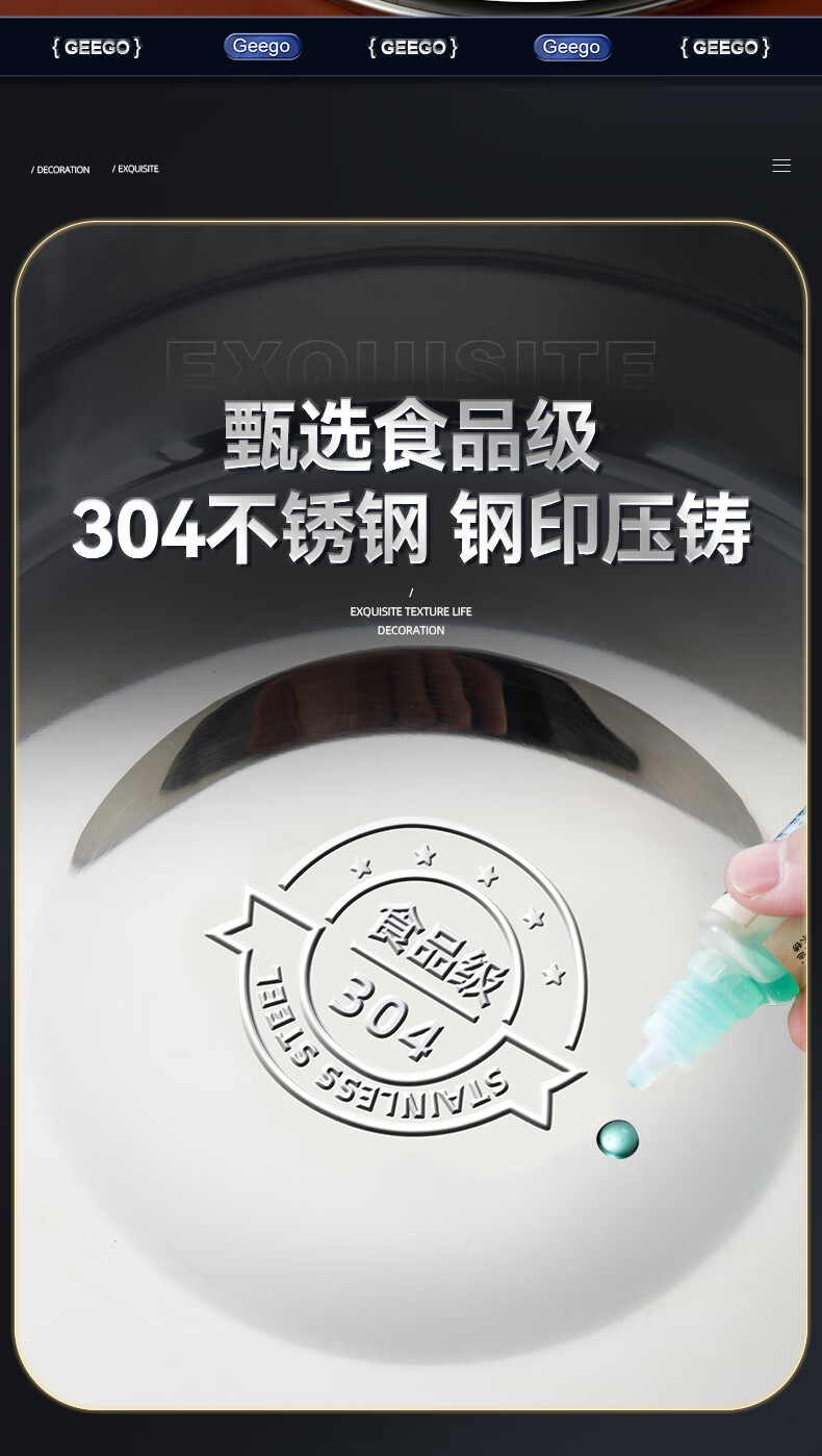 GEEGO304 stainless steel basin wash basin drain basin drain basin kitchen and basin egg beating basin kneading basin vegetable basin cooking basin 18cm extra thick 304 stainless steel basin 1