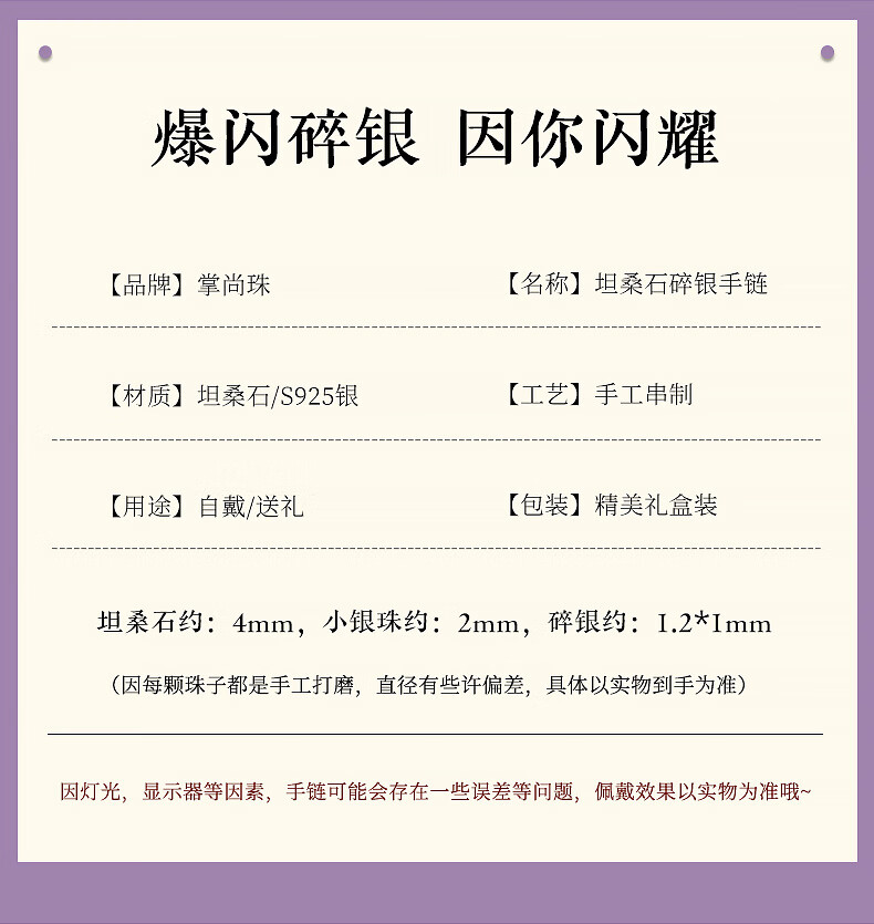 Shumo Tanzanite crushed silver several ounces sterling silver bracelet for women transfer beads s925 silver light luxury jewelry niche design gift to best friends Tanzanite crushed silver several ounces bracelet
