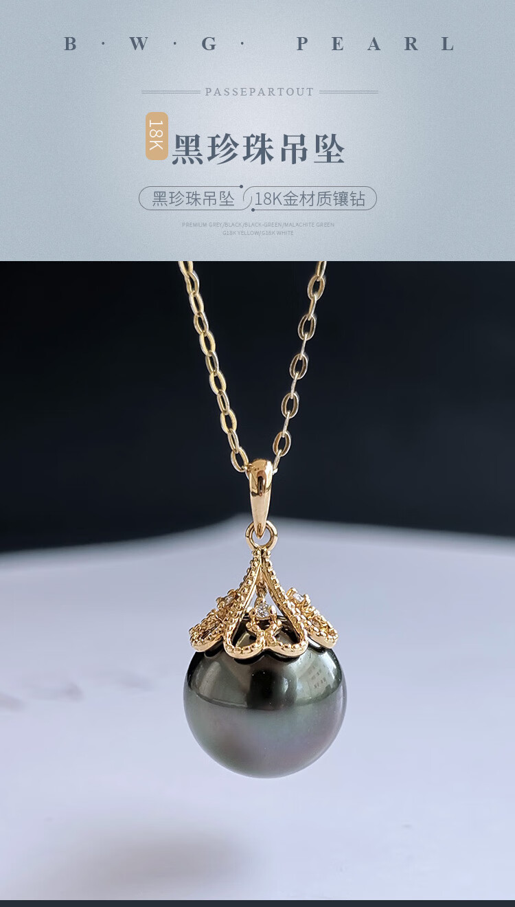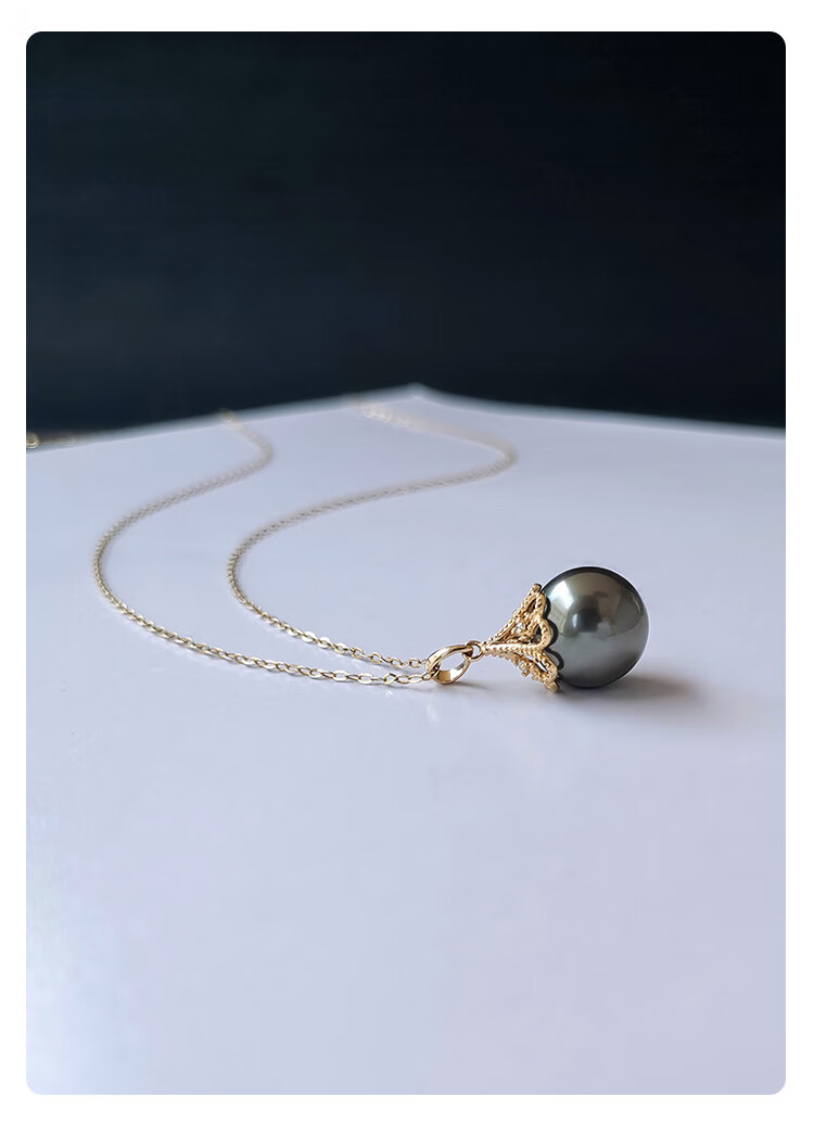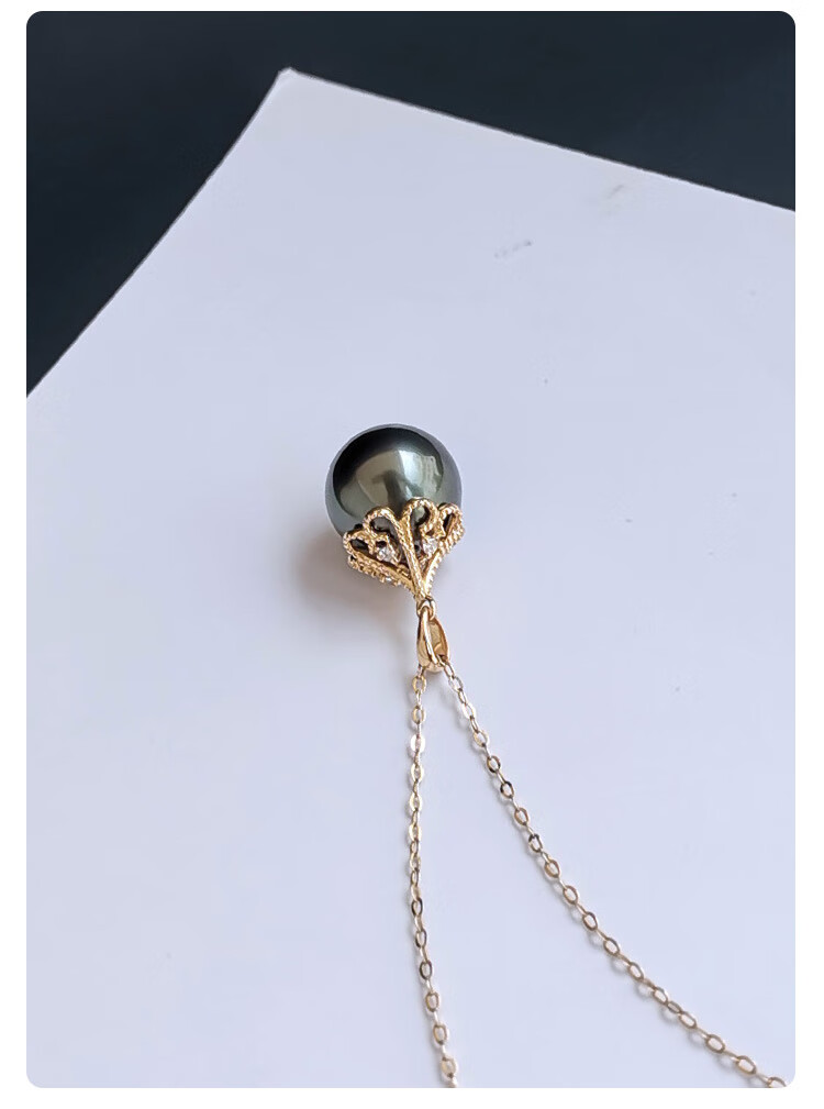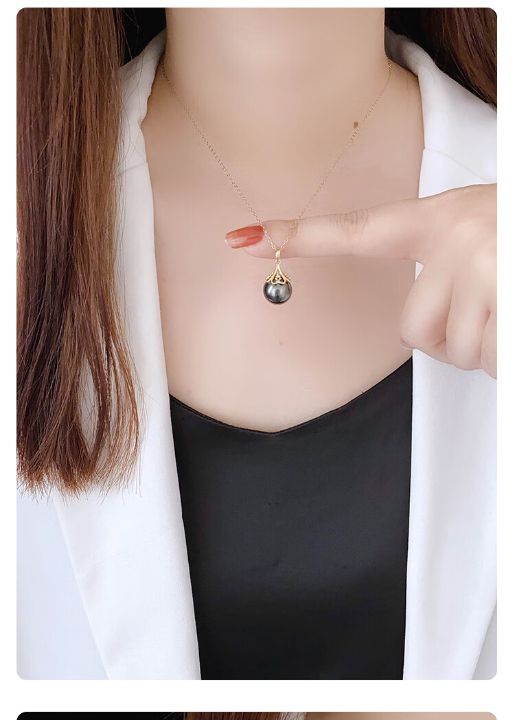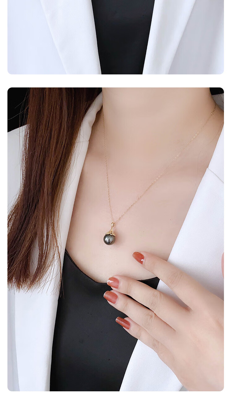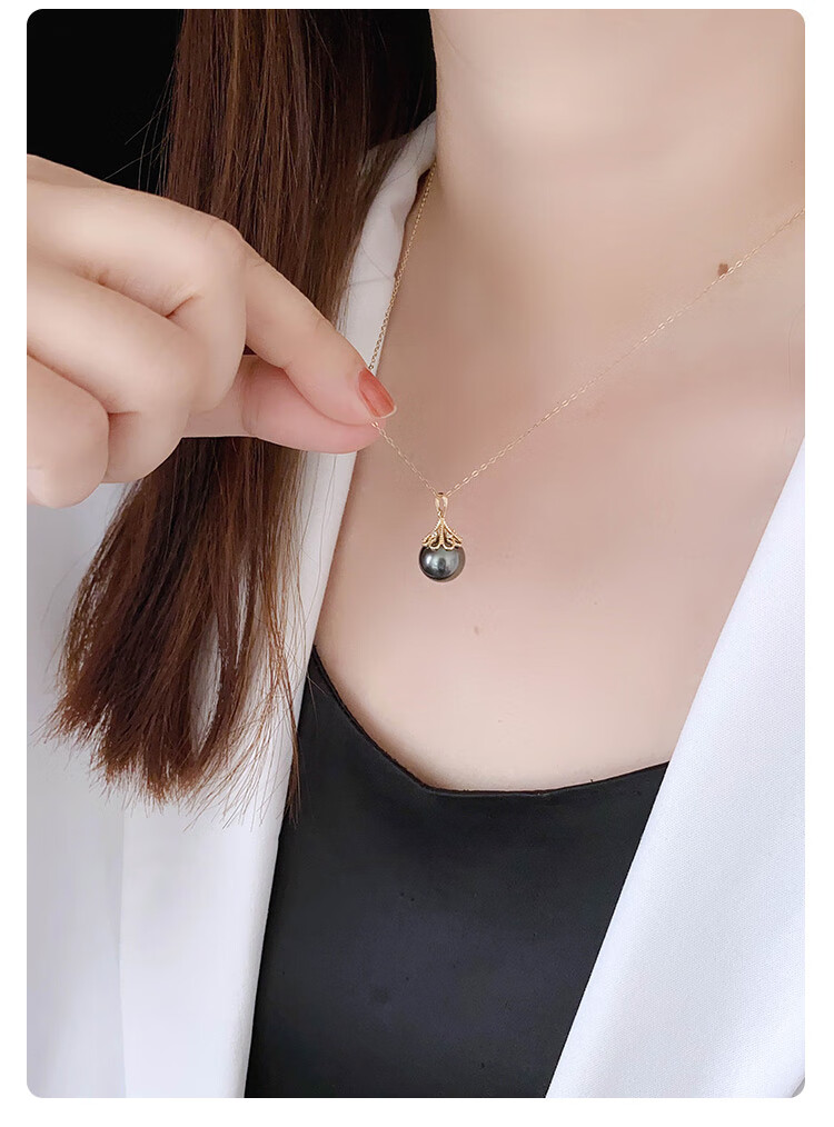 Black and white gold pearl Tahitian black pearl pendant 18K gold material inlaid with diamond petals shape hollow support women's model 10-11mm