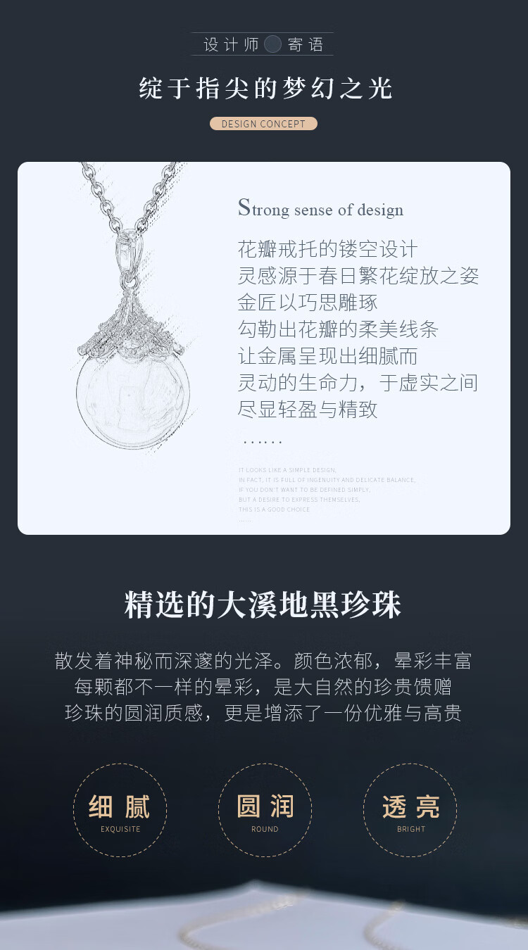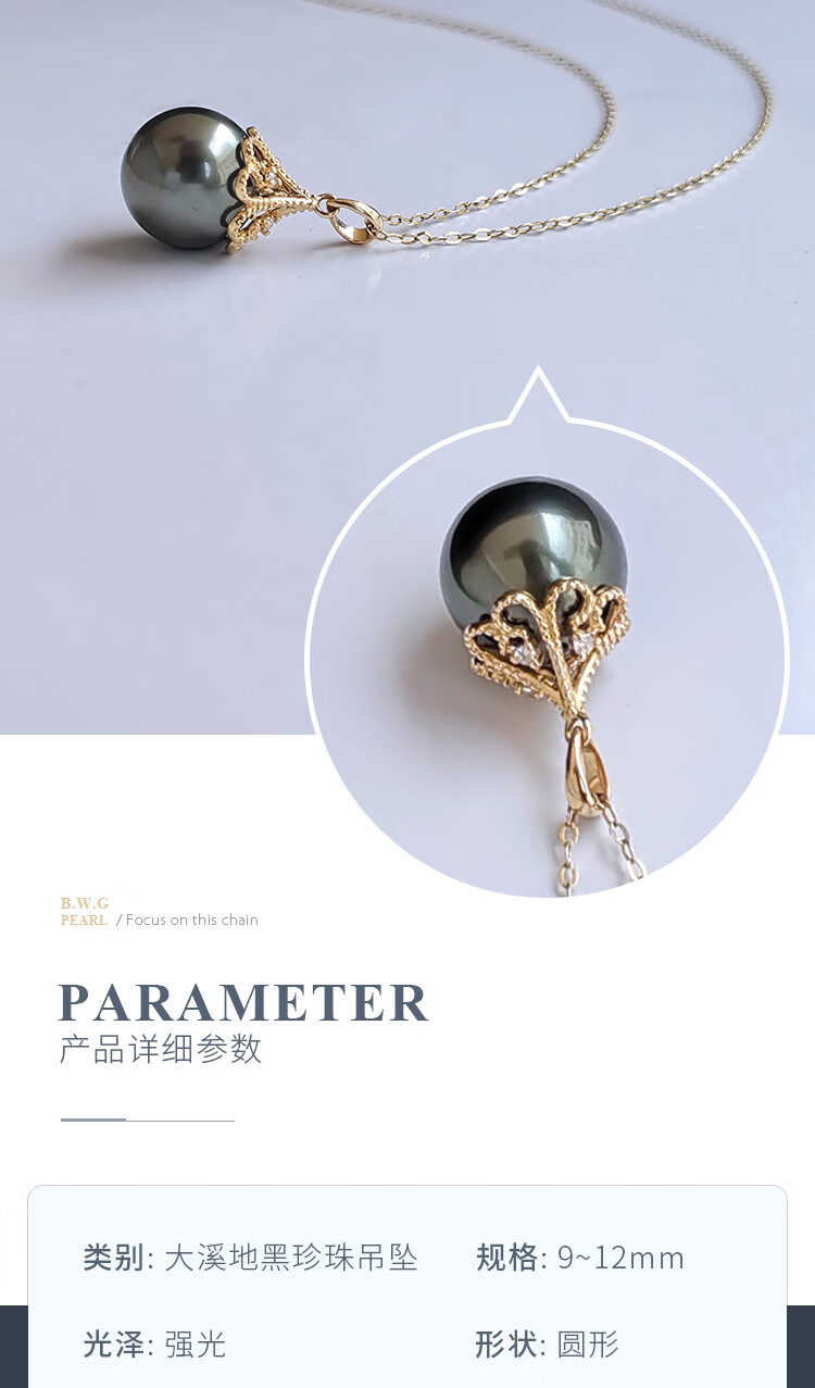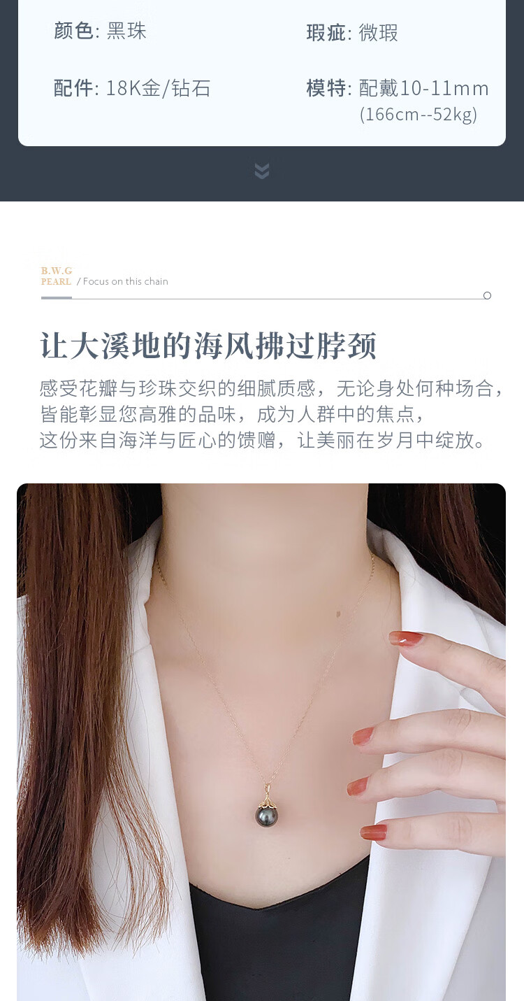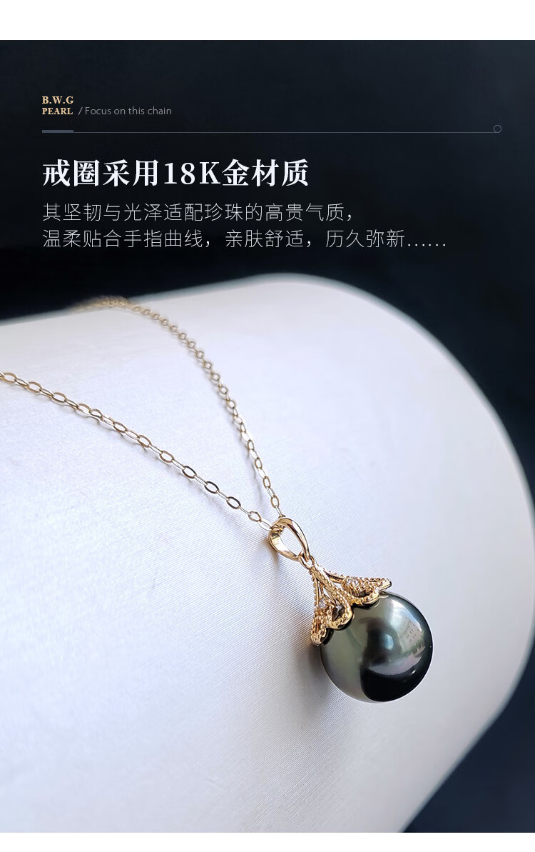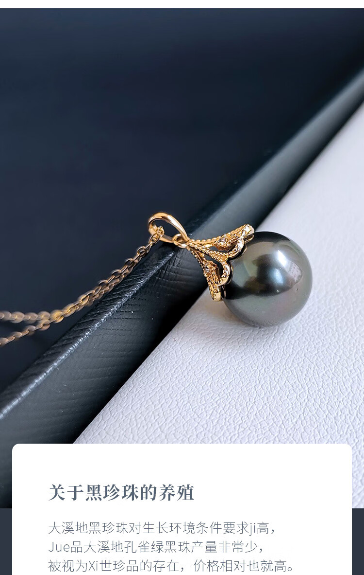 Black and white gold pearl Tahitian black pearl pendant 18K gold material inlaid with diamond petals shape hollow support women's model 10-11mm