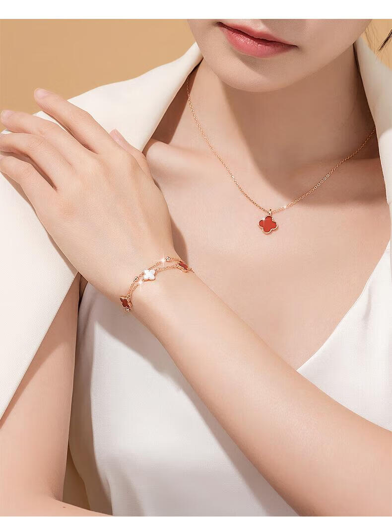 Fanzheshi genuine malachite four-leaf clover necklace for women, light luxury high-end agate pendant, Valentine's Day birthday gift for girlfriend, malachite four-leaf clover necklace + high-end jewelry gift box