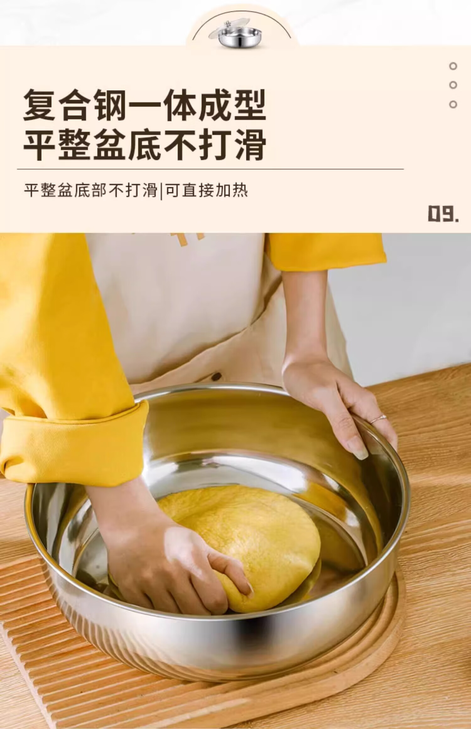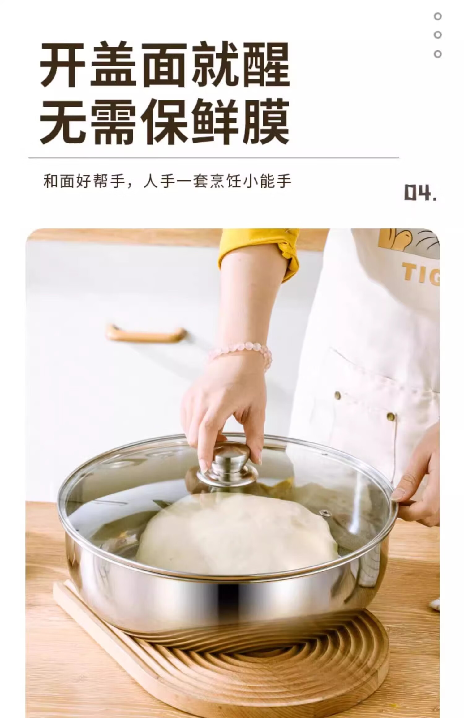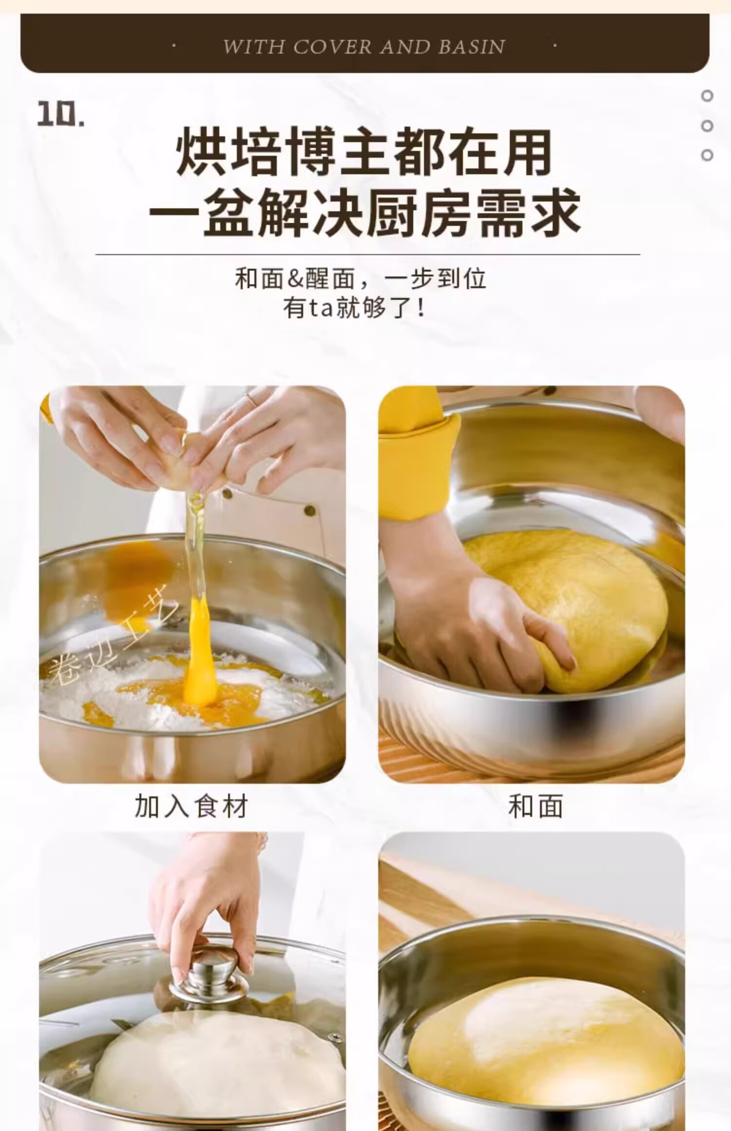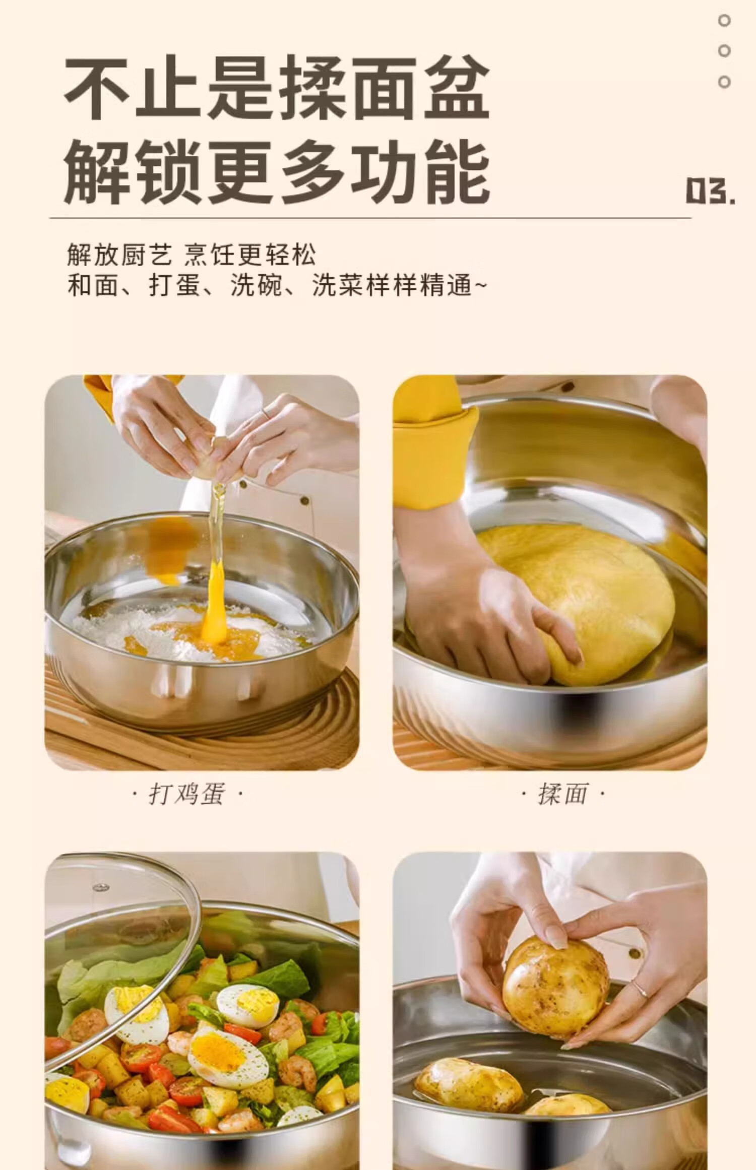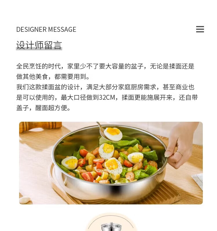 Stainless steel and basin deep kneading basin home kitchen egg washing vegetable noodle soup basin soup pot large pot hot pot 30cm stainless steel and basin + glass lid