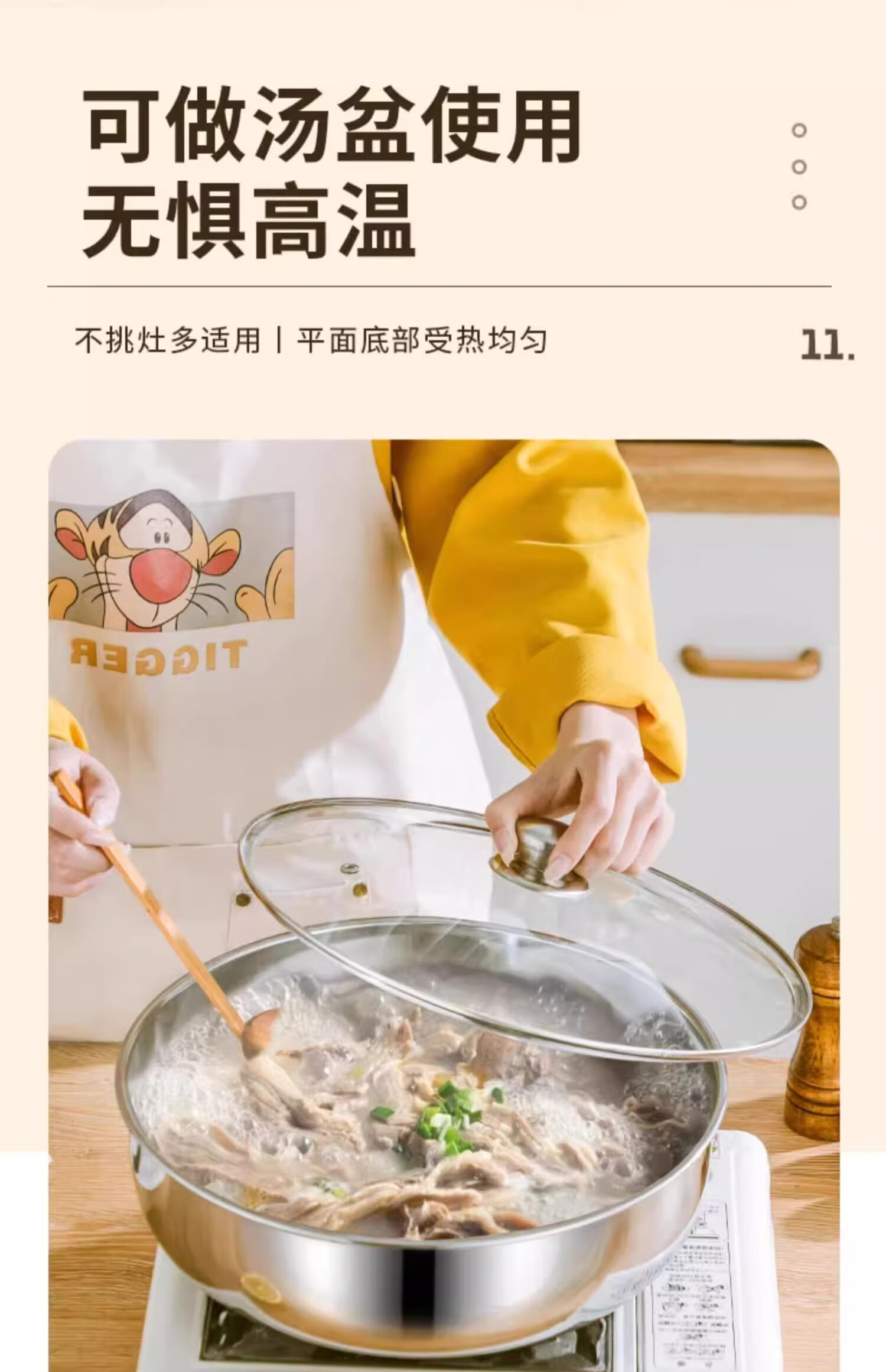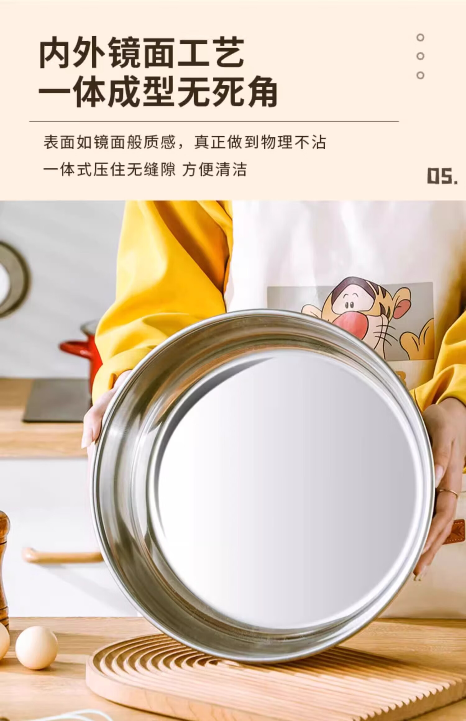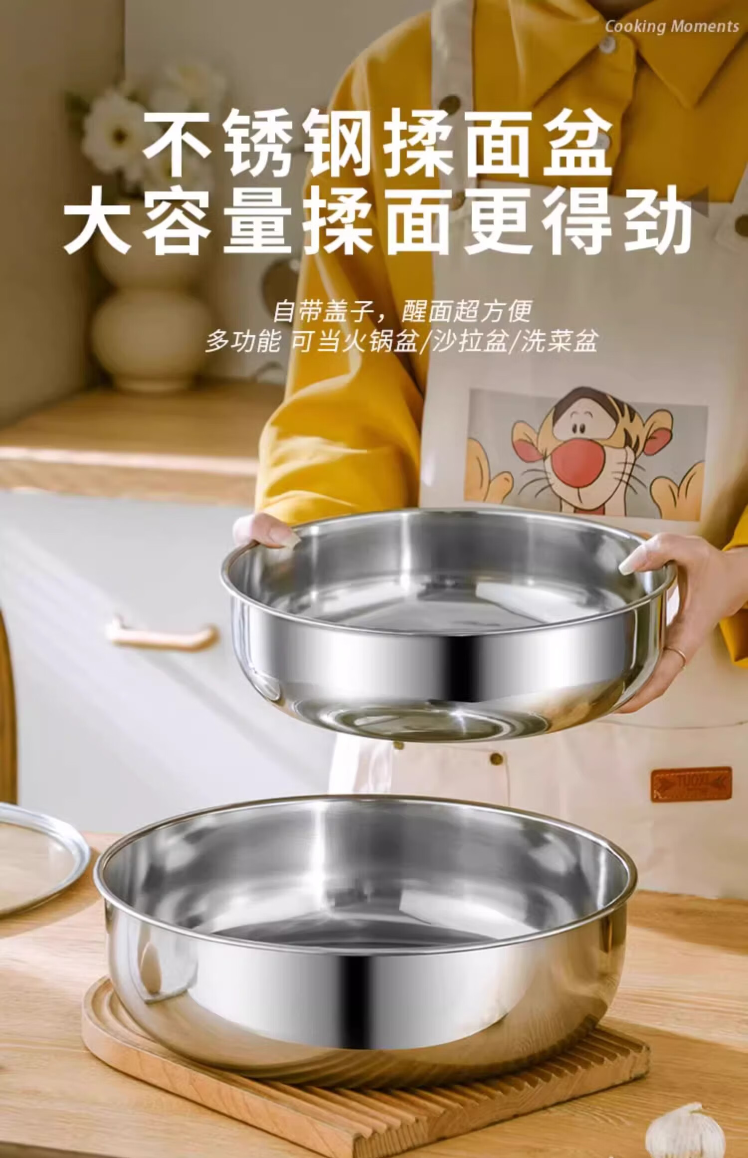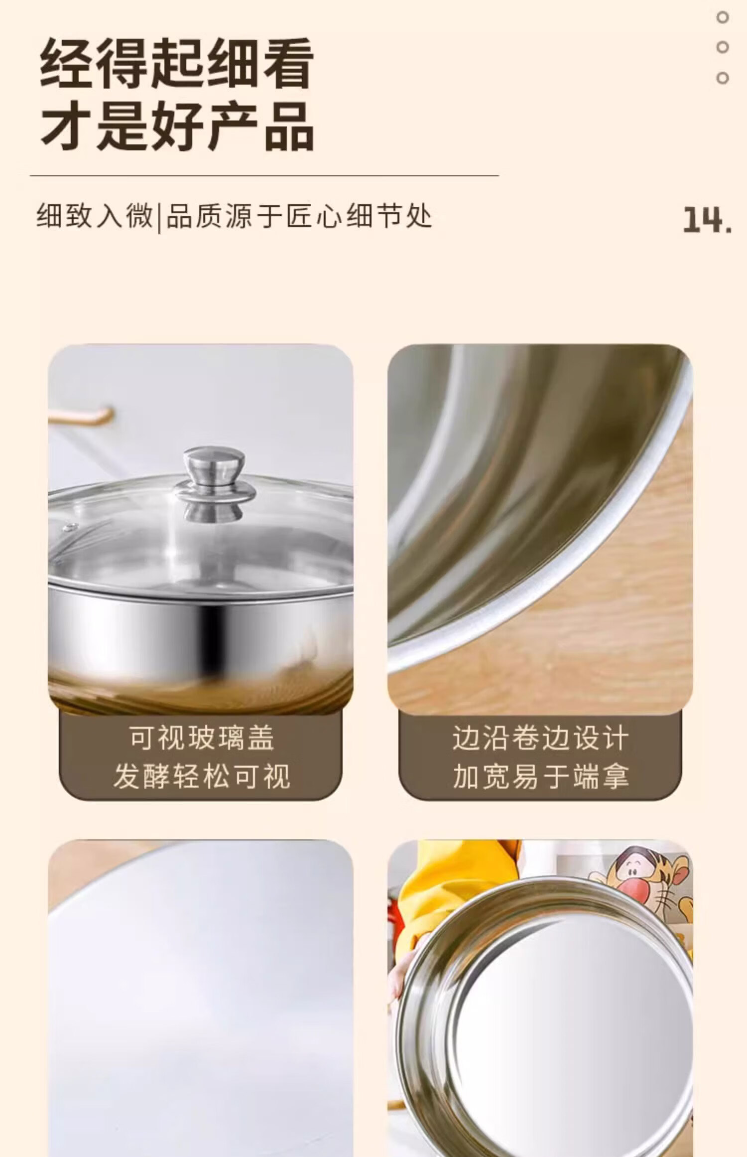 Stainless steel and basin deep kneading basin home kitchen egg washing vegetable noodle soup basin soup pot large pot hot pot 30cm stainless steel and basin + glass lid