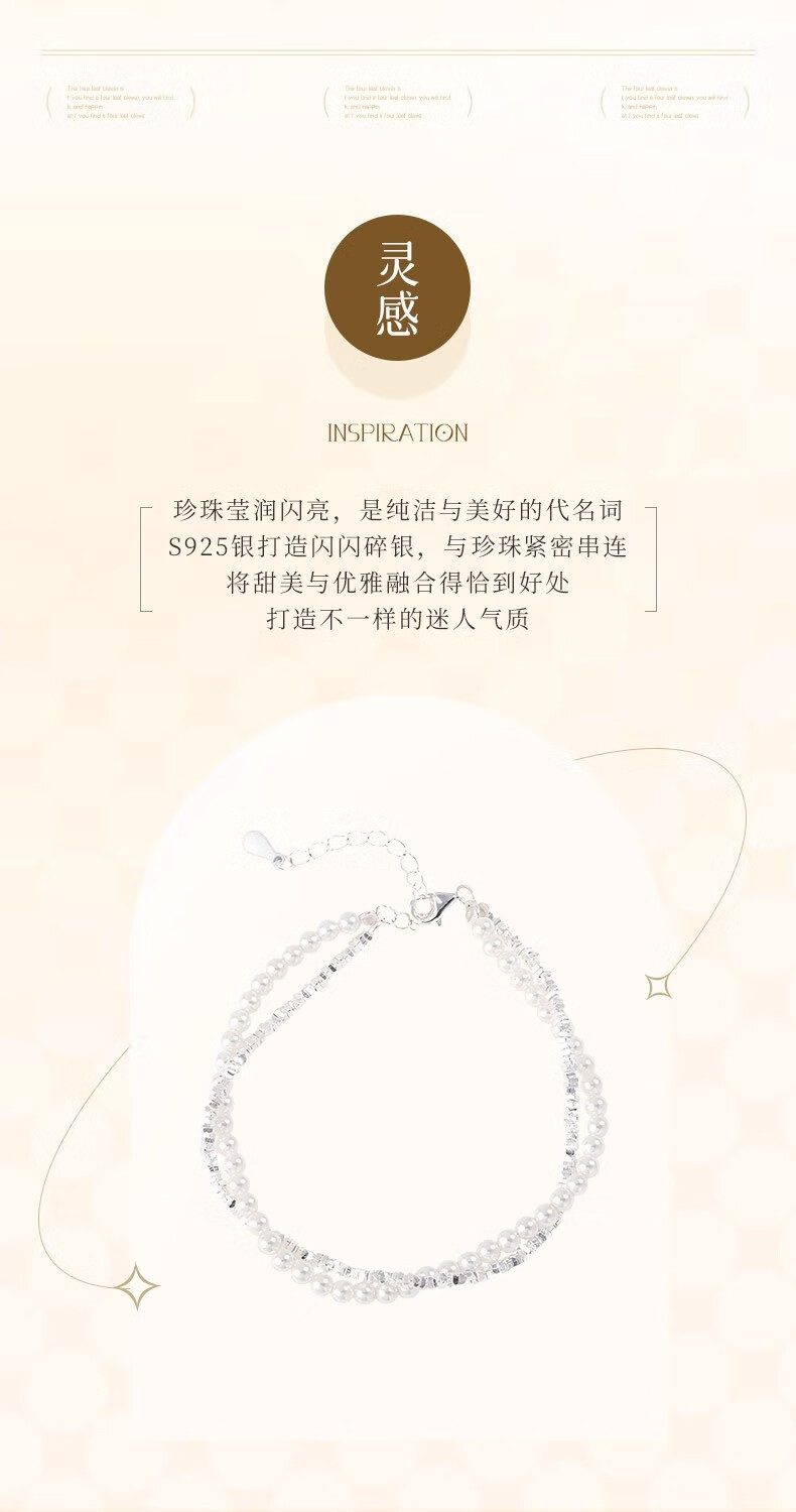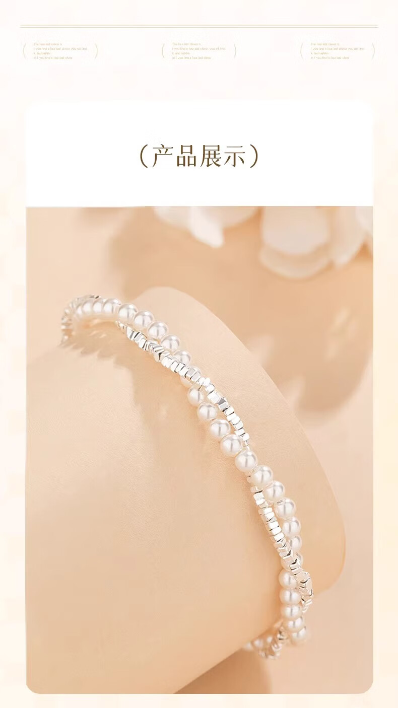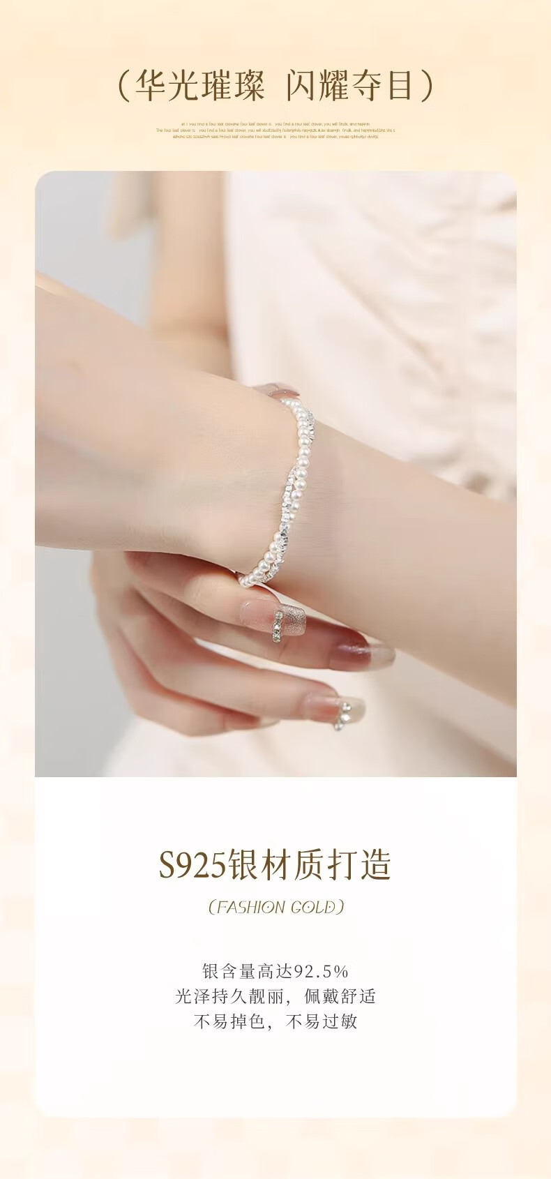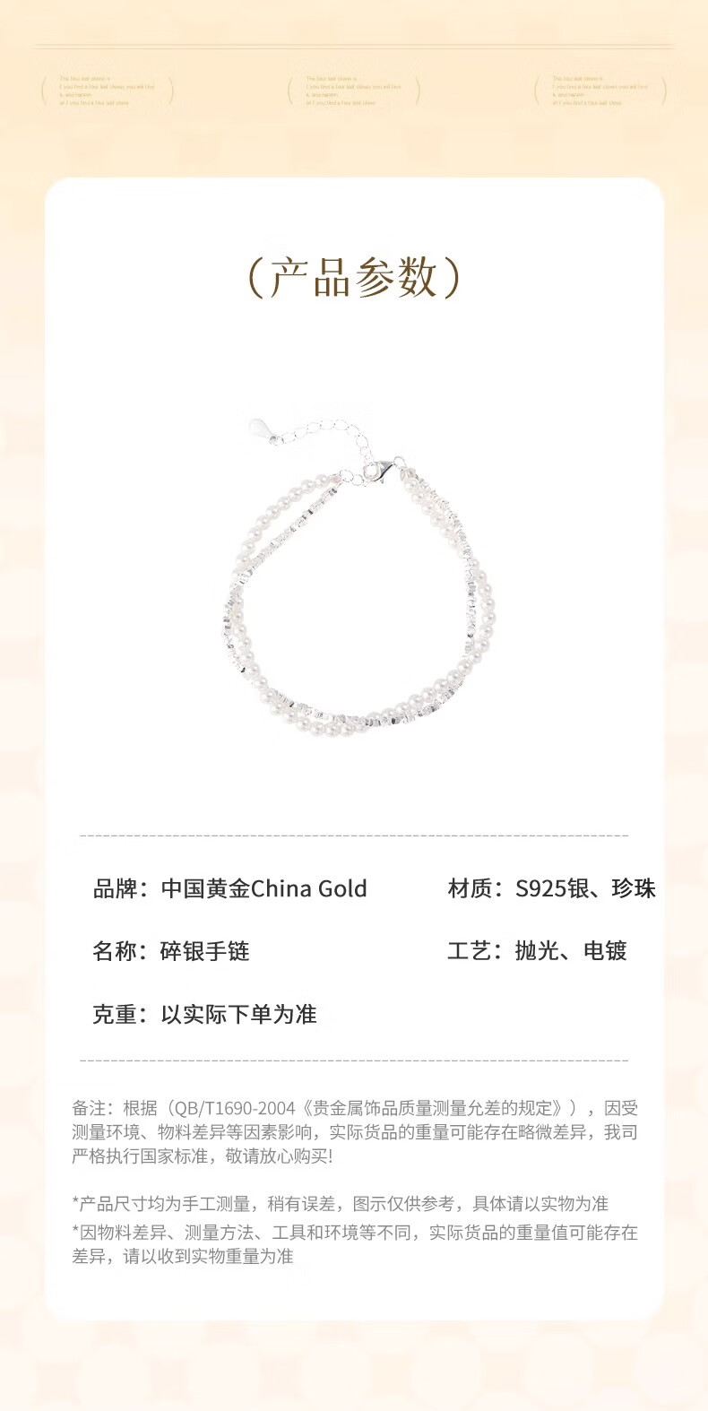 China Gold (CHINA GOLD) Pearl Bracelet Women's Broken Silver Bracelet Light Luxury Broken Silver Couple Old Valentine's Day Birthday Gift for Girlfriend and Wife When/Next Day Delivery s925 Pearl Broken Silver Bracelet Brand Gift Box