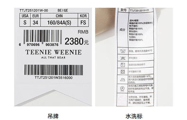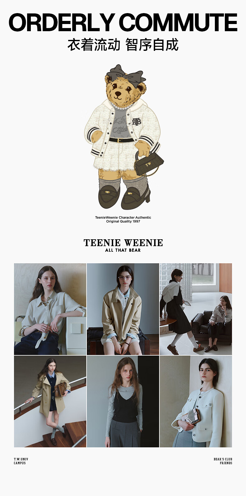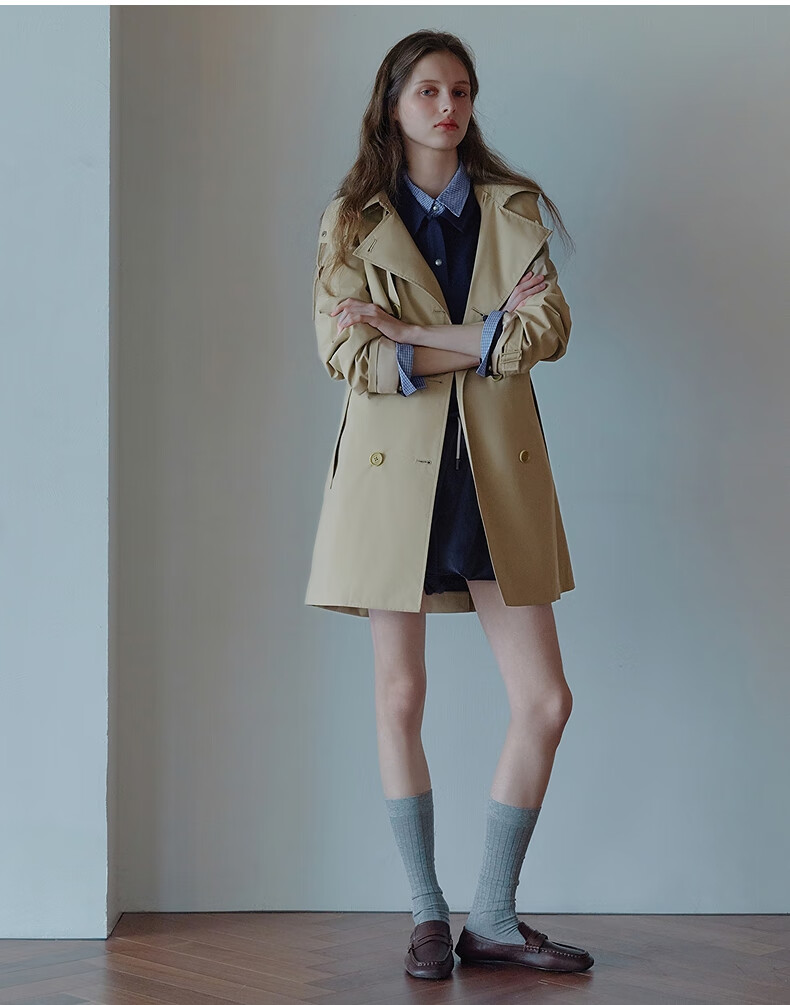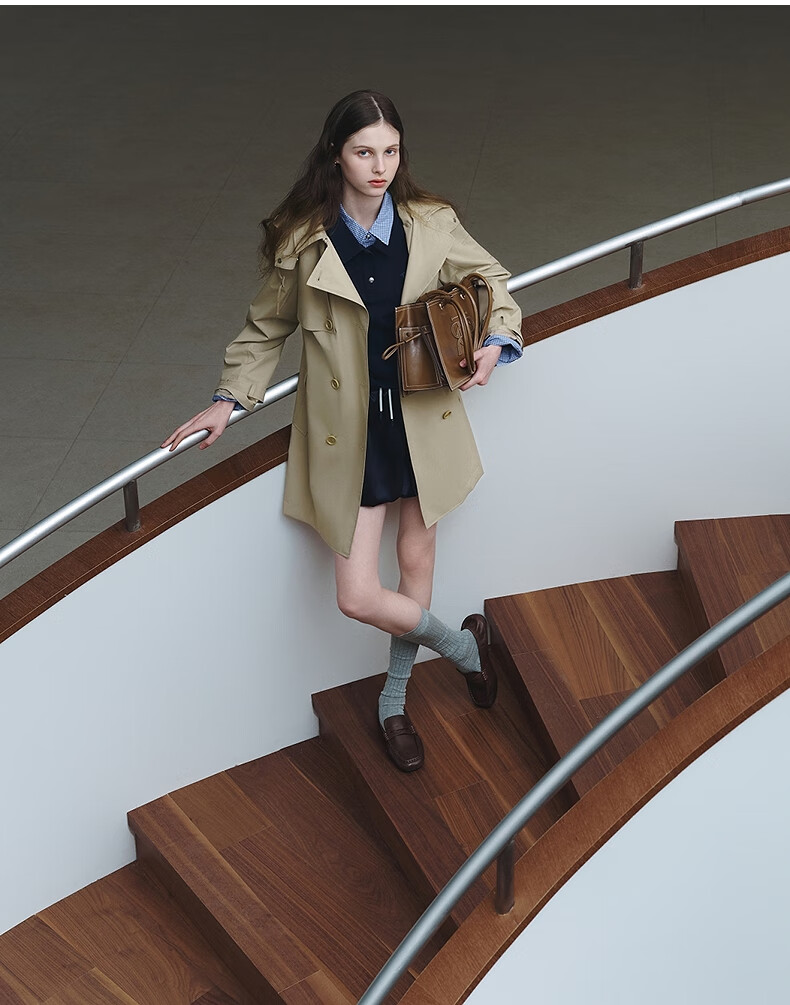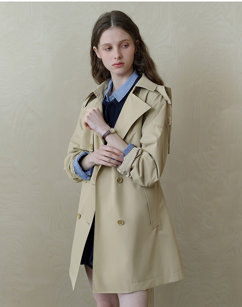 Teenie Weenie Bear Women's Windbreaker 2025 Autumn New Style Commuting Business Removable Hood Jacket Khaki M