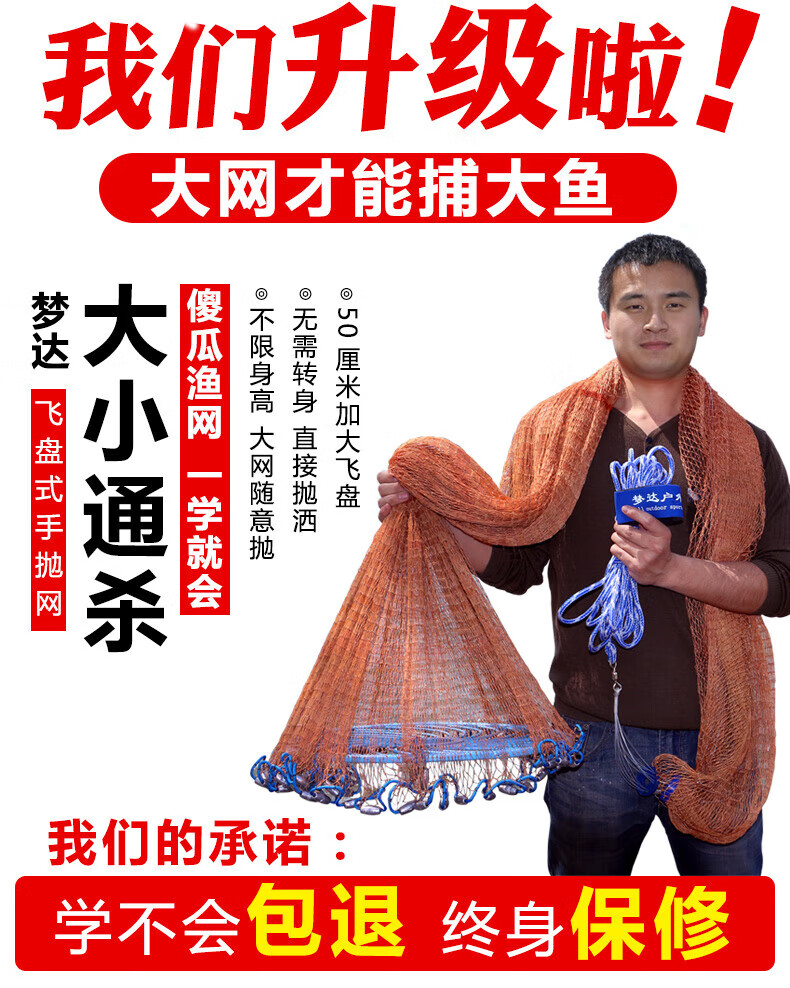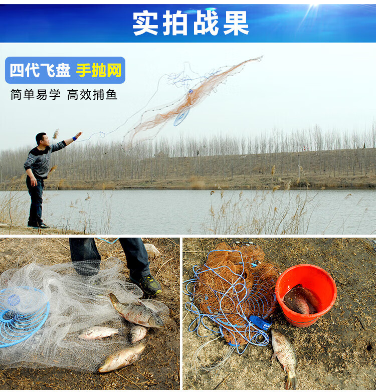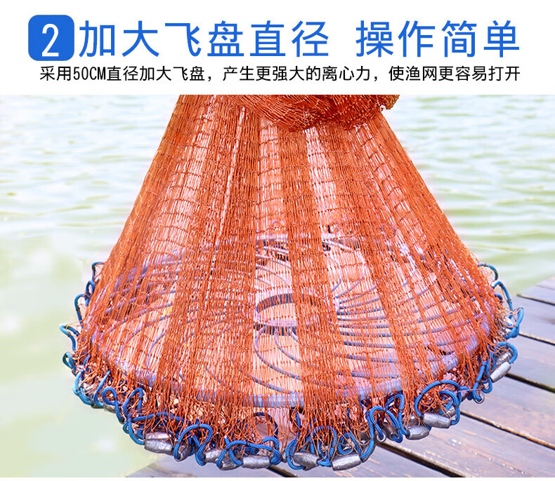 Mengda's new large flying disc type hand throwing net American fishing net throwing net hand throwing net fishing net fishing automatic easy throwing spin net throwing flying disc type hand throwing net children's model without gifts