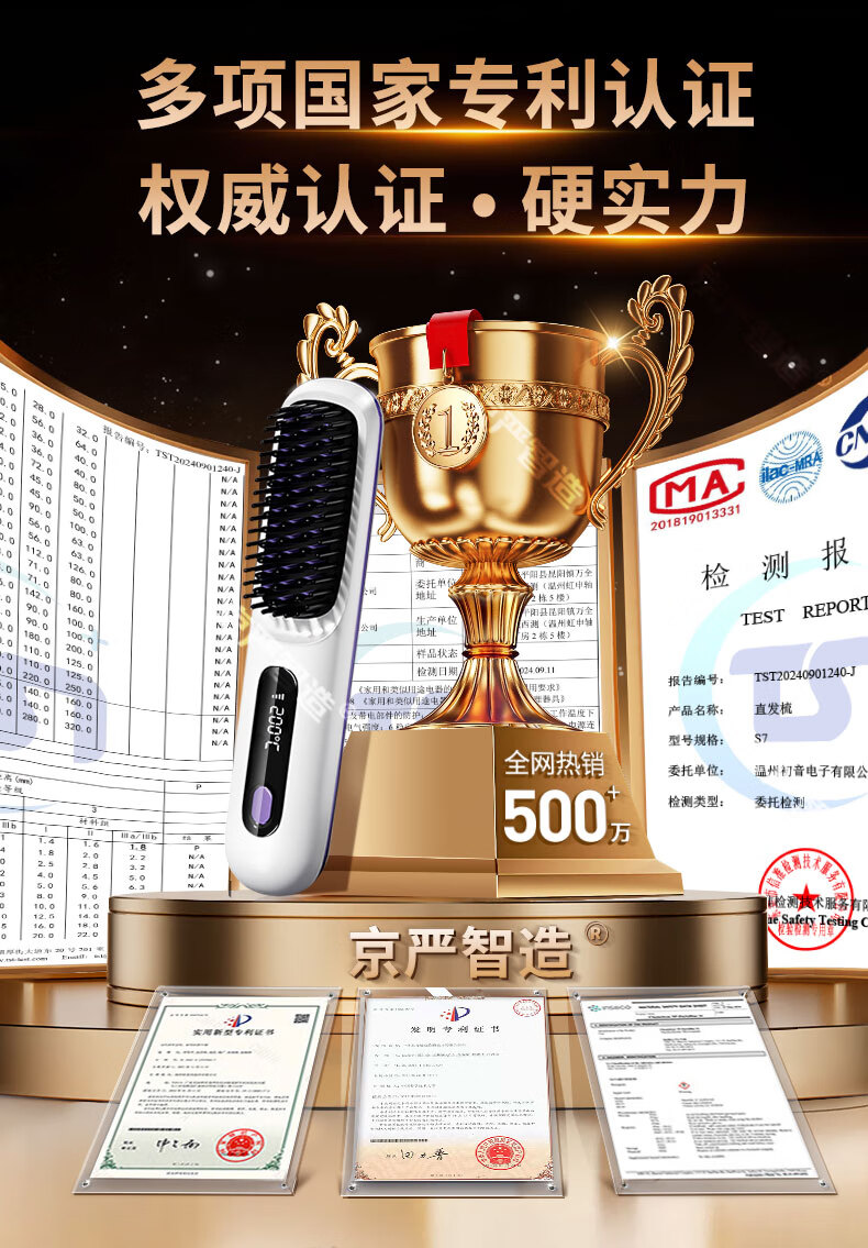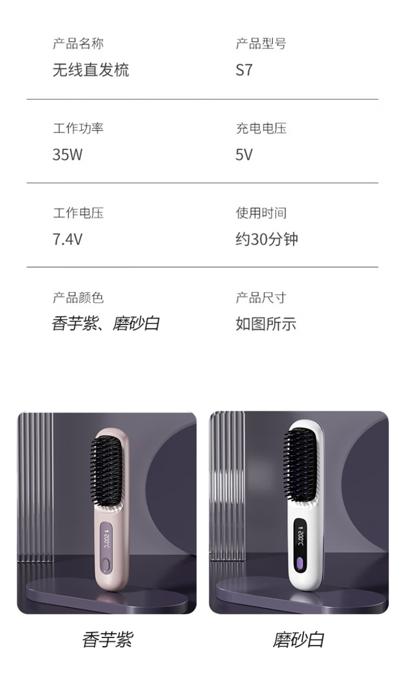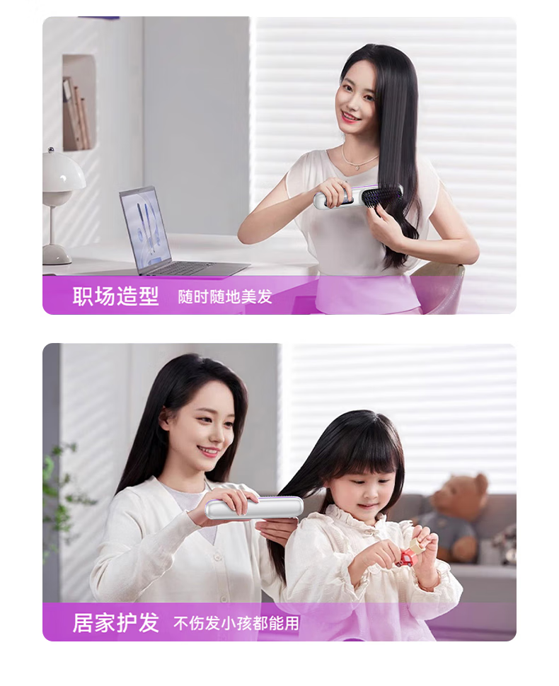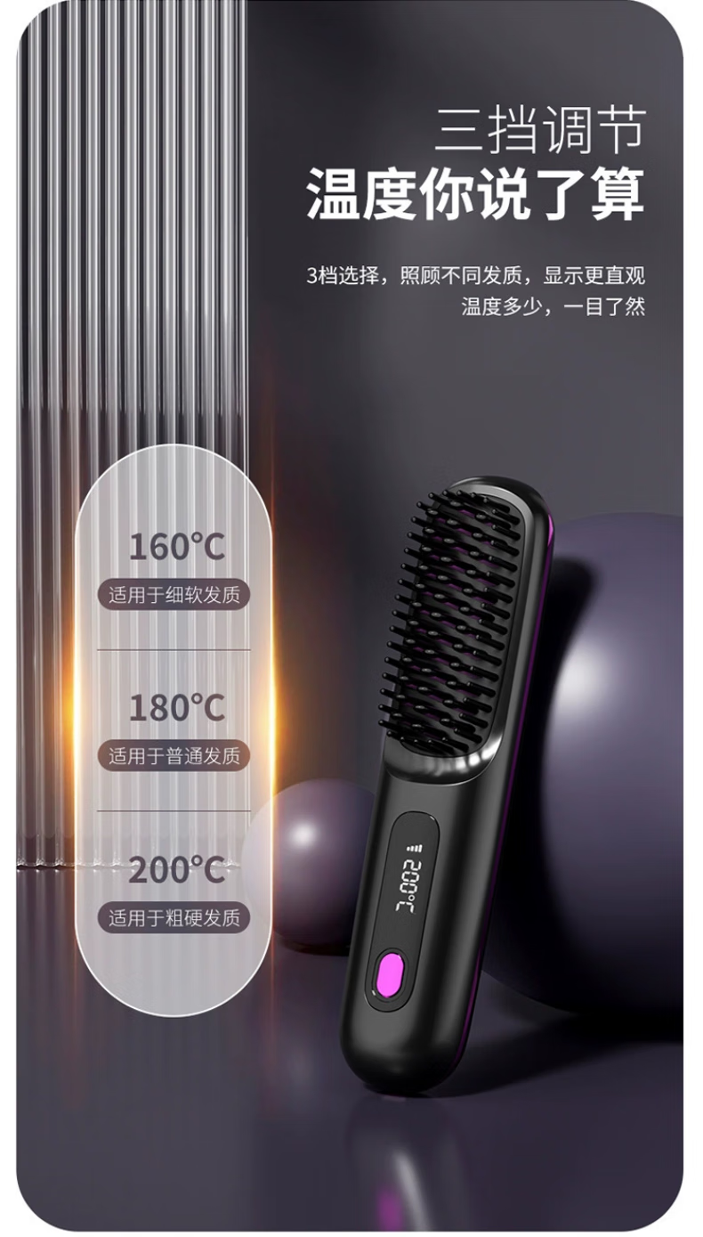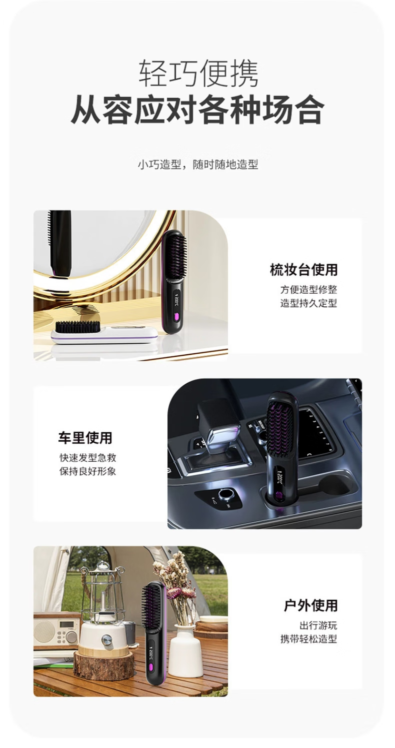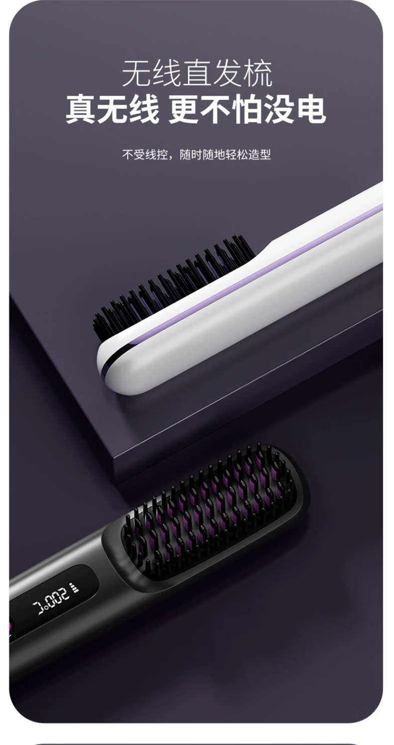 Jingyan selects good products, wireless hair straightening comb, negative ions do not damage hair, mini portable electric comb with inner buckle, fluffy curling and straightening for lazy people, dual-purpose short hair management tool for high skull, taro purple, 500 million negative ion hair care + dual-purpose curling and straightening, electric hair comb, birthday gift, gift to best friend, gift to wife, gift to girlfriend on Valentine's Day
