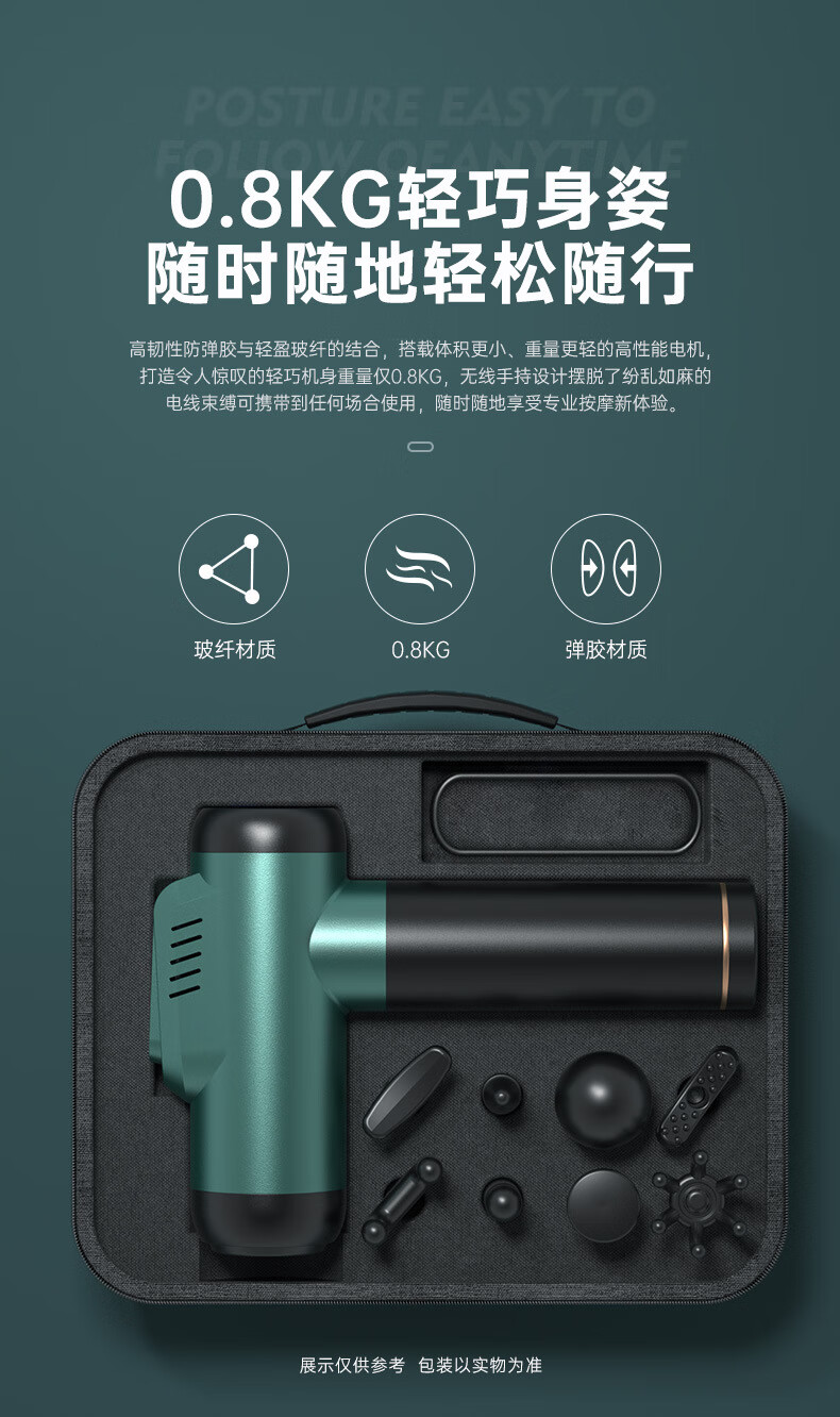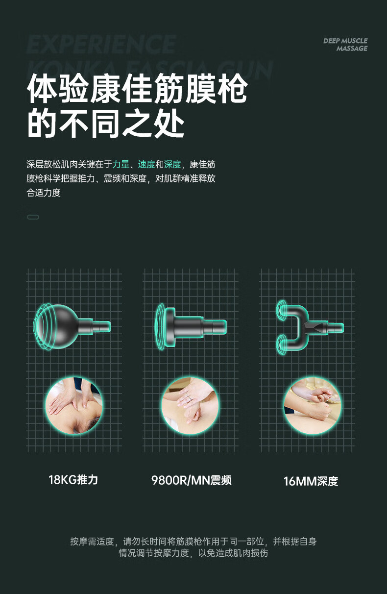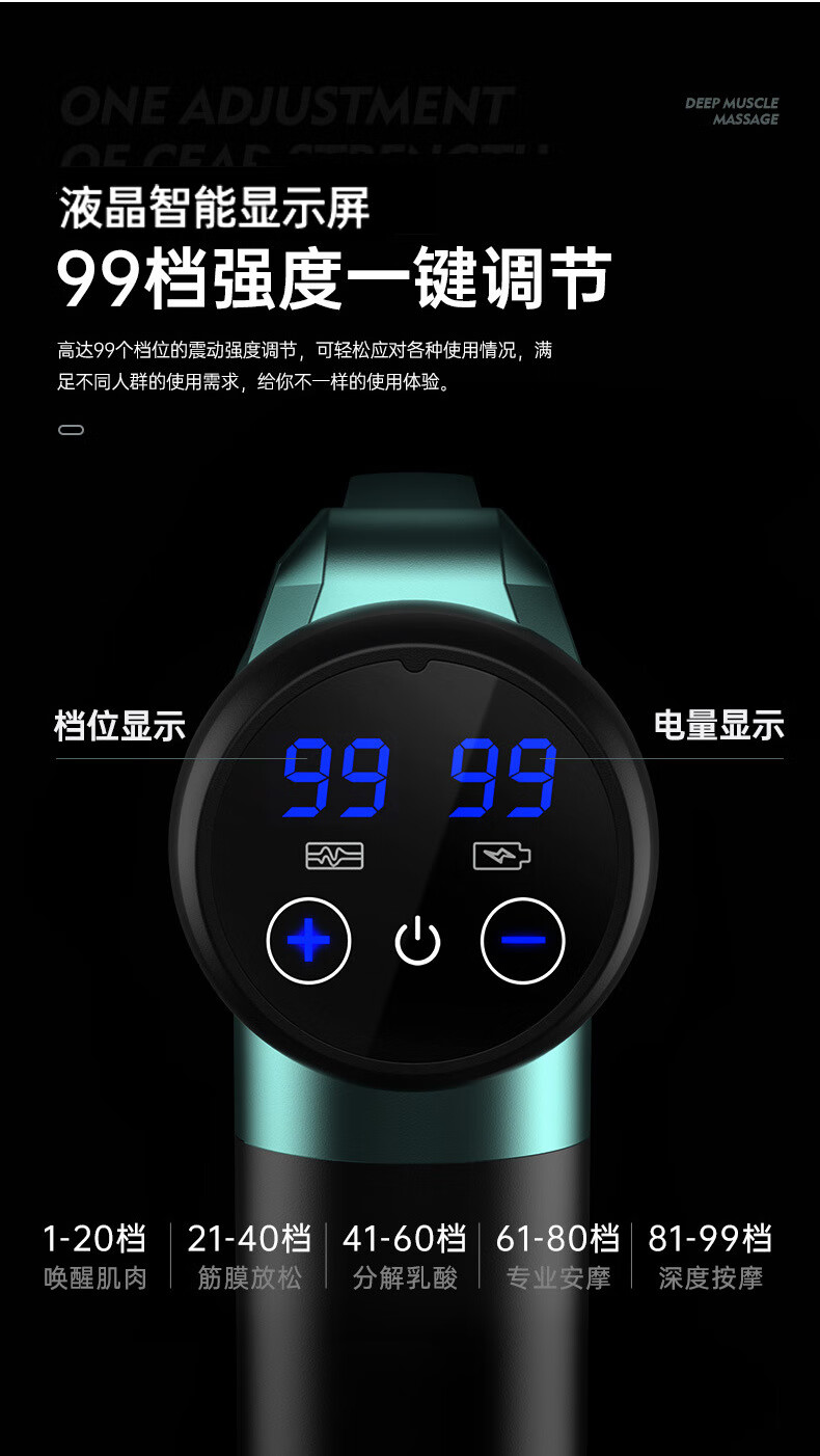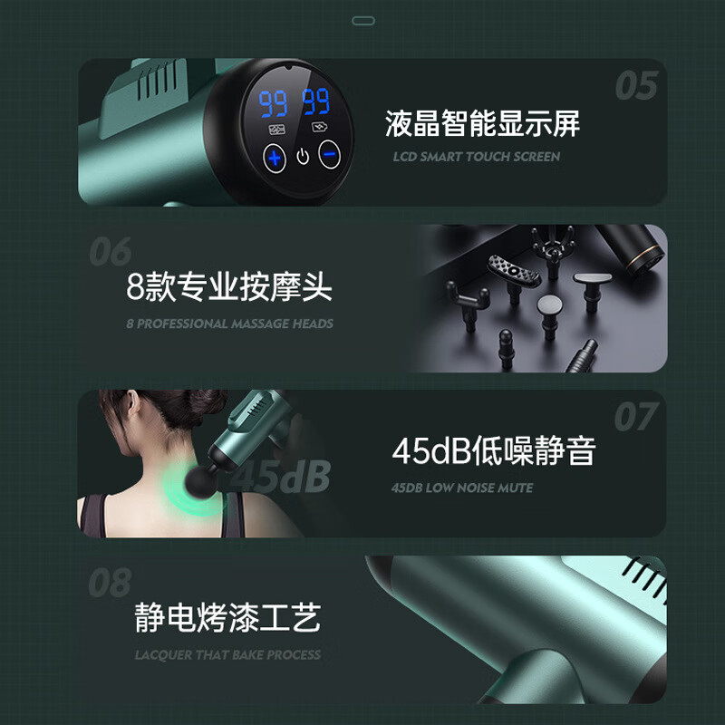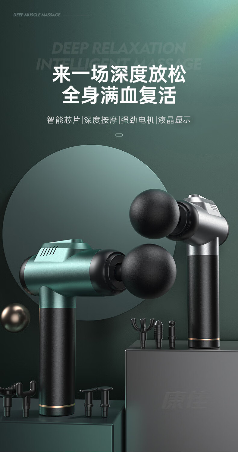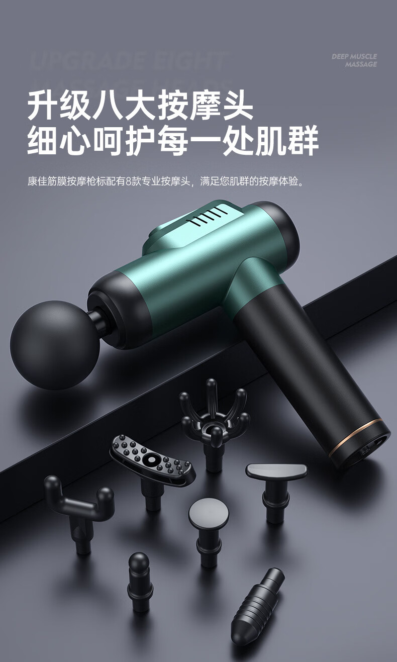 KONKA fascia gun muscle relaxation massager sports neck mask gun electric impact home fitness equipment fascia grab gray-6608 (99 gears + 8 heads + LCD screen + storage box)