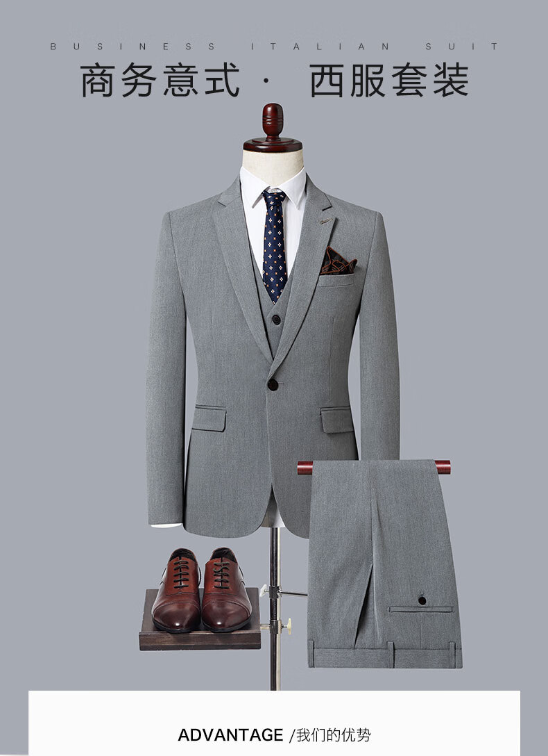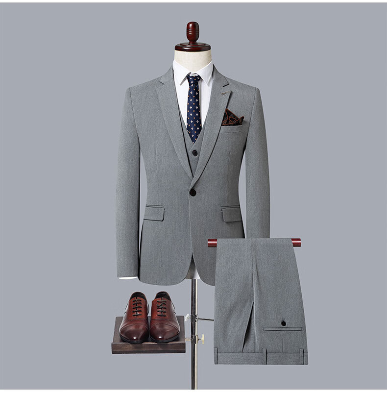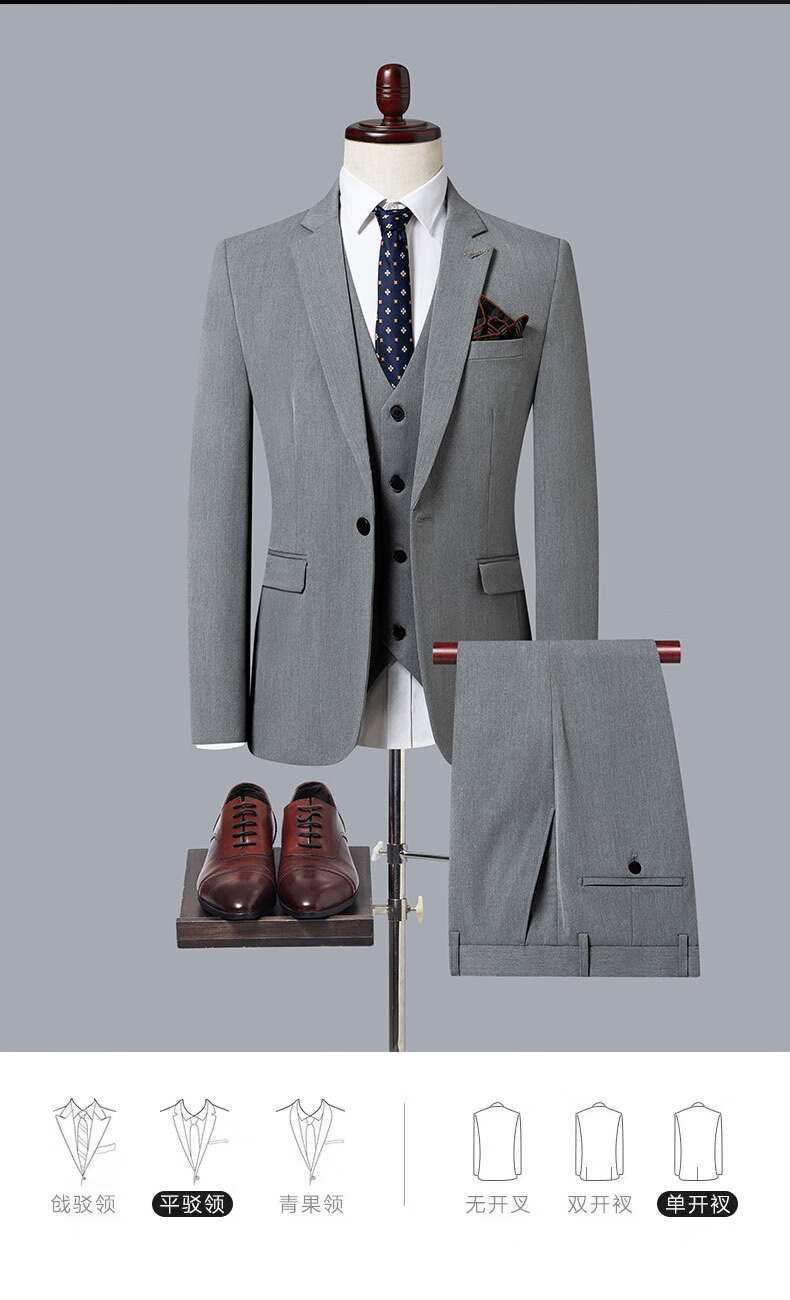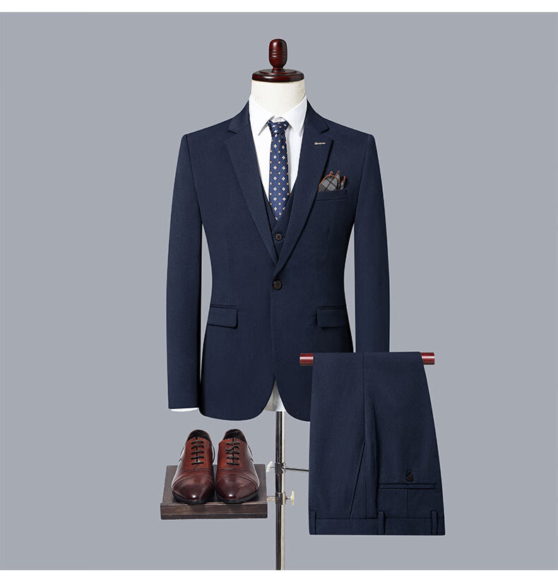 ROMON suit men's 2025 formal British business casual professional suit groom wedding dress slim Korean version Navy blue (suit + vest + trousers) XL