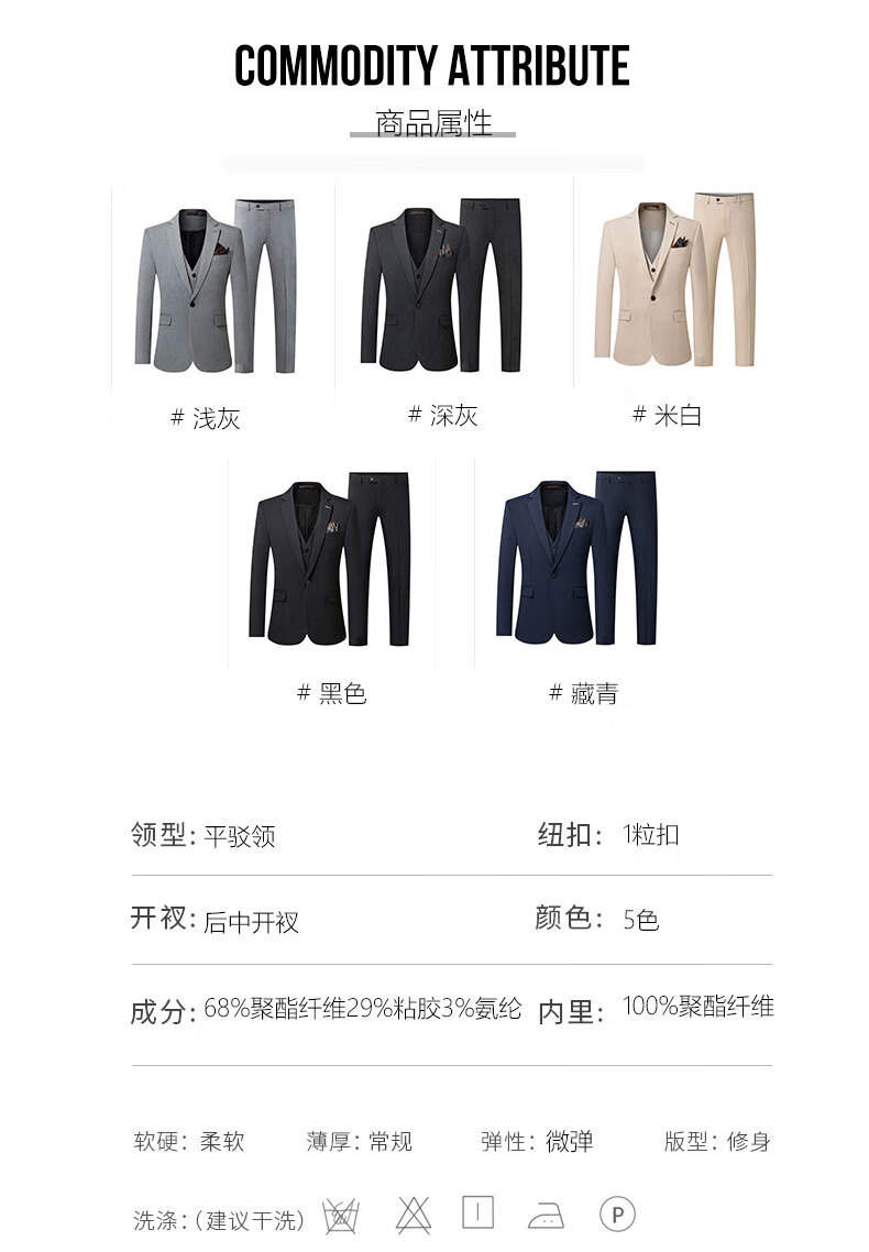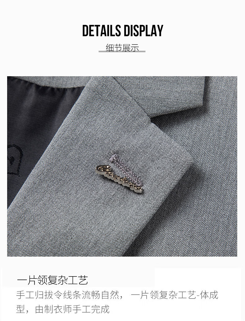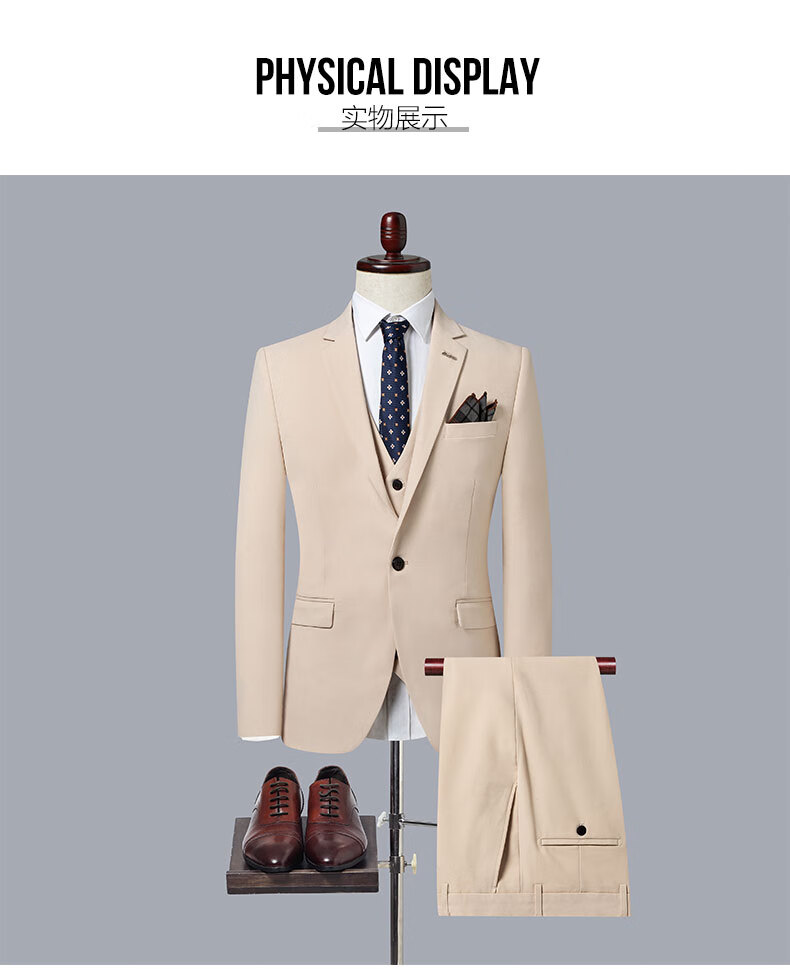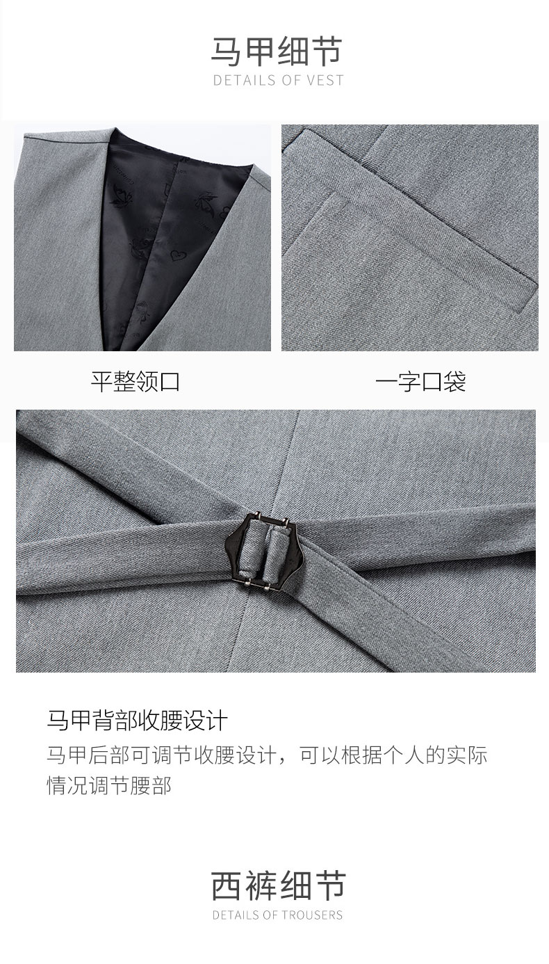 ROMON suit men's 2025 formal British business casual professional suit groom wedding dress slim Korean version Navy blue (suit + vest + trousers) XL