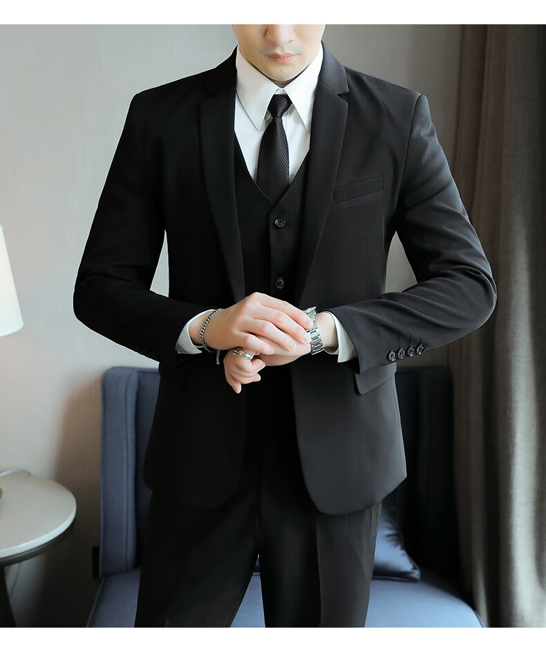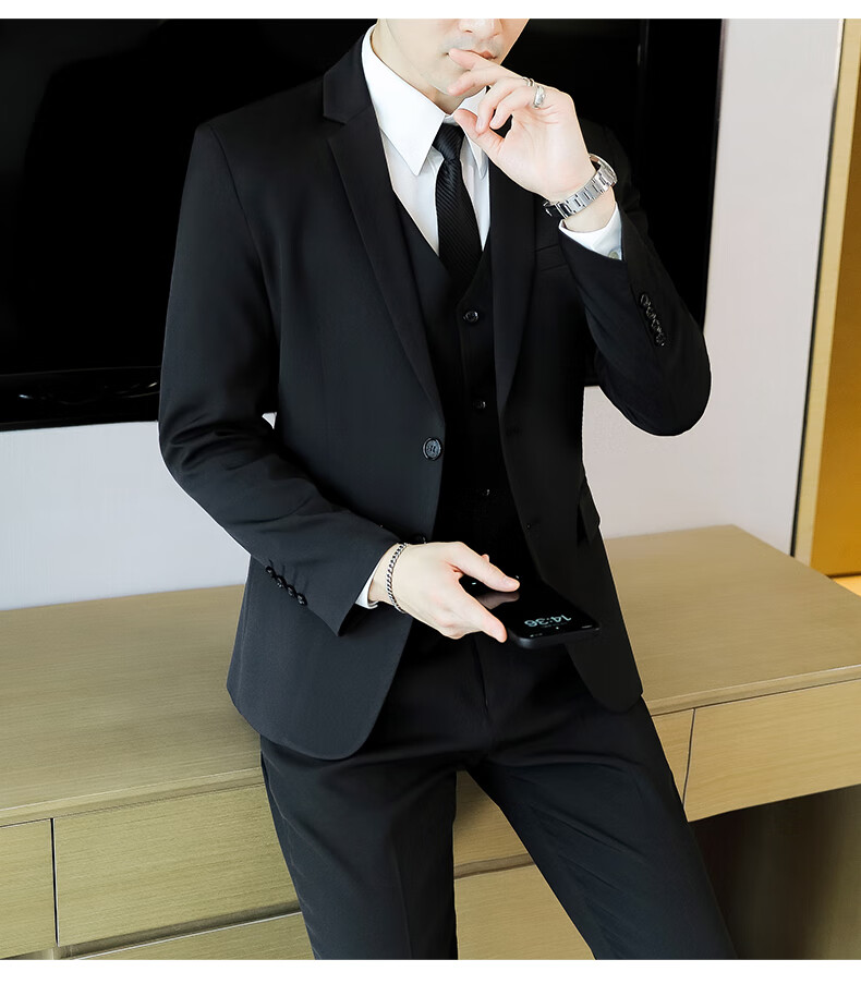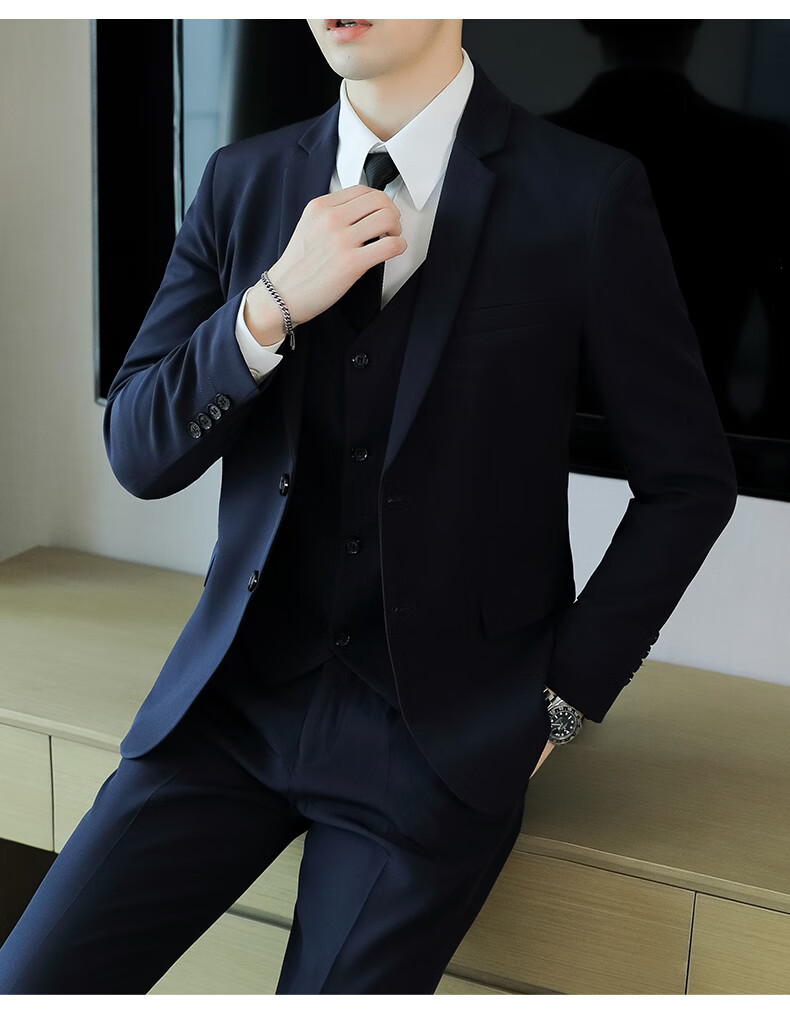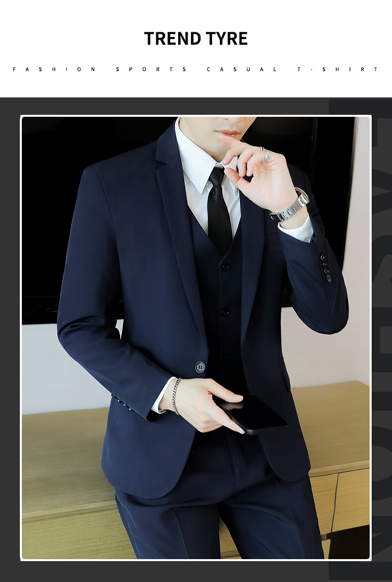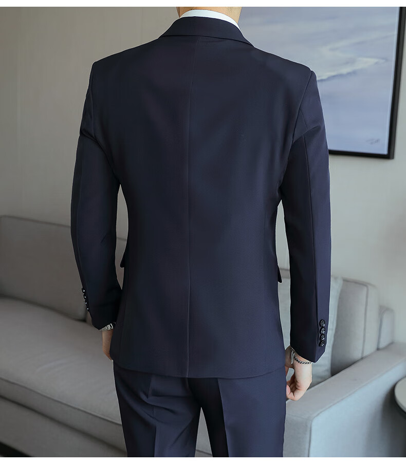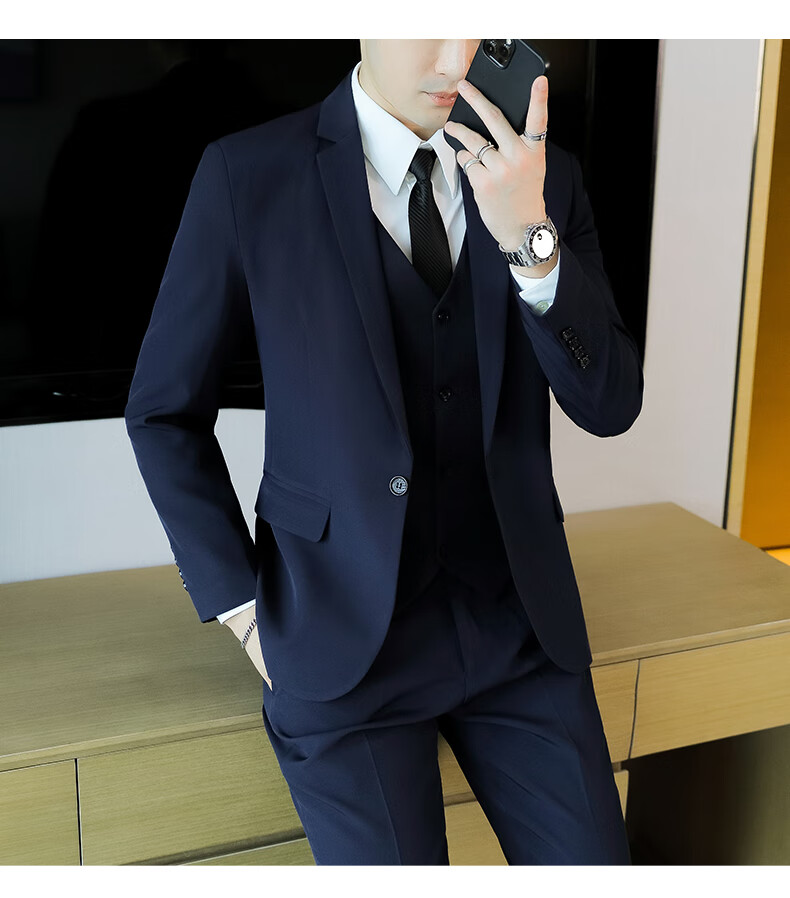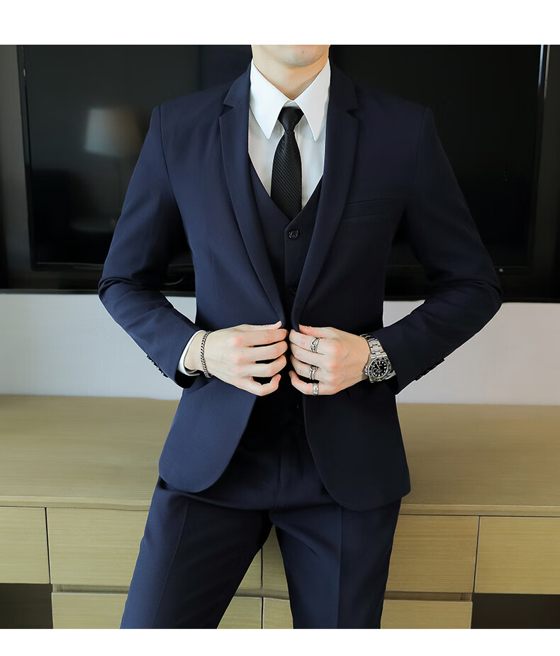 ROMON suit men's casual Korean style business professional formal three-piece suit slim fit wedding groomsmen and groom suit jacket two-button navy single suit jacket 3XL