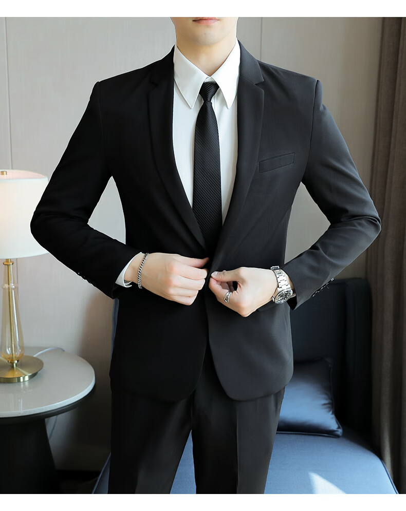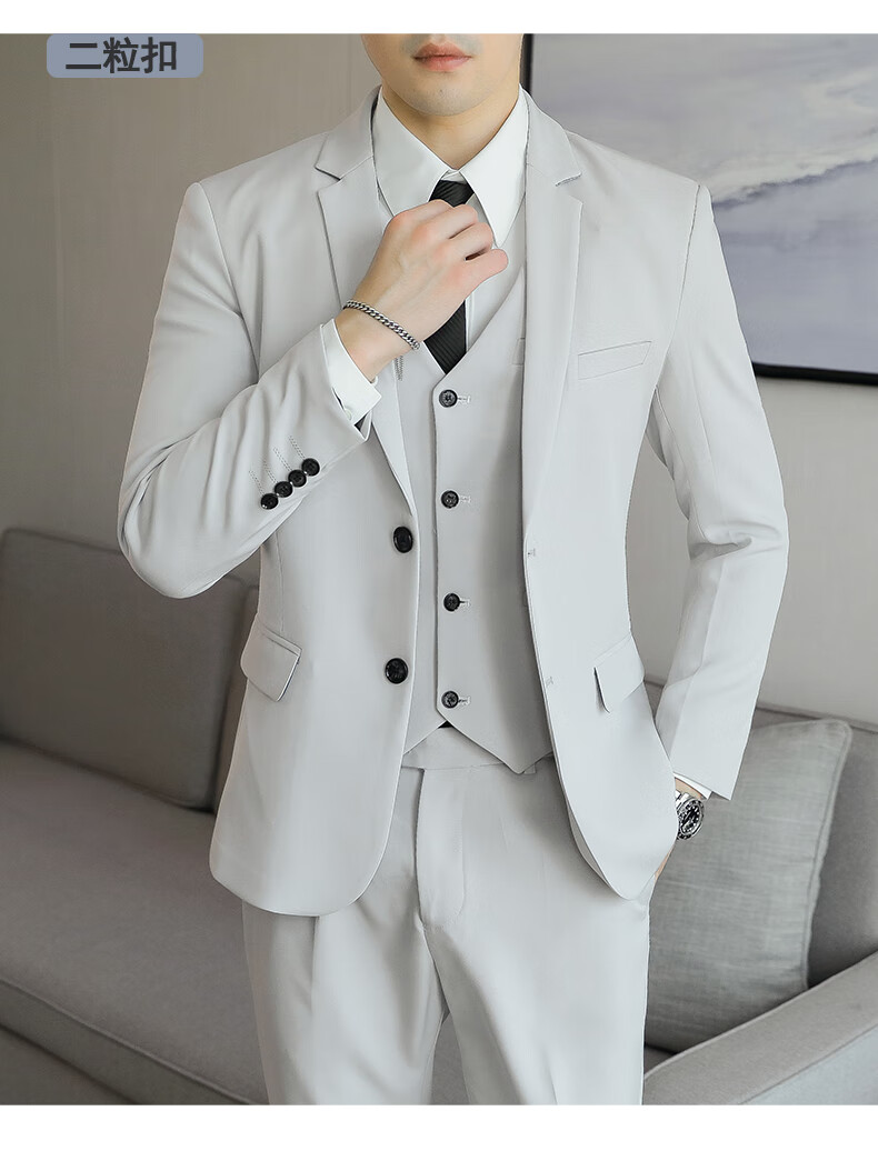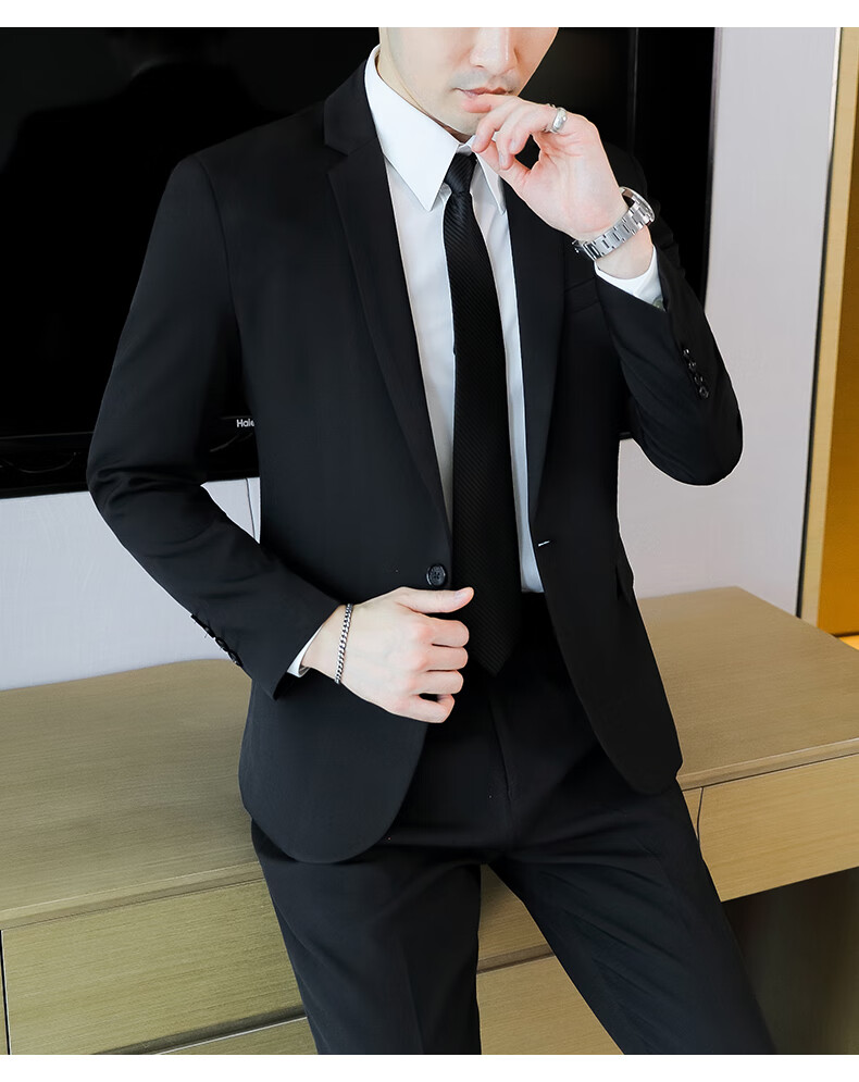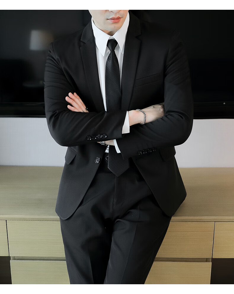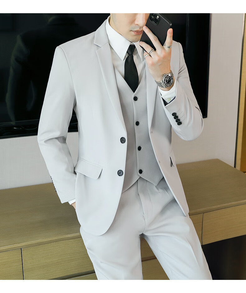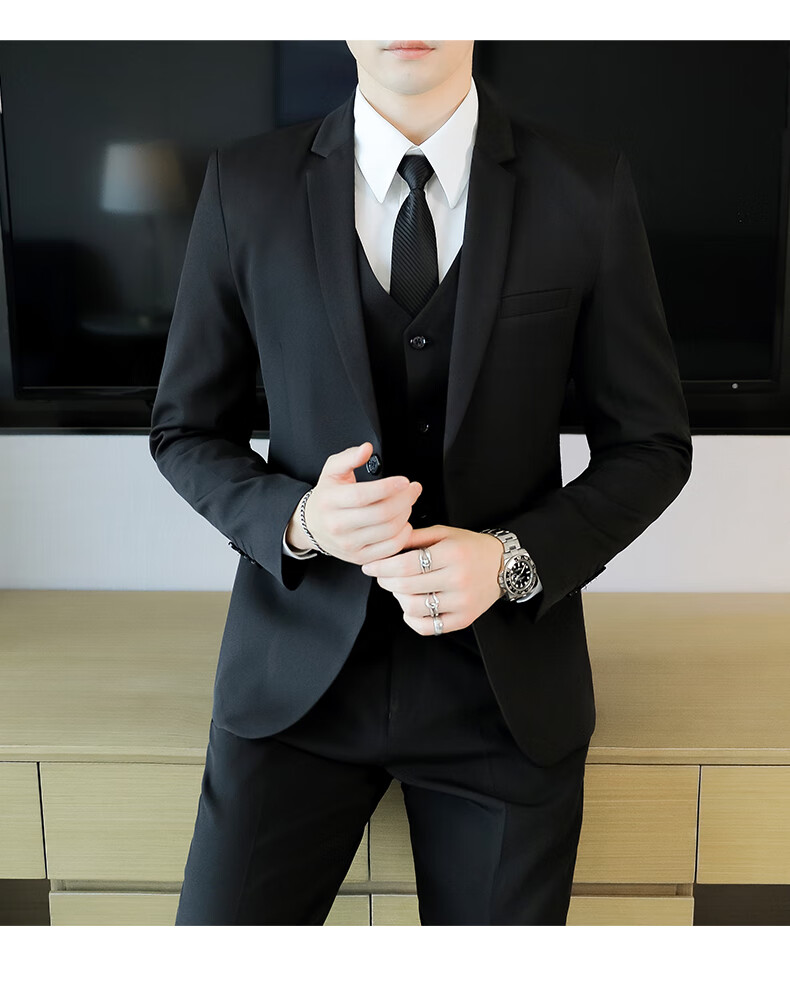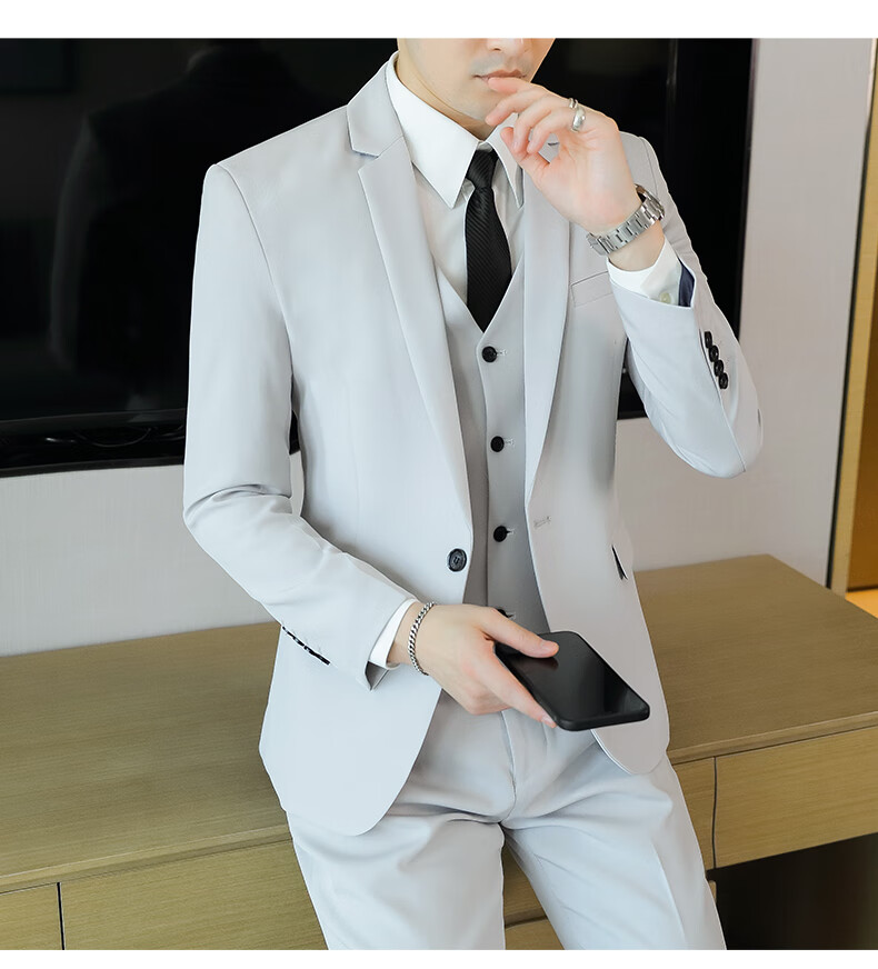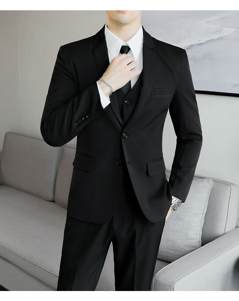 ROMON suit men's casual Korean style business professional formal three-piece suit slim fit wedding groomsmen and groom suit jacket two-button navy single suit jacket 3XL