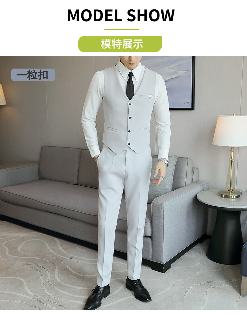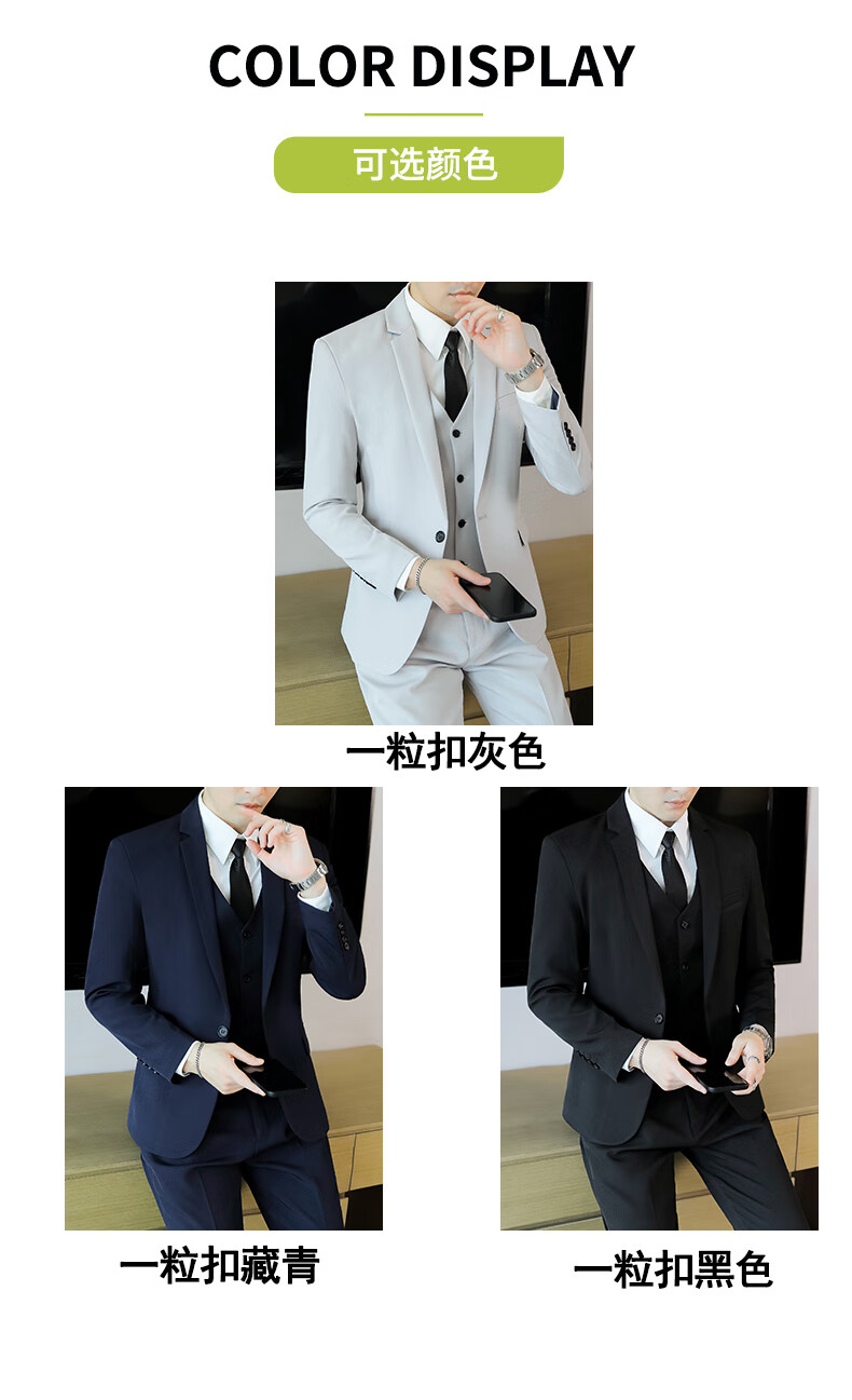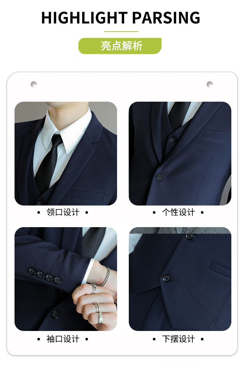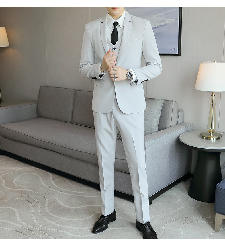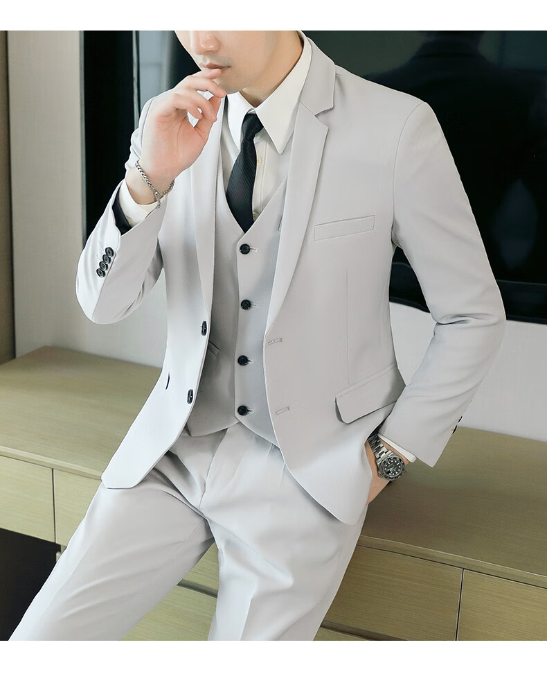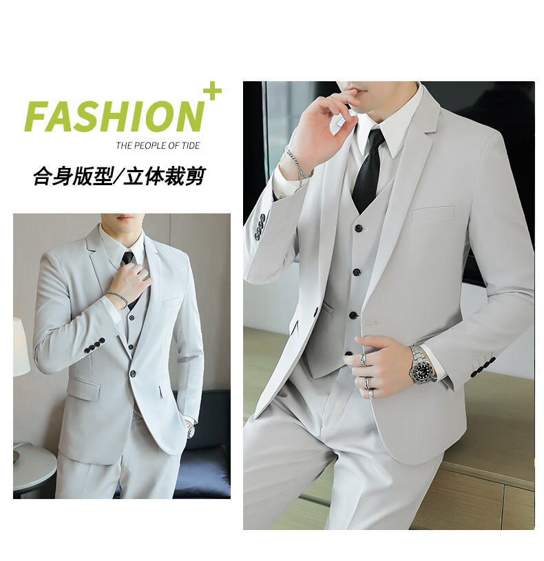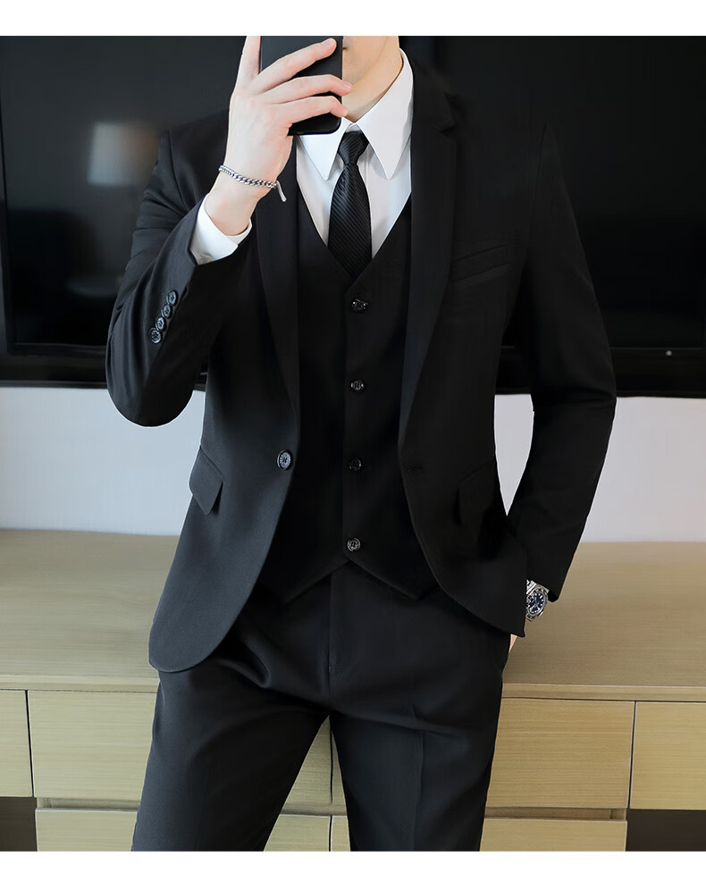 ROMON suit men's casual Korean style business professional formal three-piece suit slim fit wedding groomsmen and groom suit jacket two-button navy single suit jacket 3XL