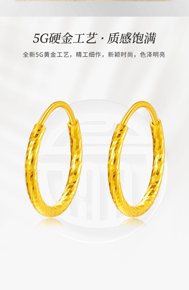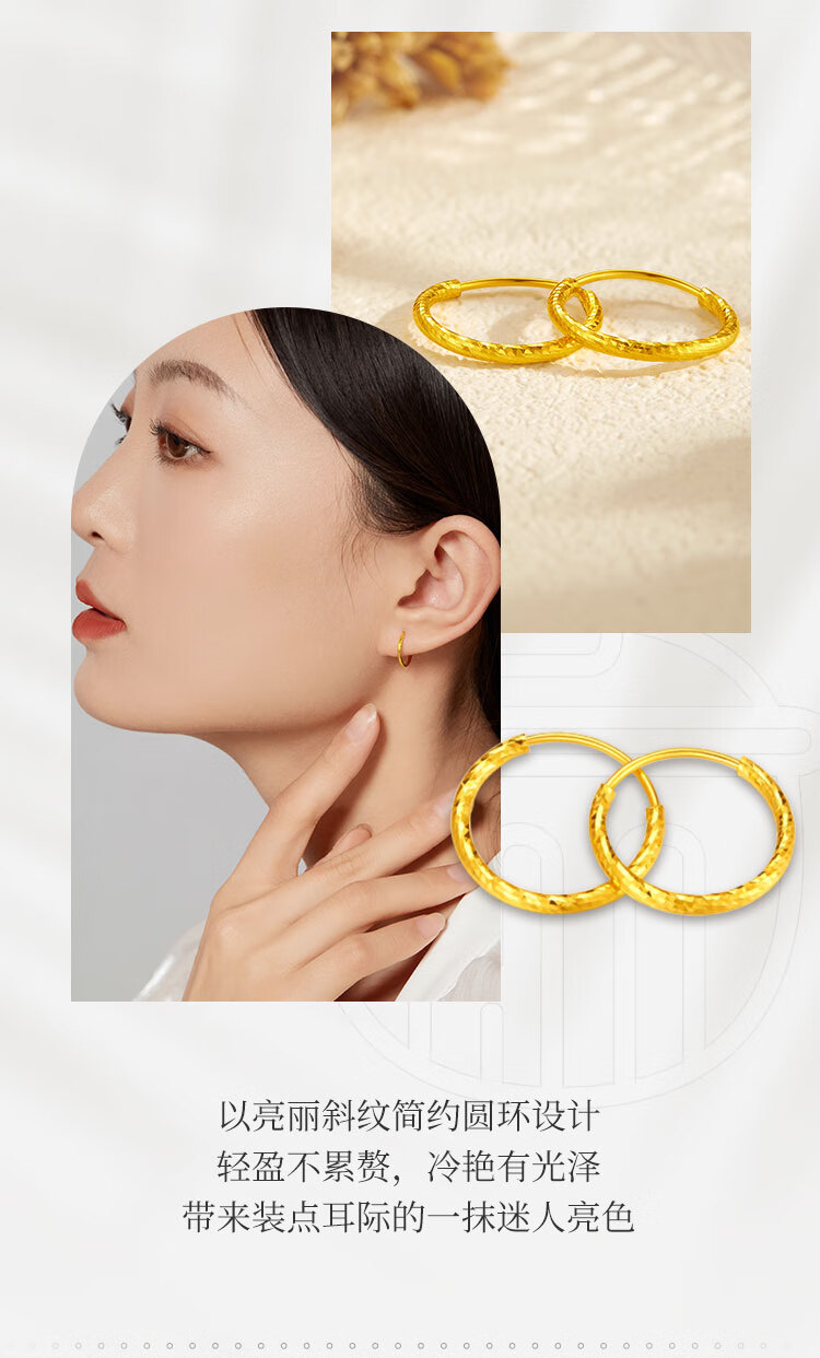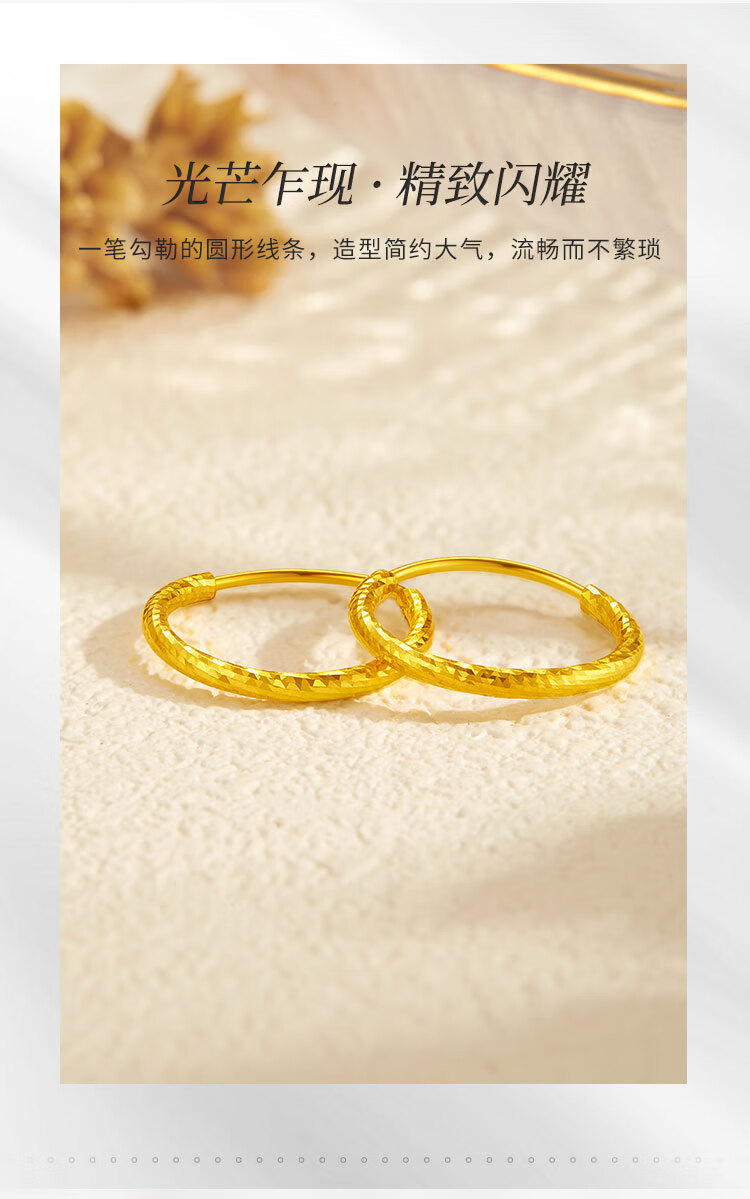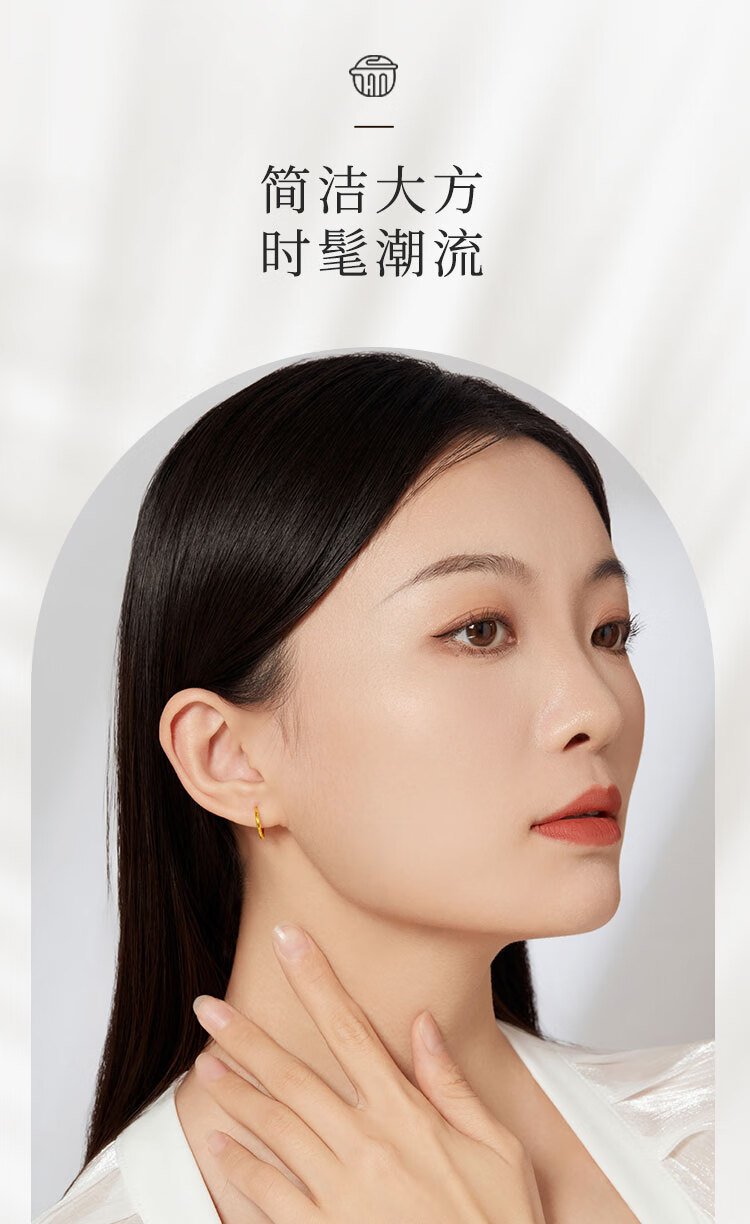 Laomiao gold earrings boutique 5G shiny twill aperture solid gold earrings as a birthday gift for girlfriend and wife, about 0.9g