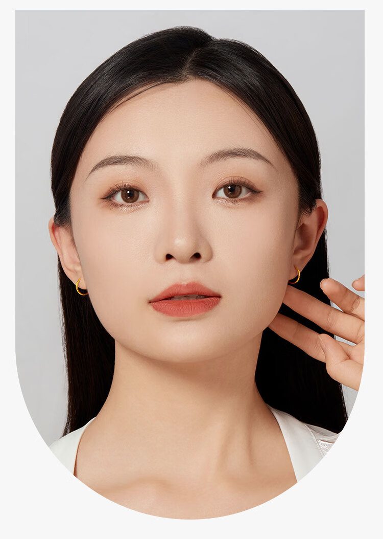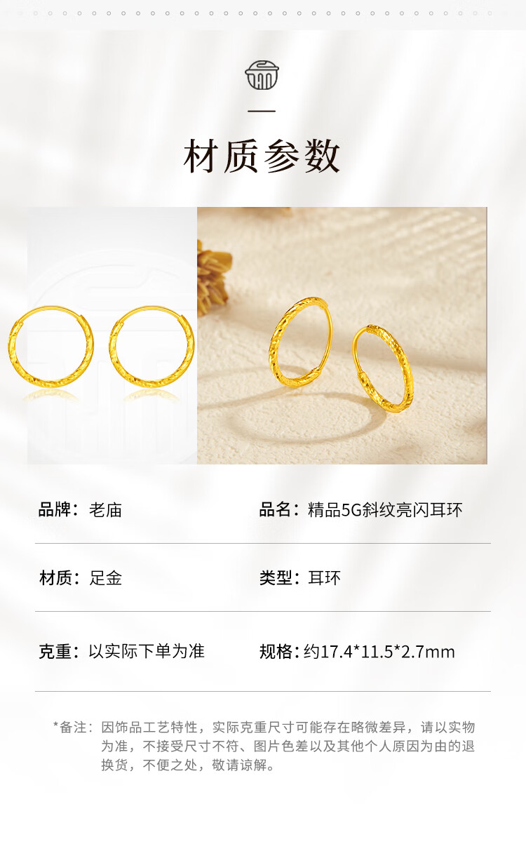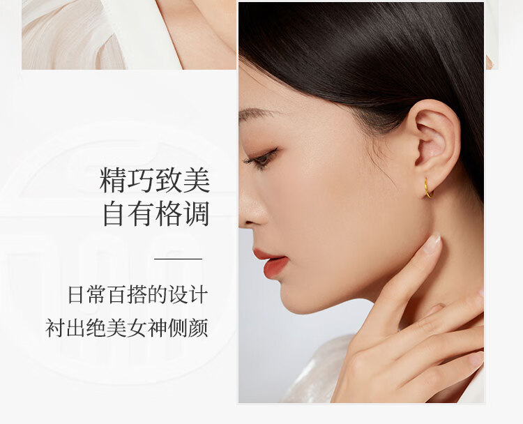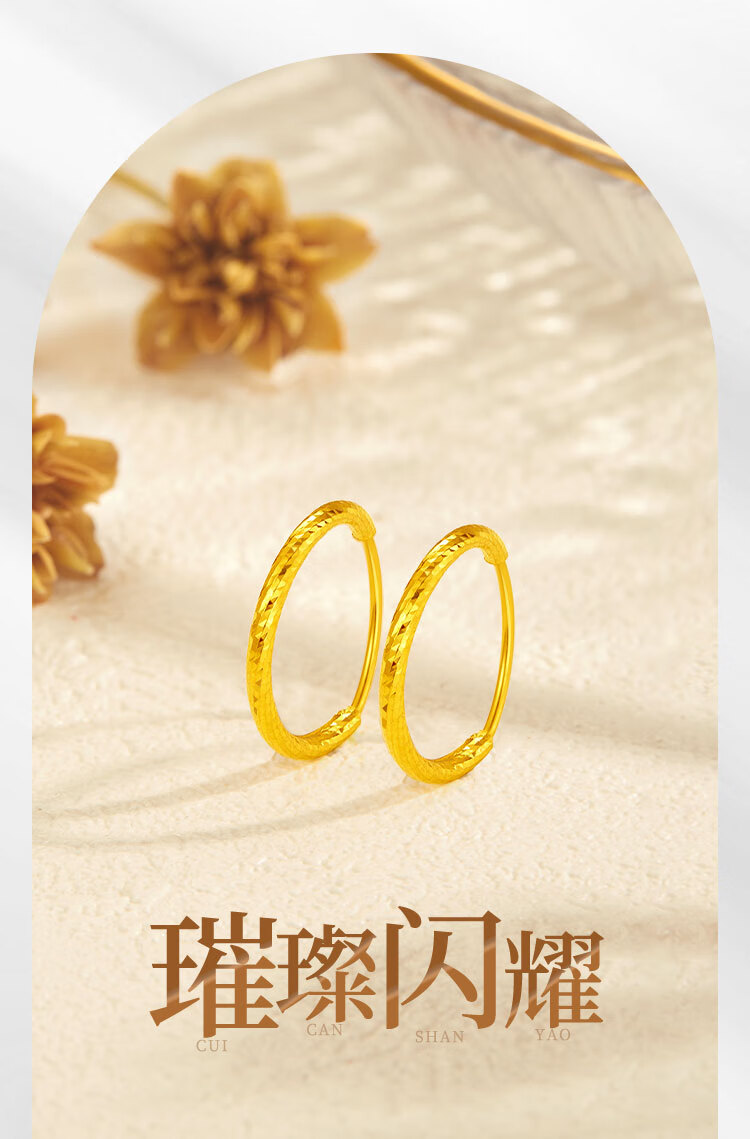 Laomiao gold earrings boutique 5G shiny twill aperture solid gold earrings as a birthday gift for girlfriend and wife, about 0.9g
