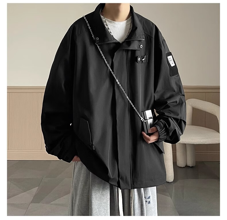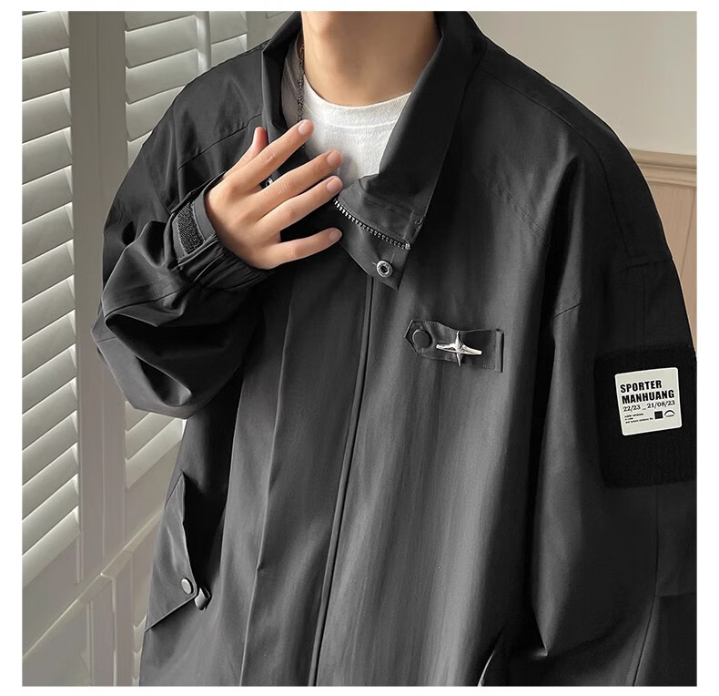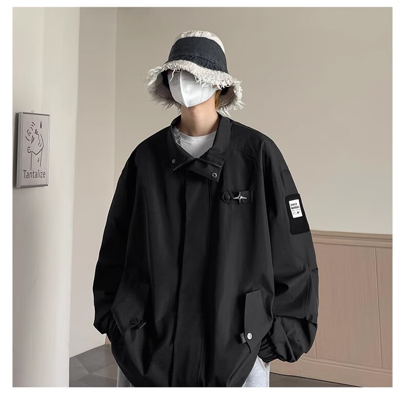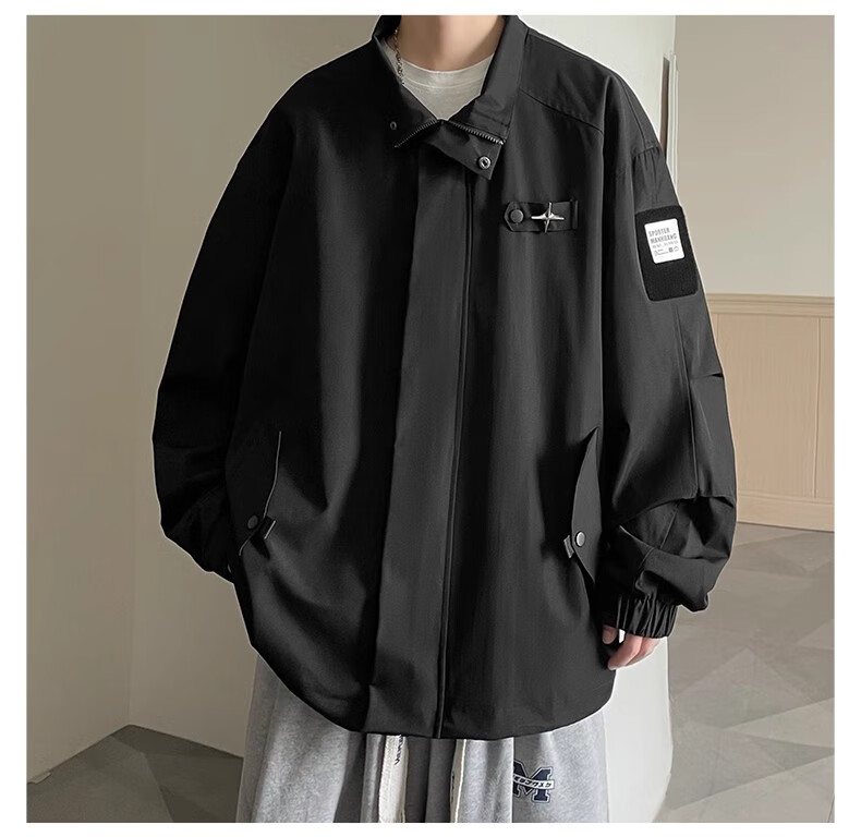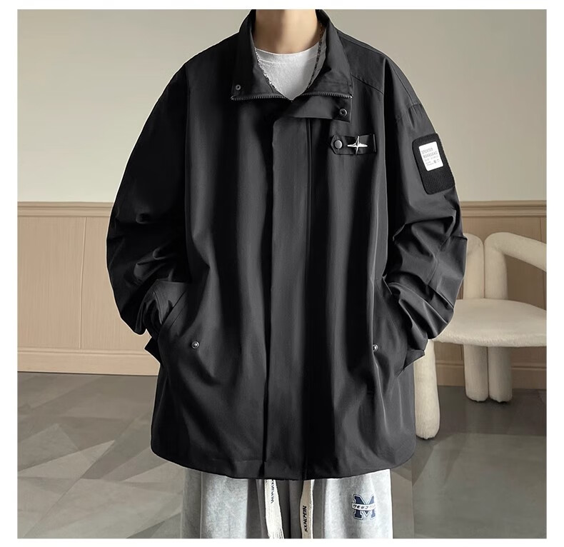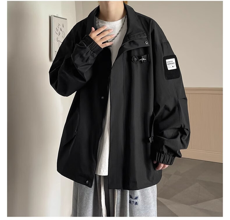Yiran Presents Jacket Men's Spring and Autumn American Work Wear, Handsome Youth Casual Loose Lapel Loose Personality Versatile Men's Jacket Black XL Recommended 115-140 Jin Jin equals 0.5 kg