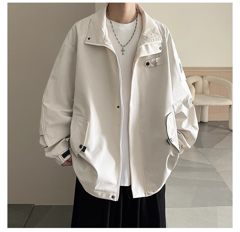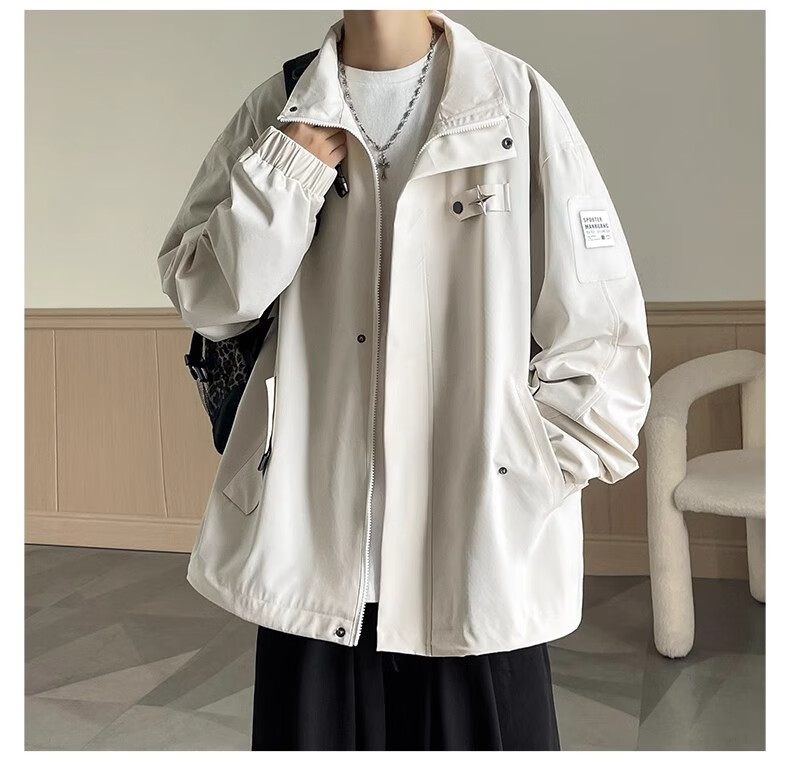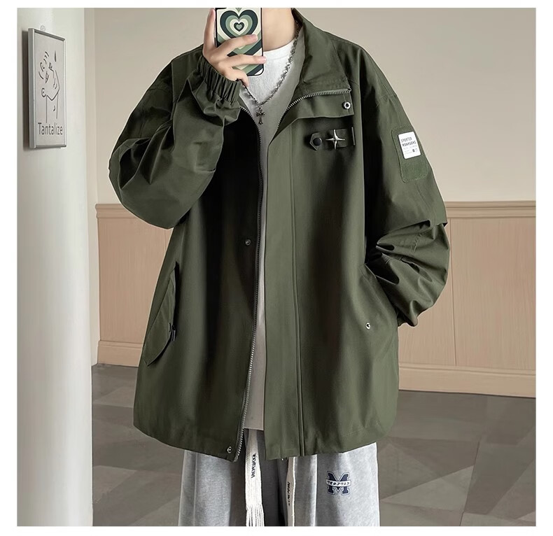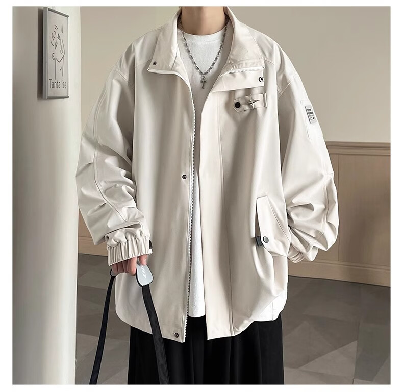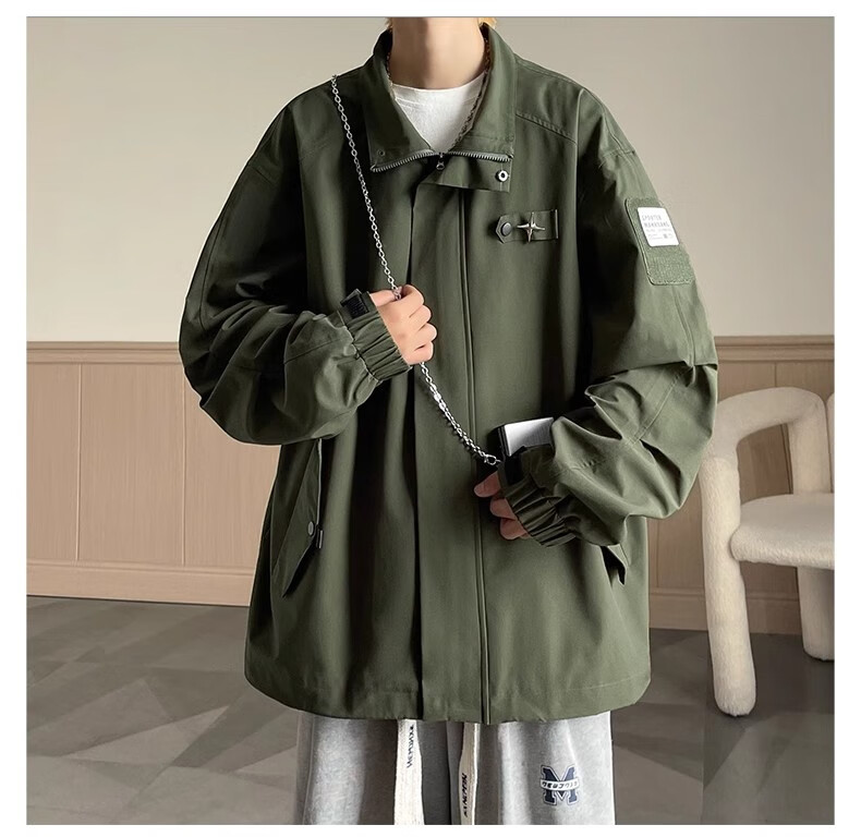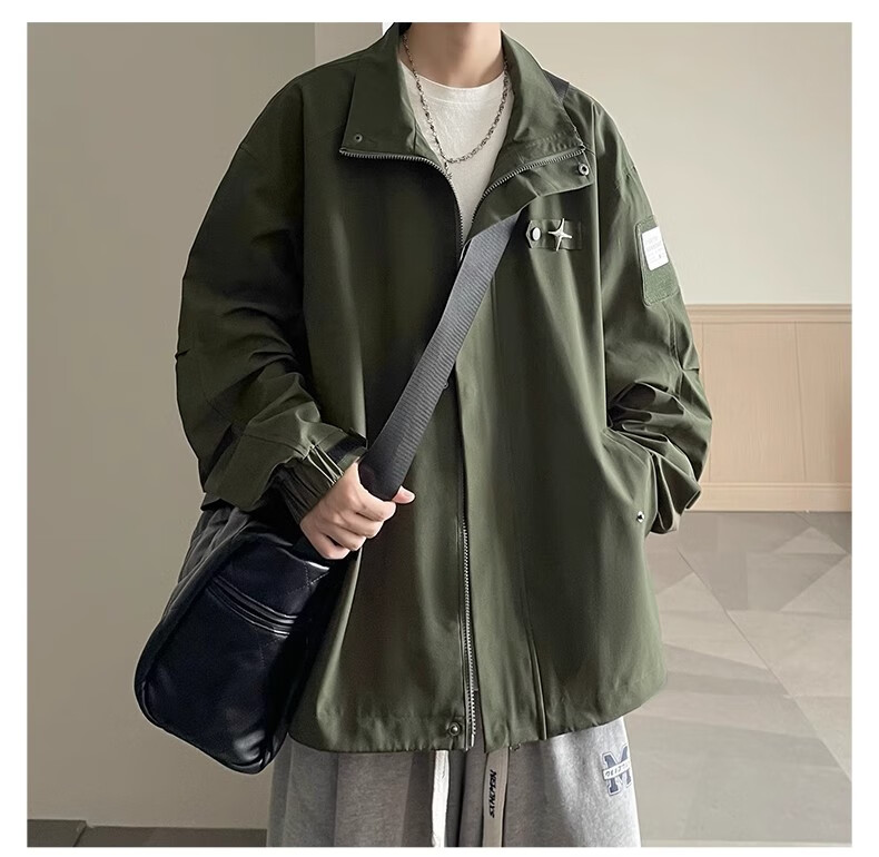 Yiran Presents Jacket Men's Spring and Autumn American Work Wear, Handsome Youth Casual Loose Lapel Loose Personality Versatile Men's Jacket Black XL Recommended 115-140 Jin Jin equals 0.5 kg