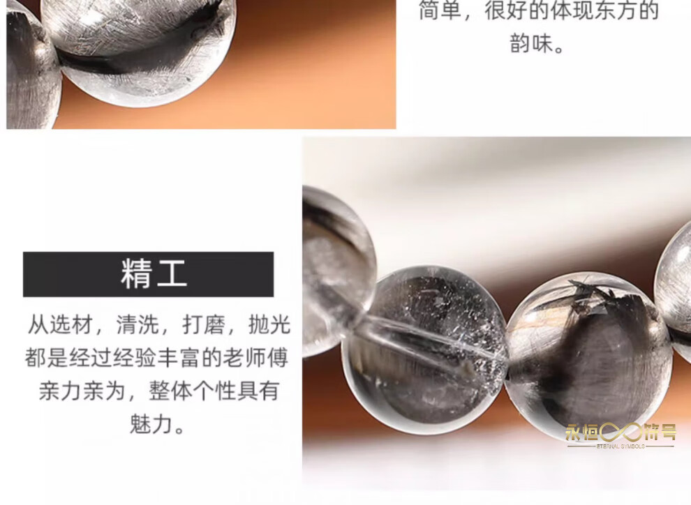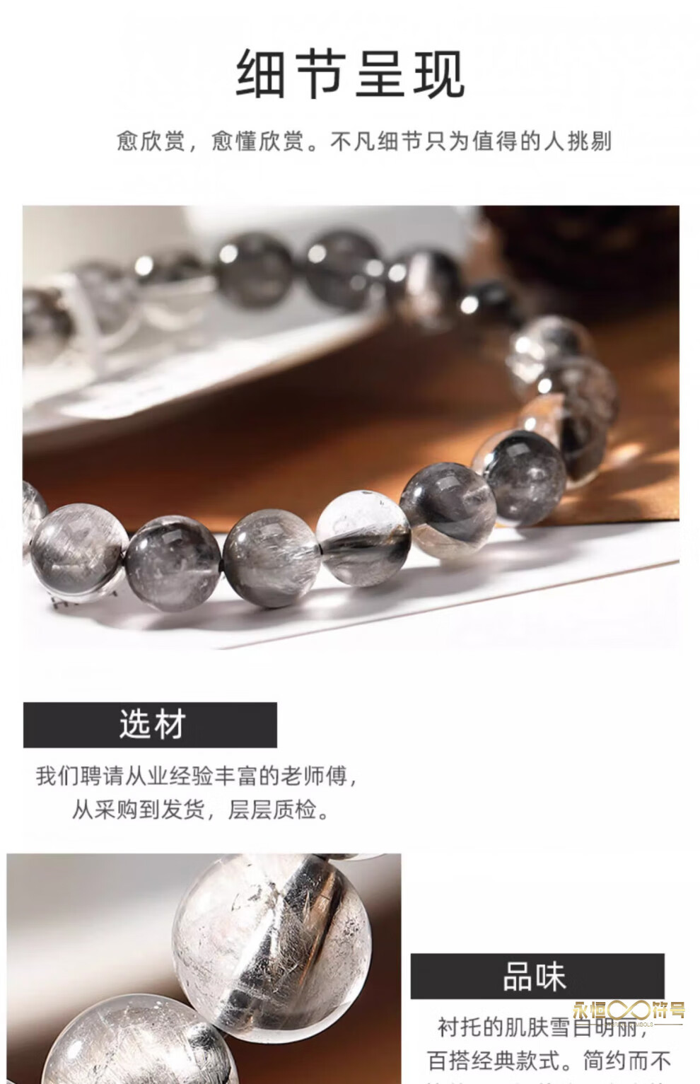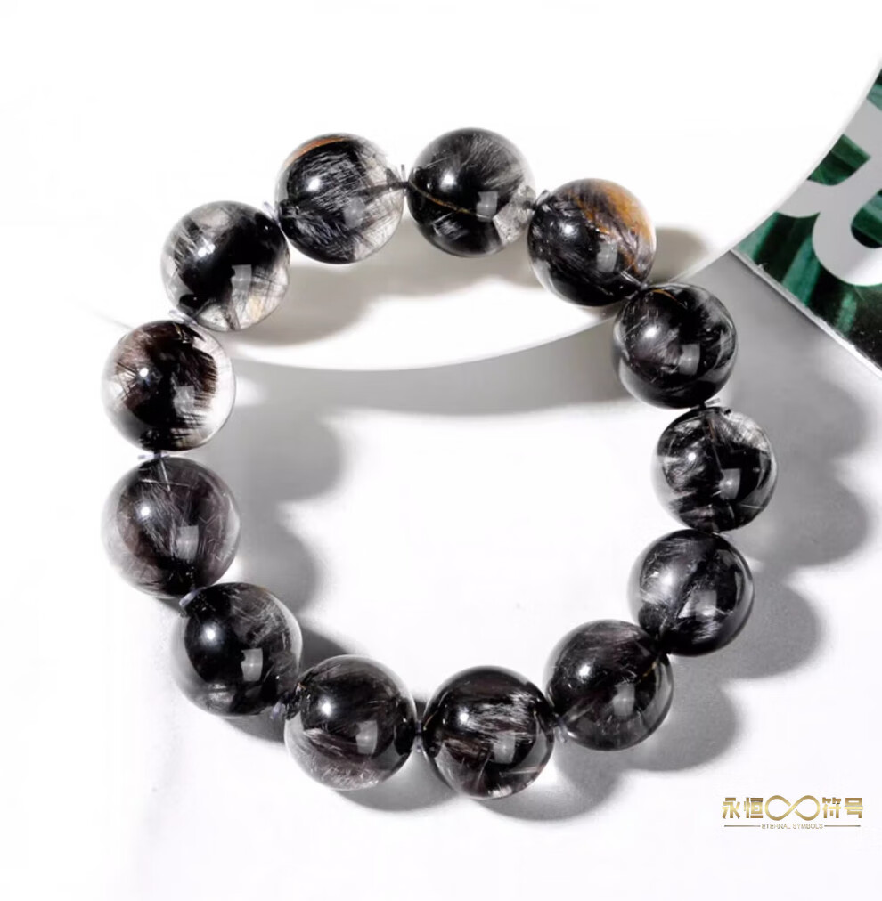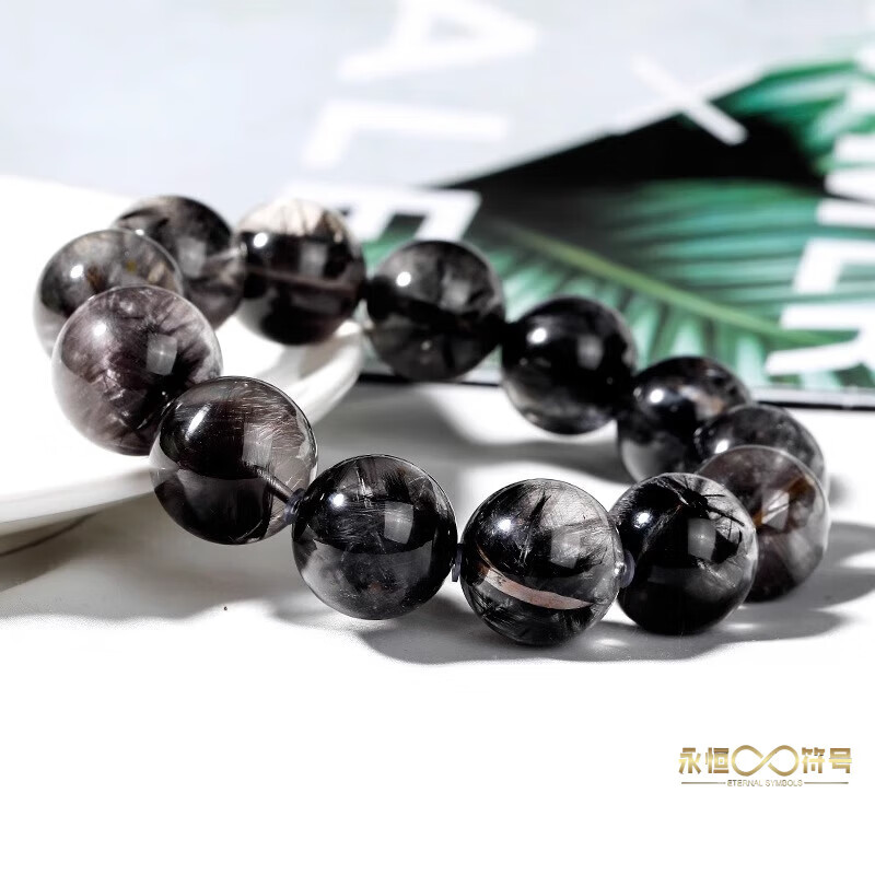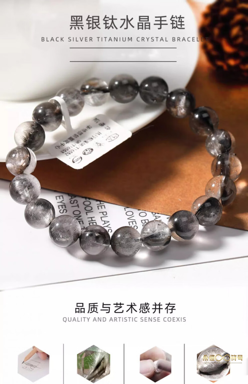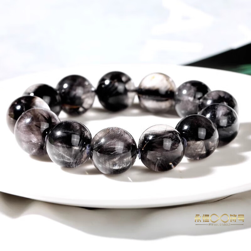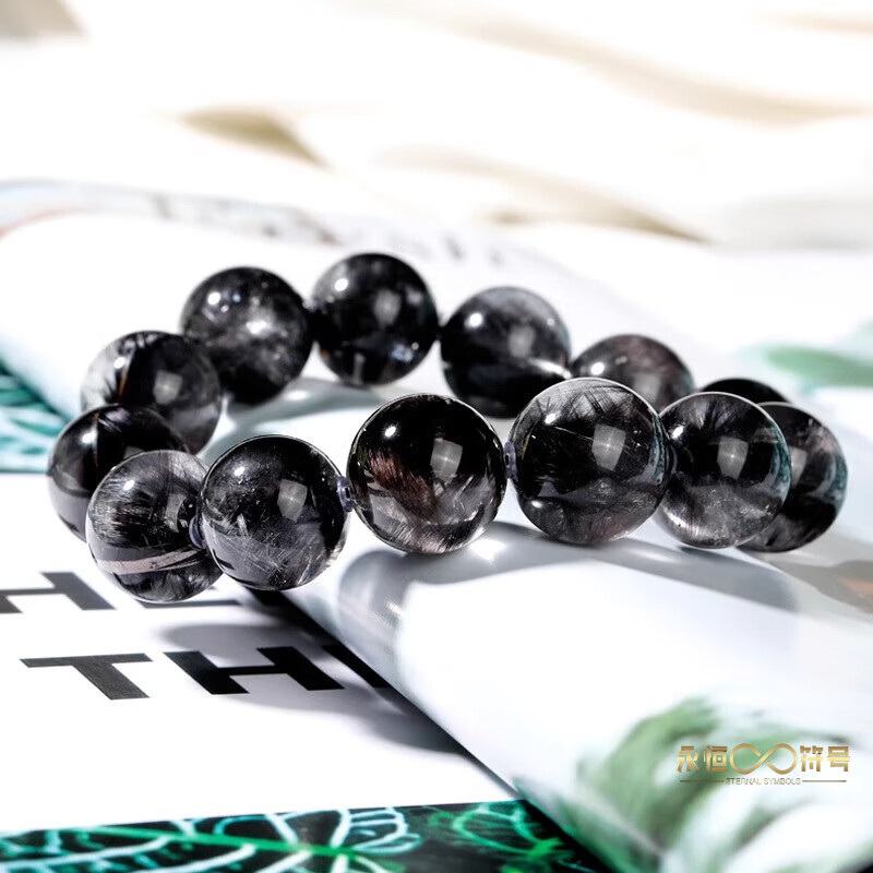 Eternal symbol light luxury collection grade natural black silver titanium crystal bracelet black warrior dragonfly hair bracelet female black hair crystal birthday gift collection grade black silver titanium-20mm