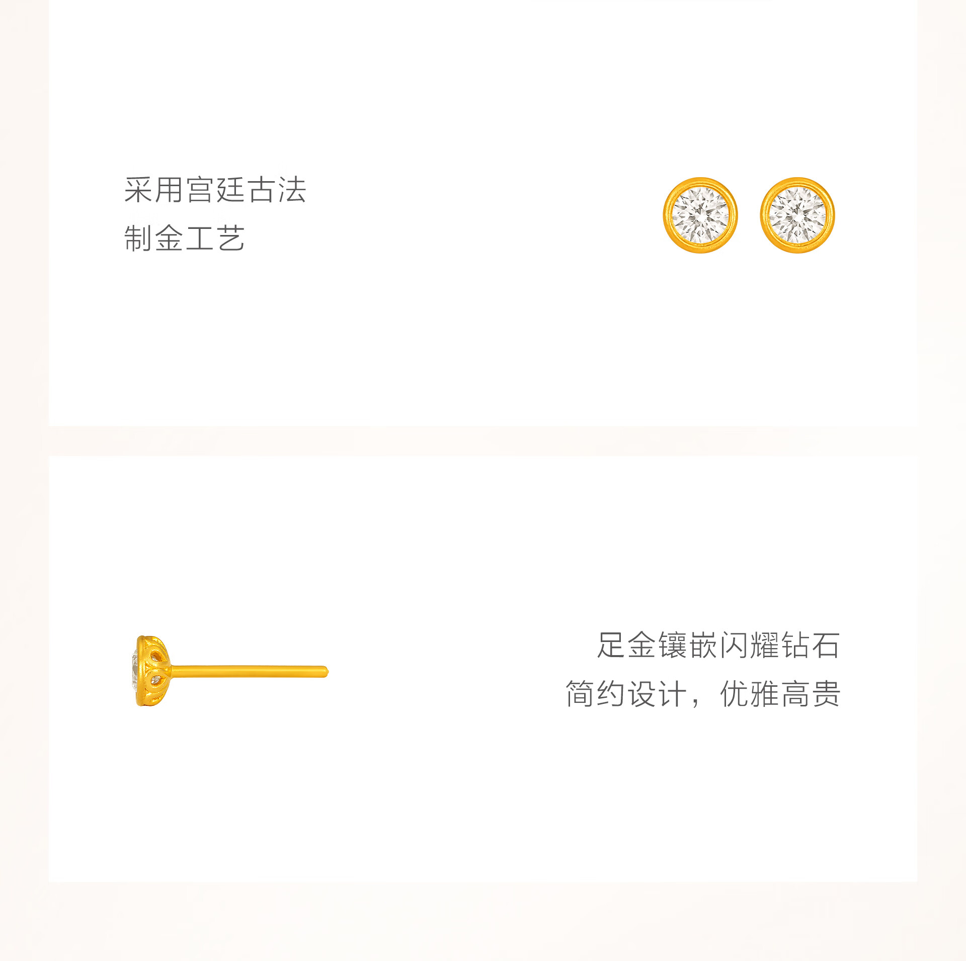 Laopu Gold Ancient Method Handmade Pure Gold Earrings and Gold Diamond Earrings. A pair weighs about 1.2g (including rubber pads)