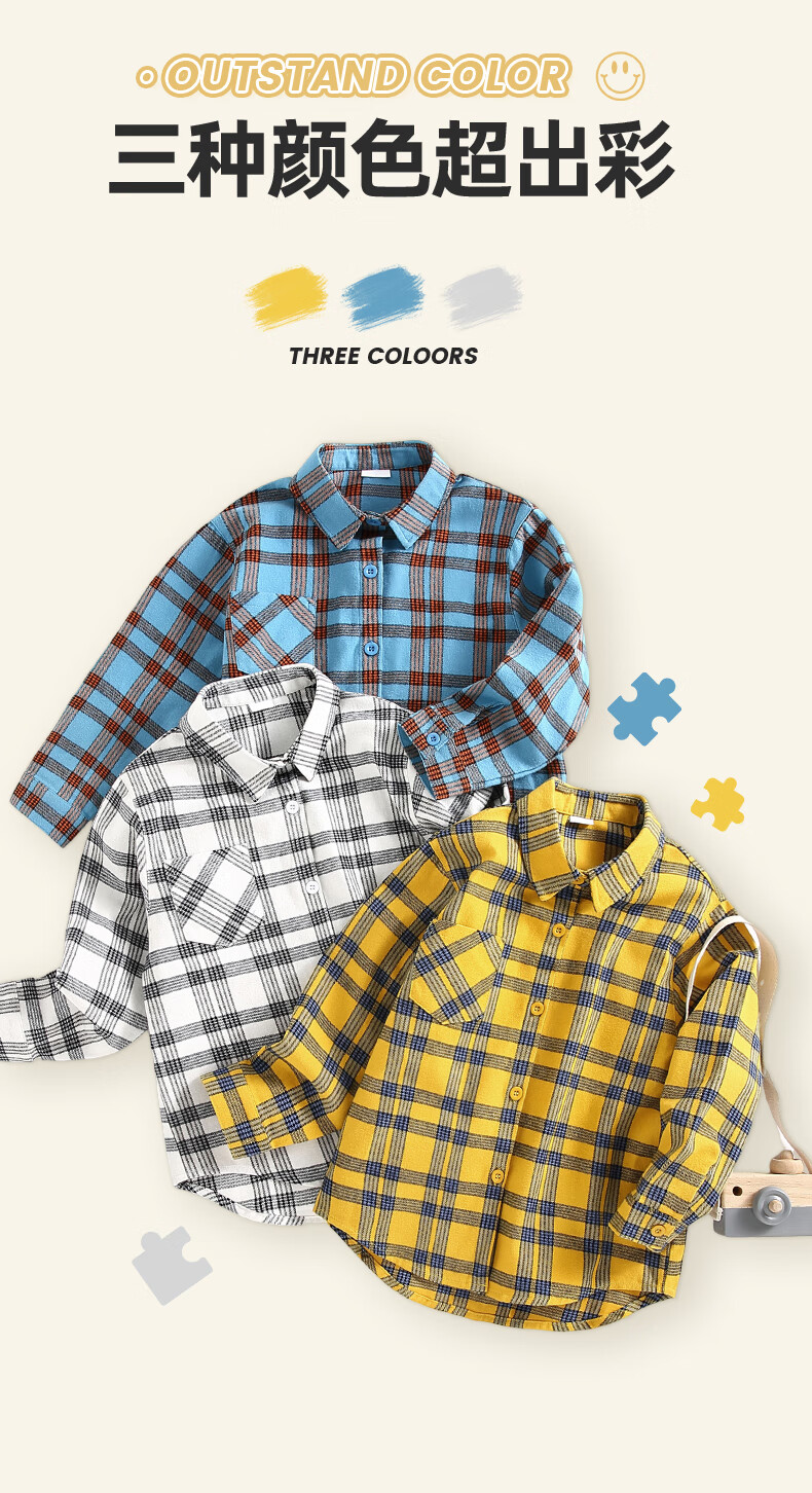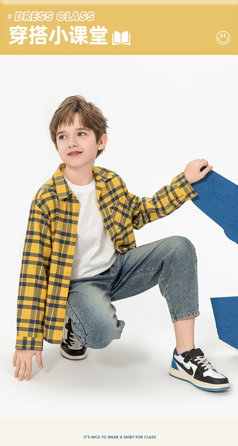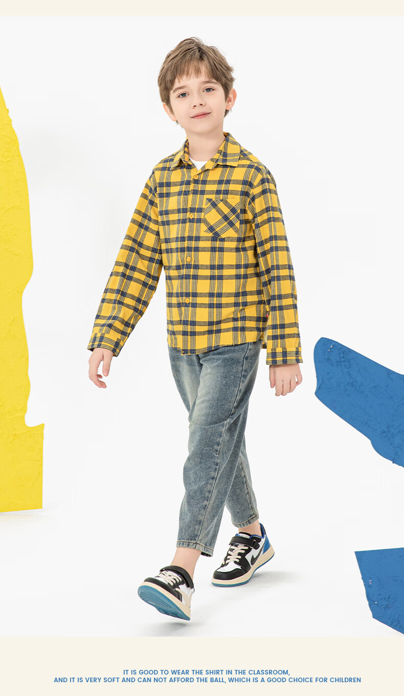 Jeanswest boys plaid shirt spring and autumn children's autumn fashion pure cotton long-sleeved medium and large children's college style autumn shirt white 110