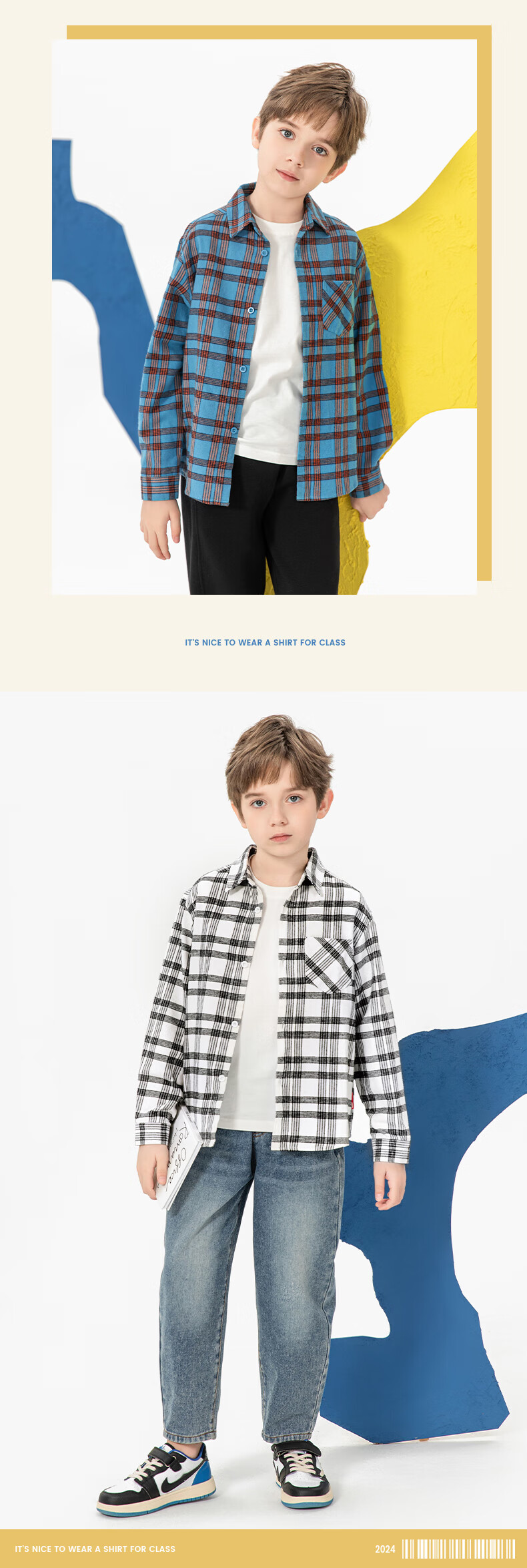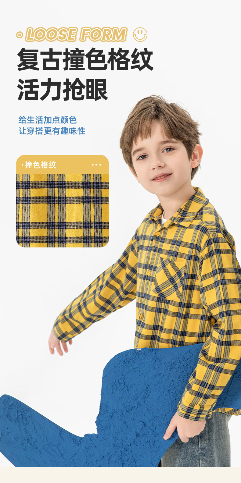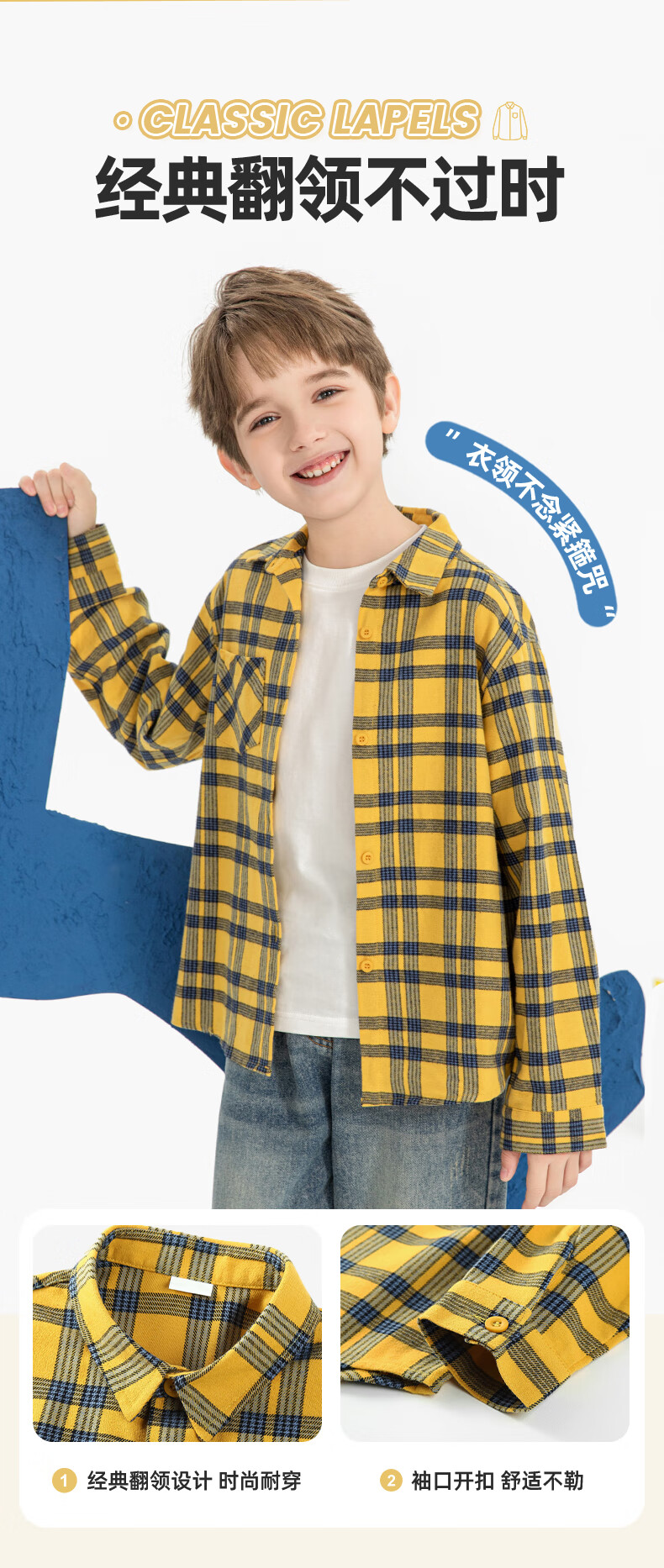 Jeanswest boys plaid shirt spring and autumn children's autumn fashion pure cotton long-sleeved medium and large children's college style autumn shirt white 110