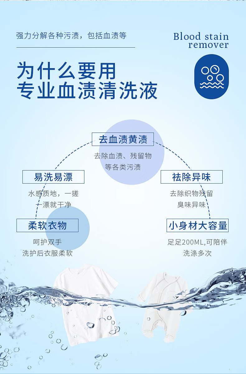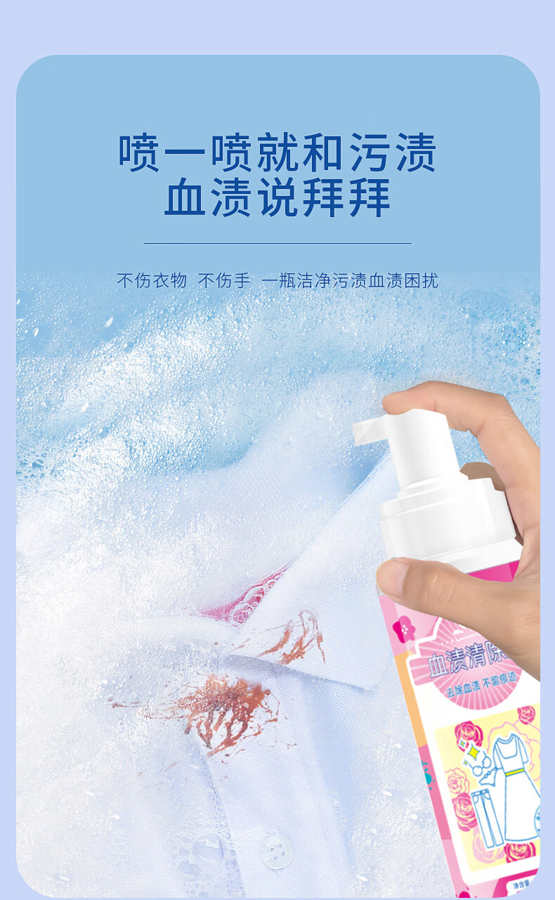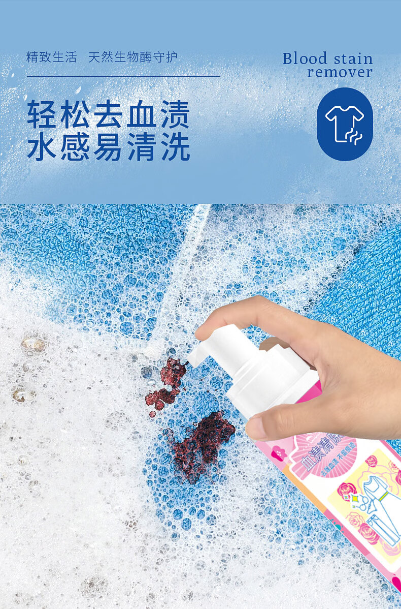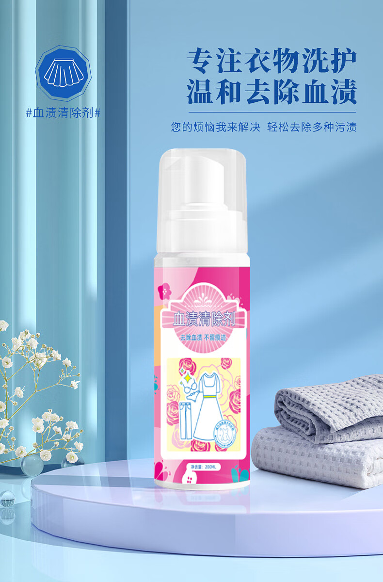 Remove blood stains, aunt's blood stain cleaning agent, protease cleansing agent for mattress sheets, menstrual blood stains and oil stains, dry cleaning agent, emergency use 200ml*1 bottle