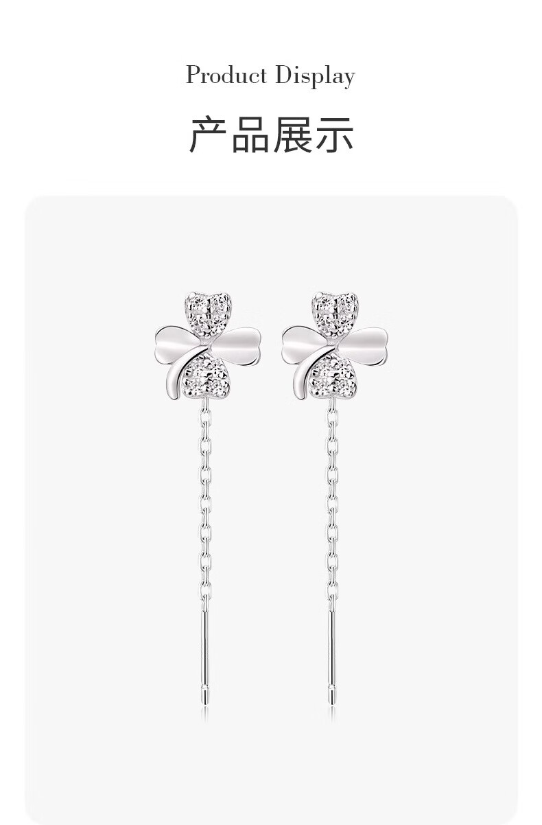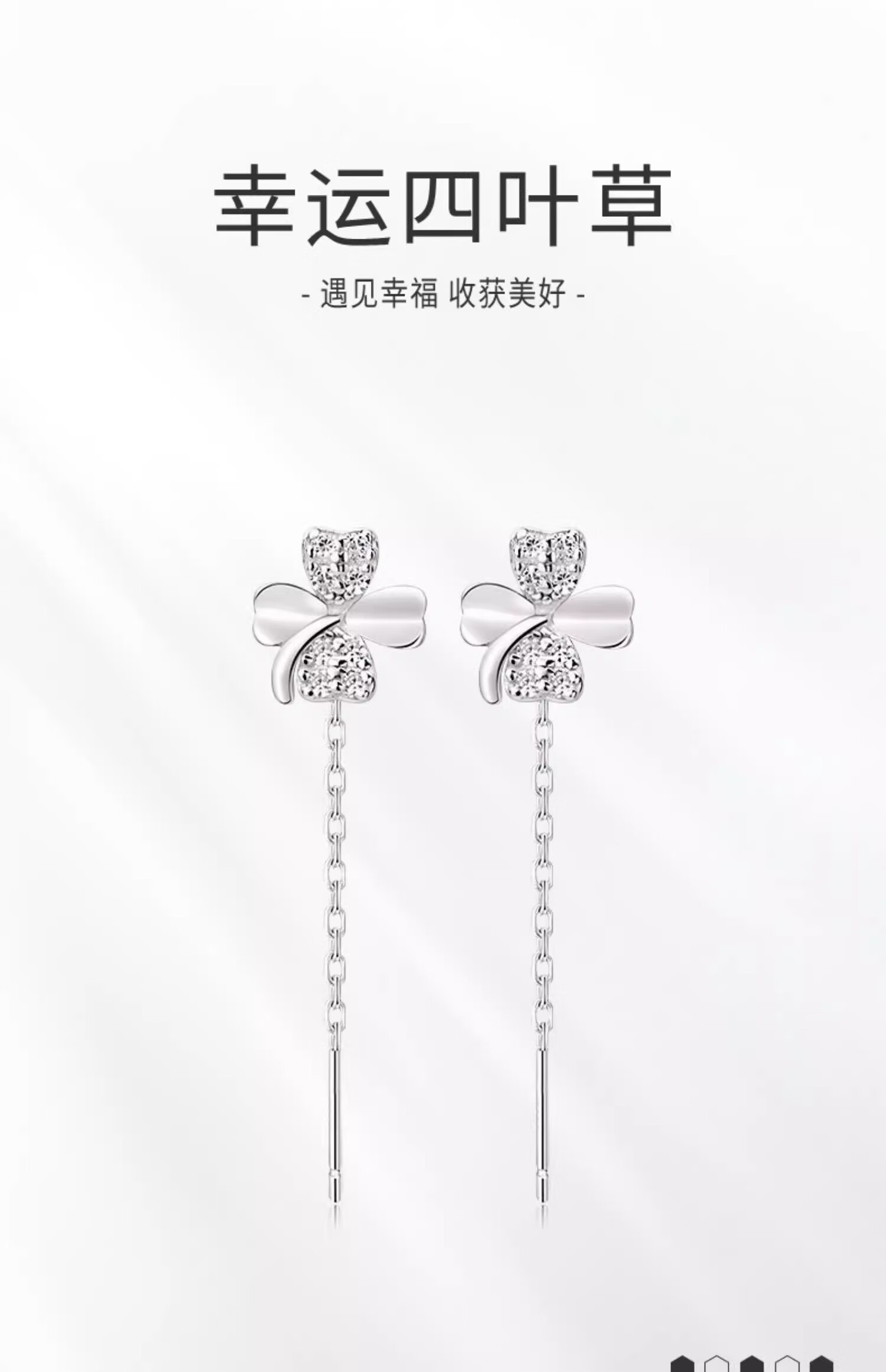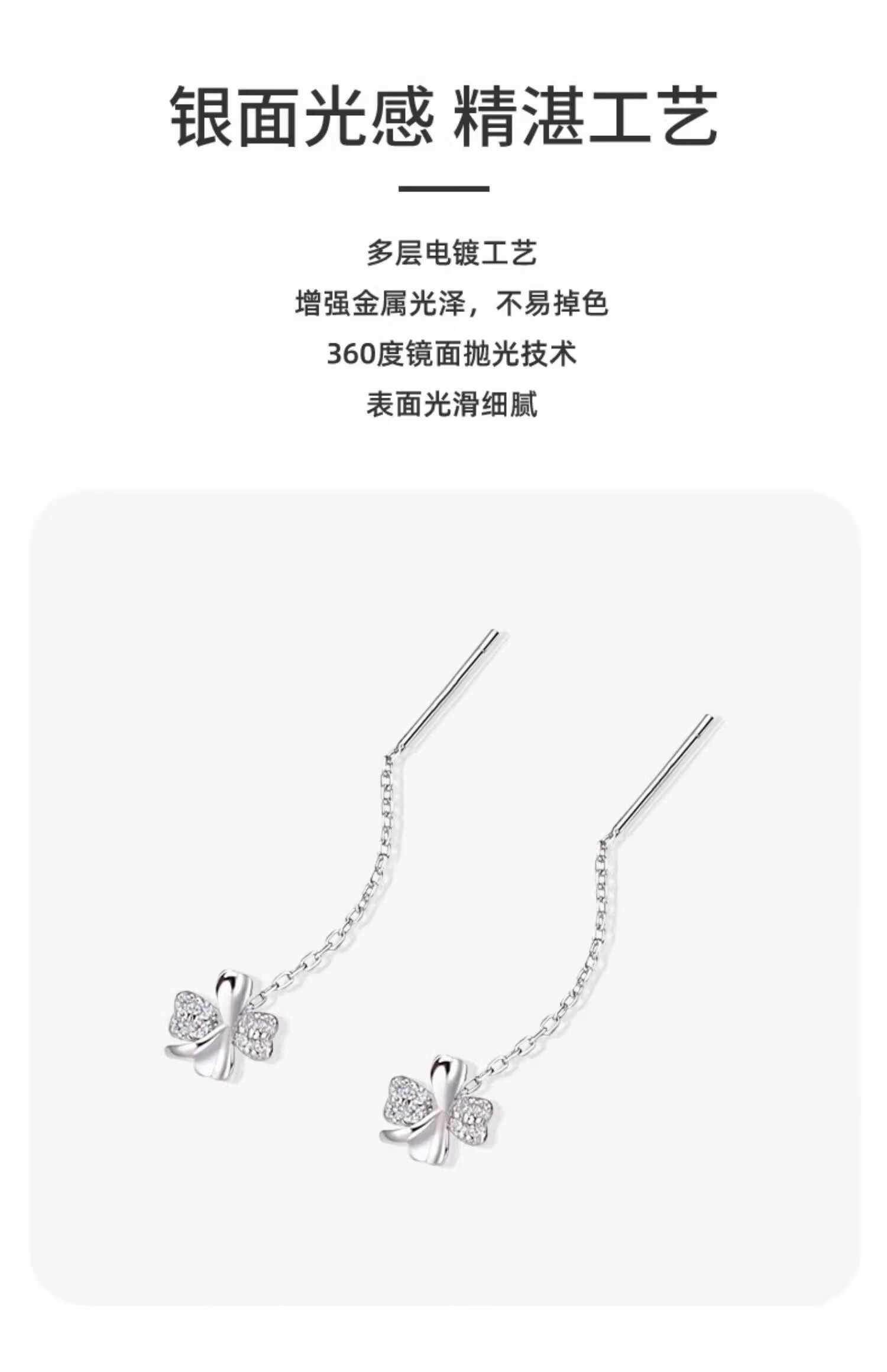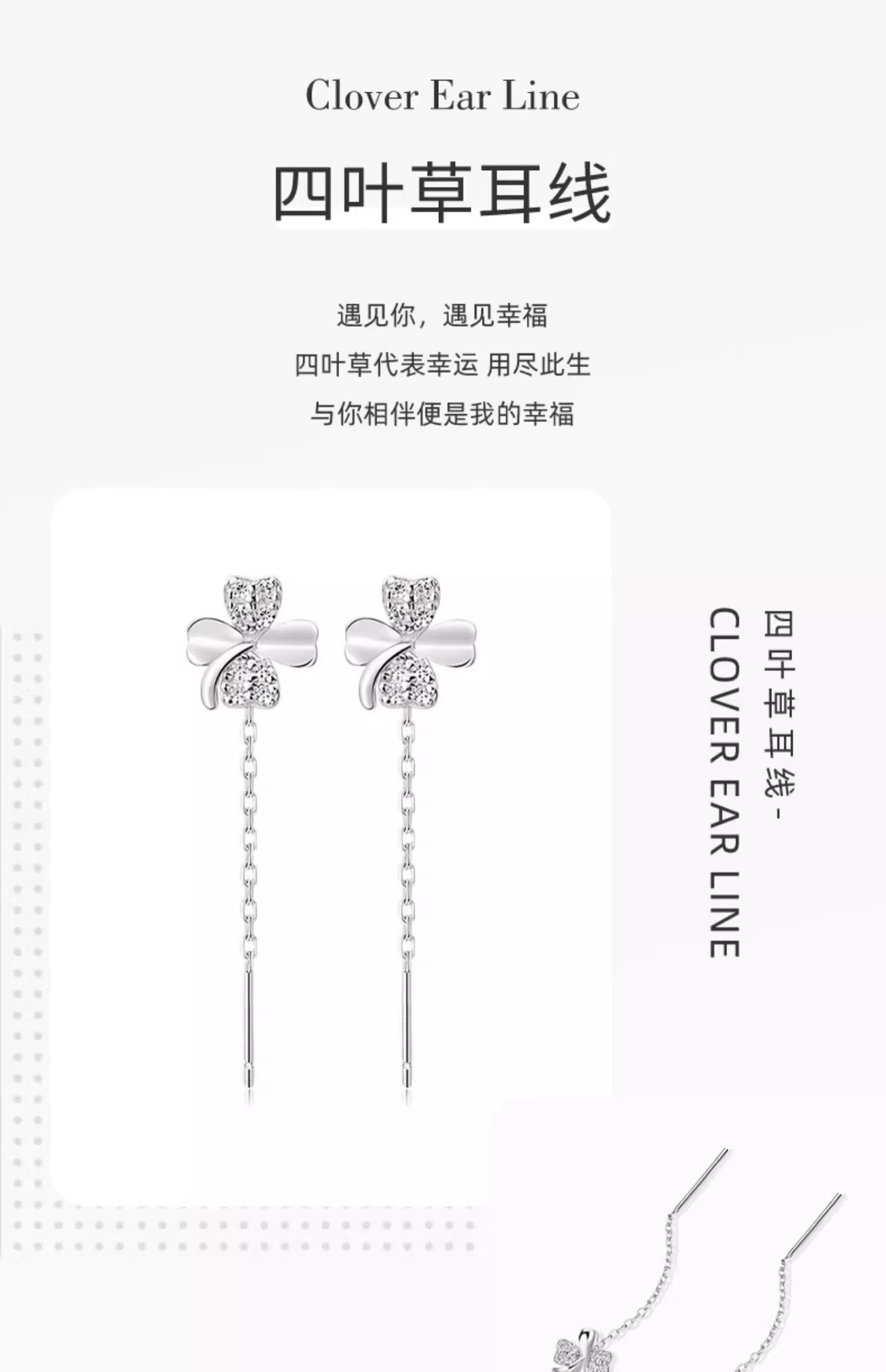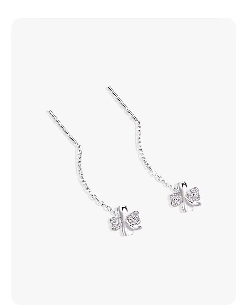CHINA GOLD pure silver earrings four-leaf clover ear wire earrings niche high-end jewelry Valentine's Day practical birthday gift for wife Today/next day delivery* four-leaf clover ear wire brand gift box