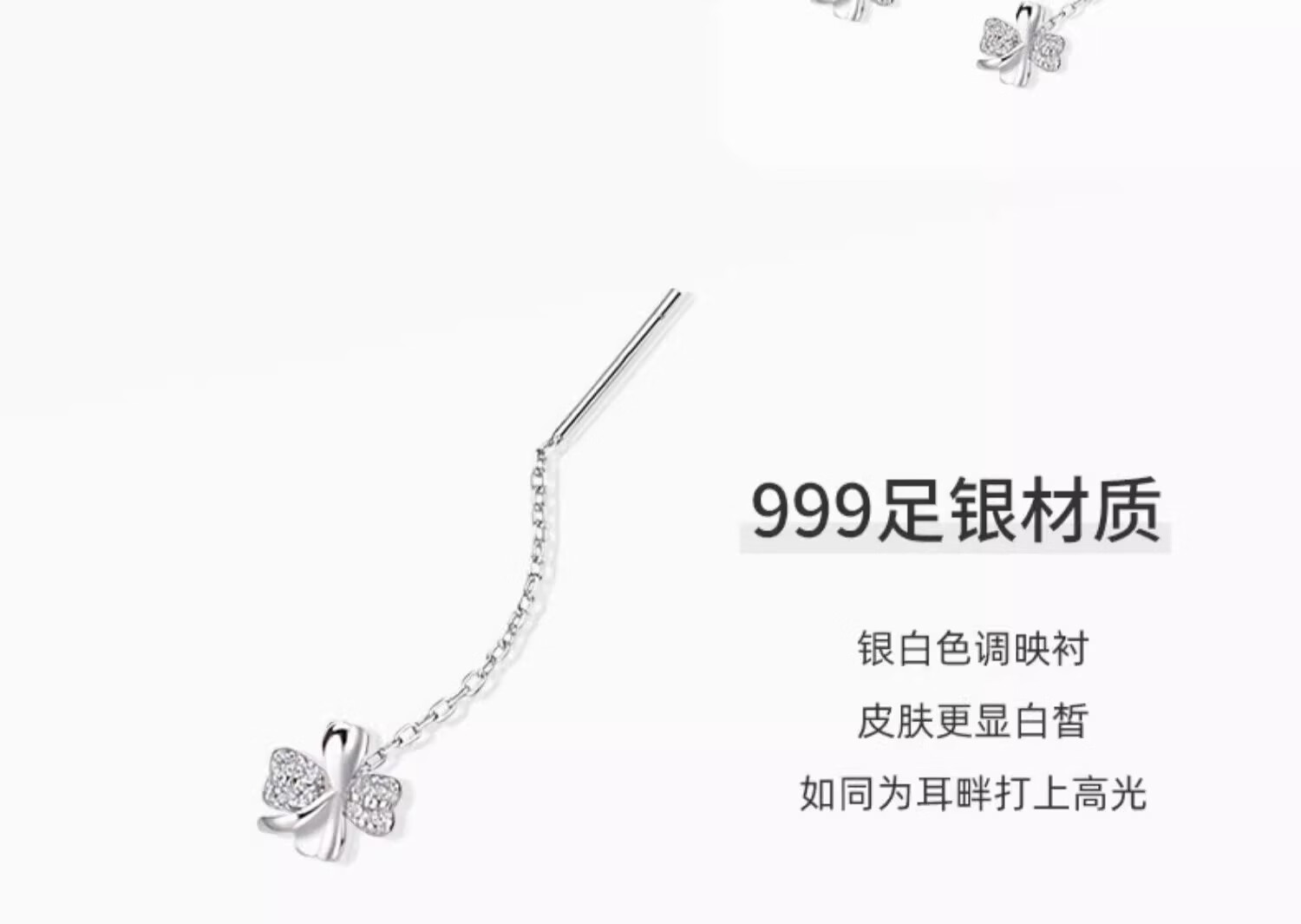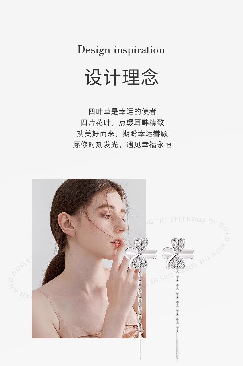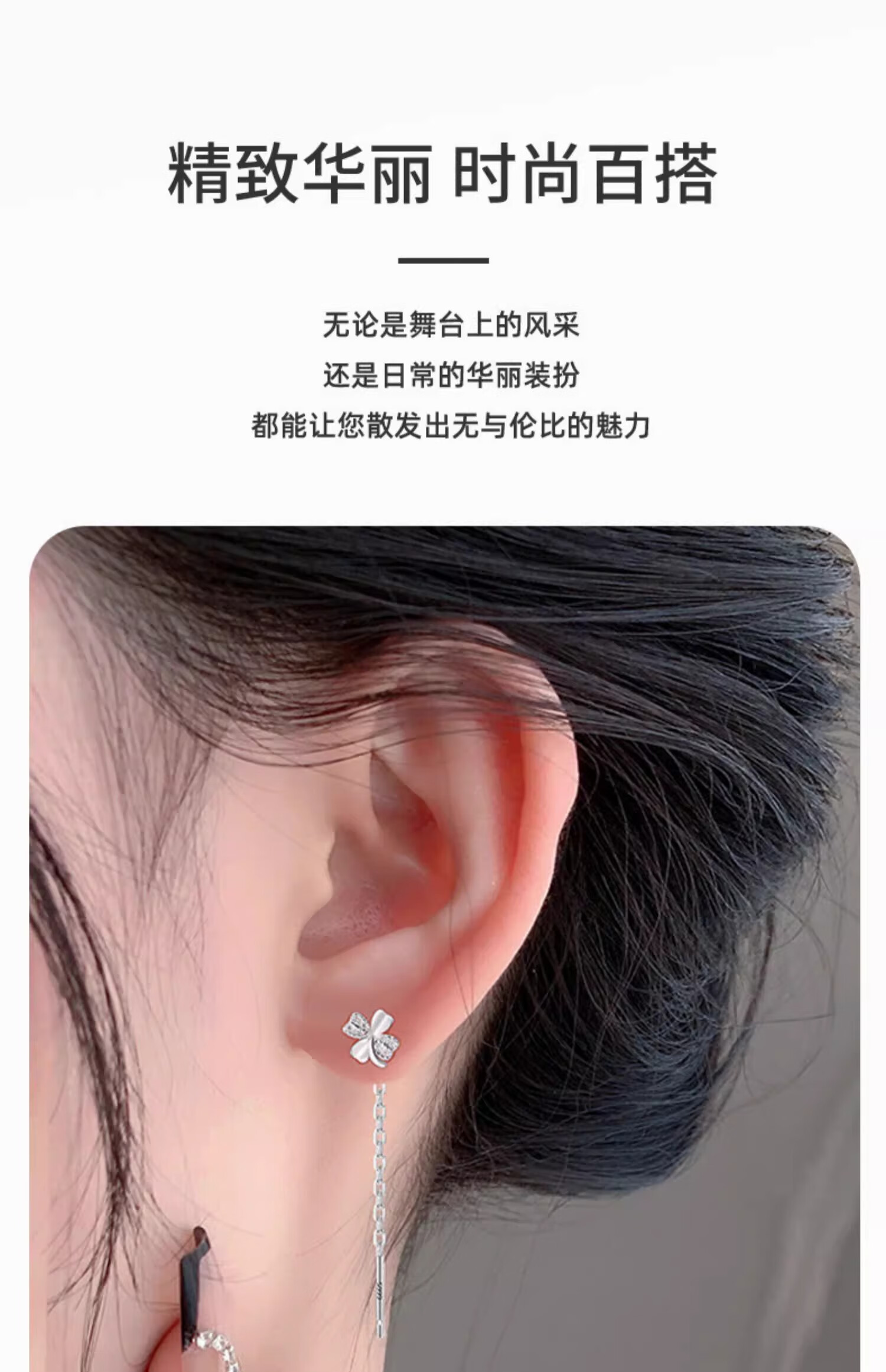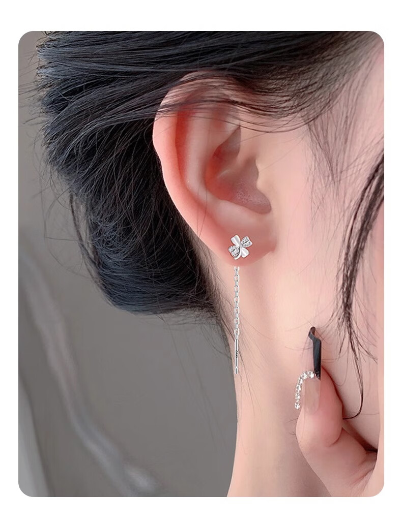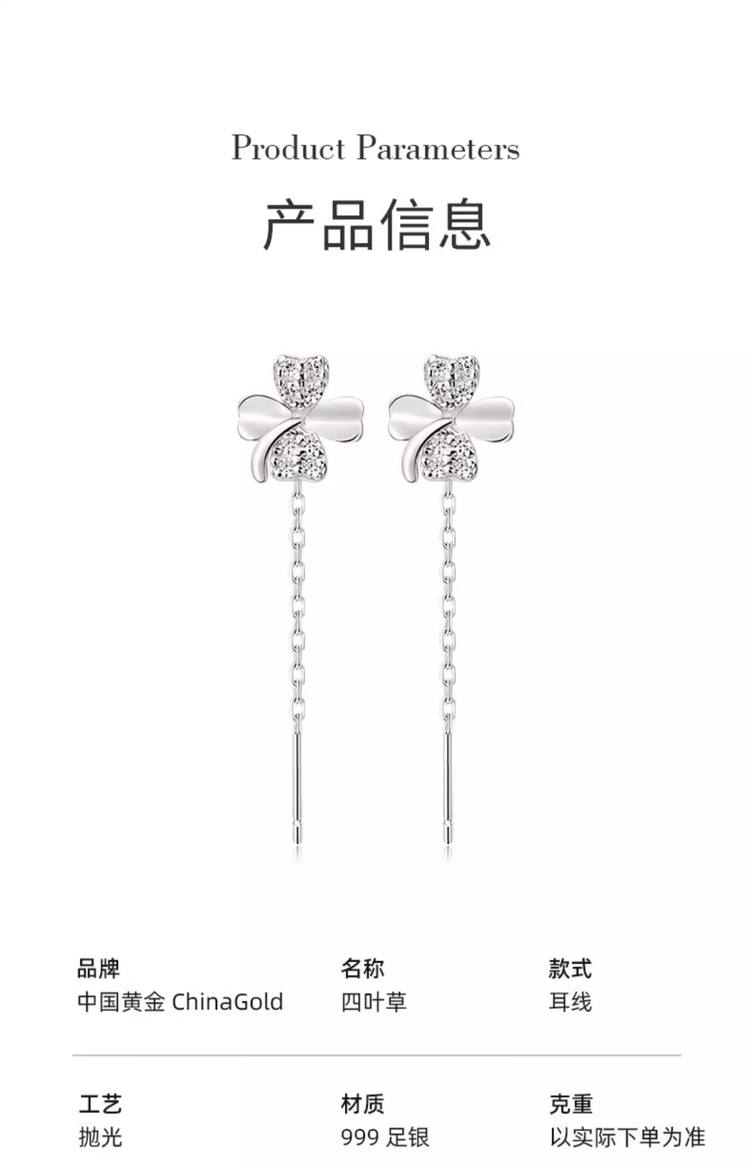 CHINA GOLD pure silver earrings four-leaf clover ear wire earrings niche high-end jewelry Valentine's Day practical birthday gift for wife Today/next day delivery* four-leaf clover ear wire brand gift box