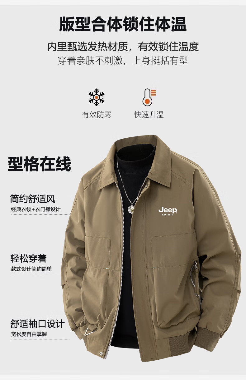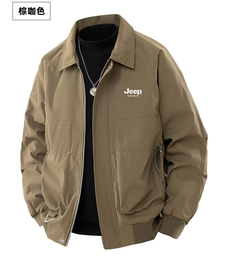 JEEP SPIRIT Jeep Jacket Men's Spring and Autumn Jacket Fashionable, Comfortable, Casual and Trendy Versatile Lapel Loose Solid Color Top Brown Brown XL (Recommended 130-150Jin Jin equals 0.5kg)