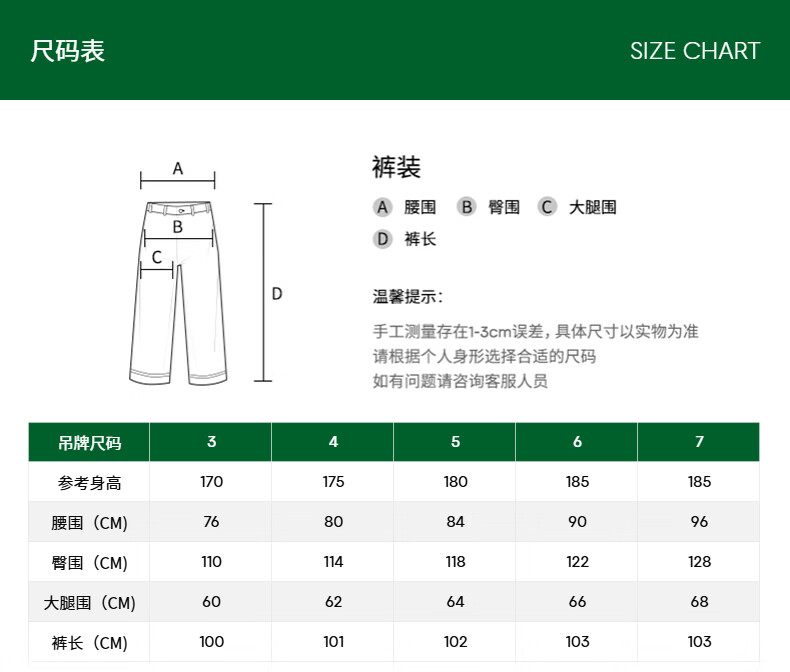 China (cm) 160-165/84-86 165-170 / 88-90 167-172 / 92-96 168-173 / 98-102 170-176 / 106-110